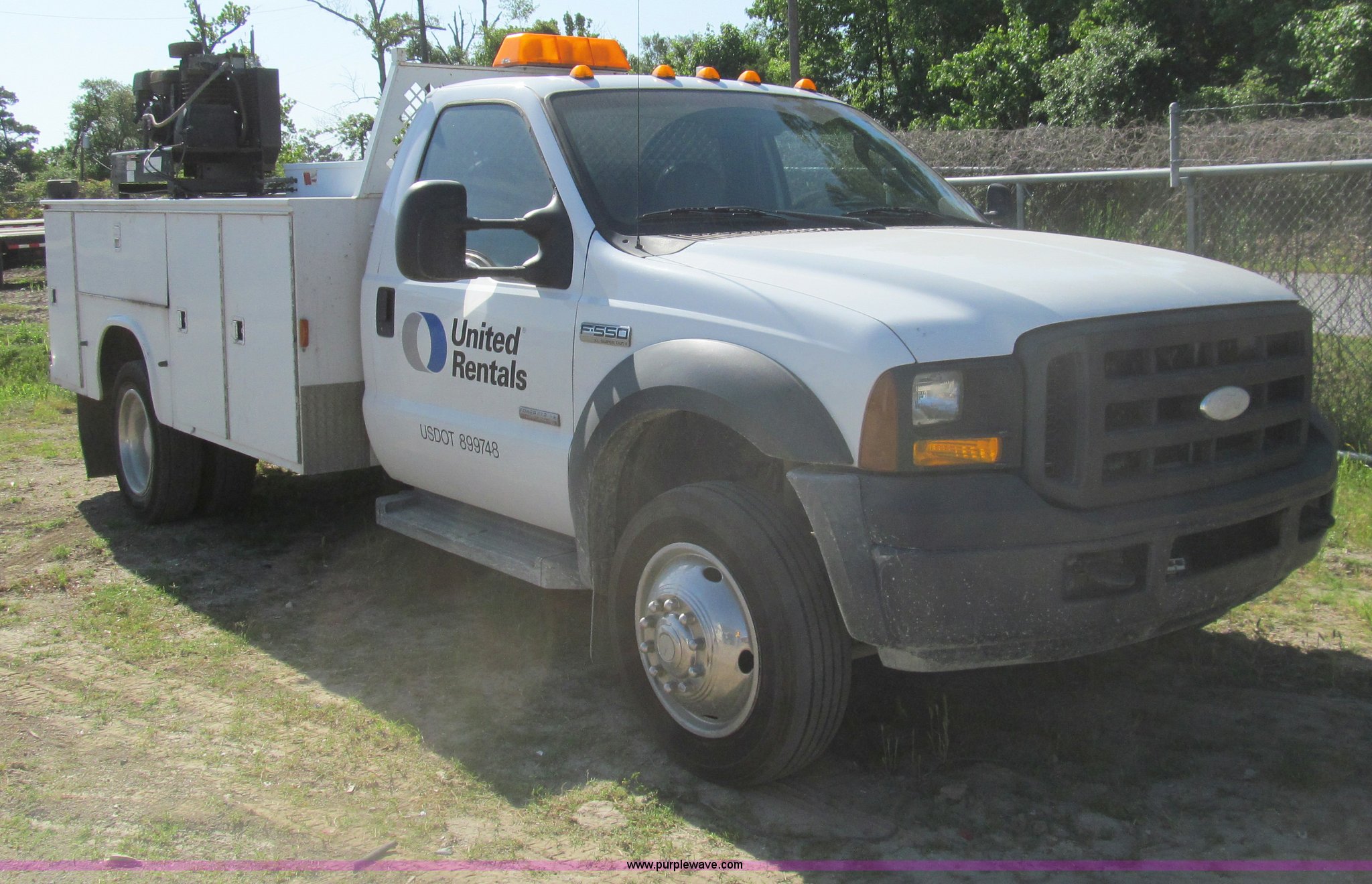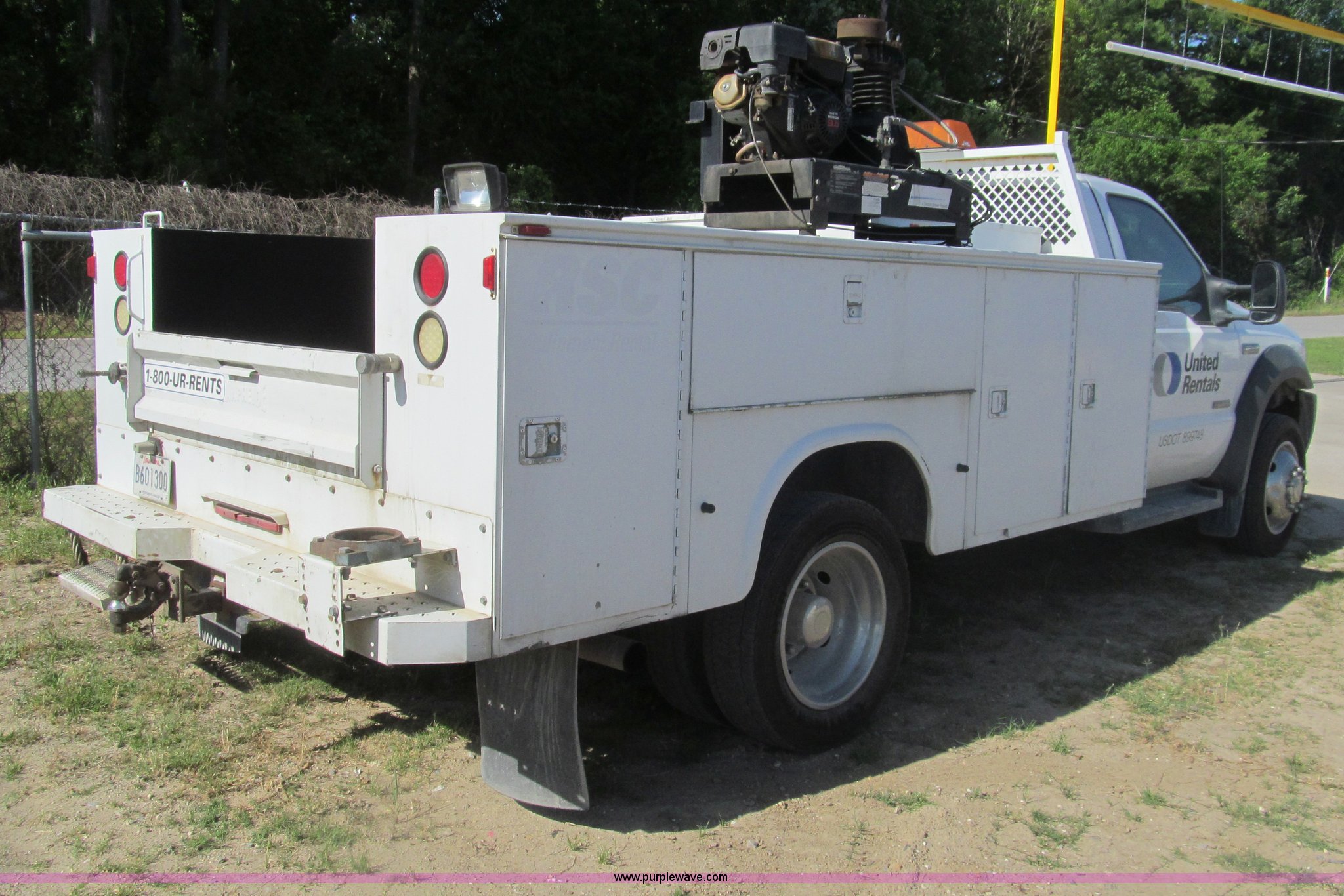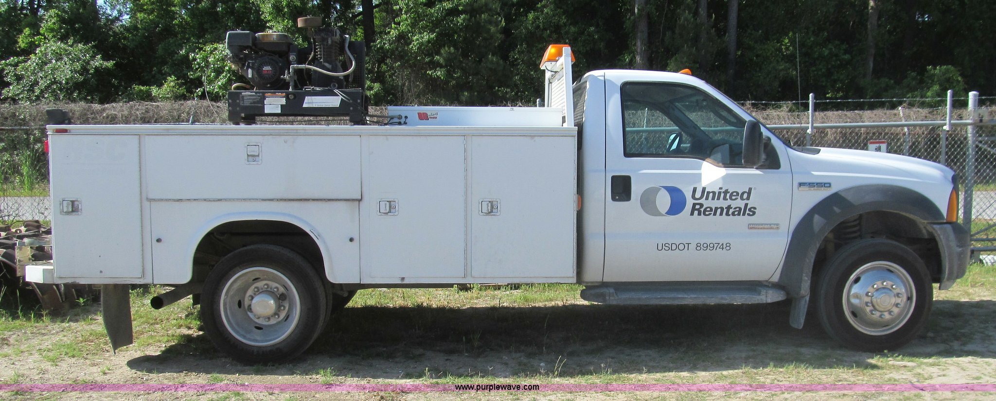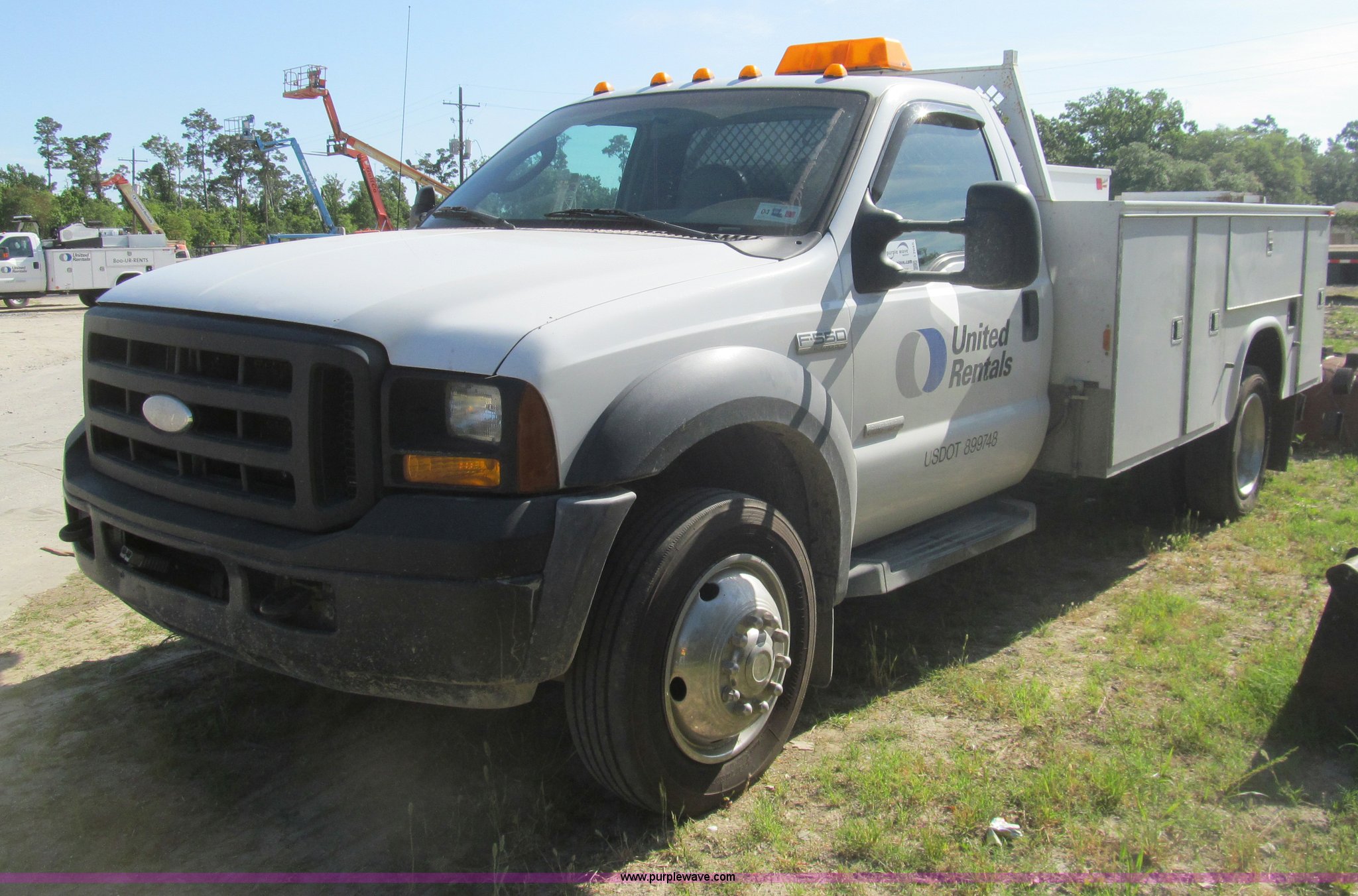 2007 Ford F550 service truck. 137,534 actual miles, 6.0L V8 OHV 32V turbo diesel engine, Automatic transmission, AC and heat, Tilt, Cruise, AM/FM/CD, Manual windows and locks, Vinyl interior, Auxiliary control panel, Knapheide 11' utility bed (8) storage compartments, American Eagle tool chest, Amber light bar, Champion air compressor Honda 9 HP gas engine, 175 maximum psi, Hose, Reel , Nozzle assembly, Graco lube, oil, and grease system Motor, hydraulic, and recovery reservoirs, Graco Fireball pump, Hose, Reel, Nozzle assembly, Front tow hooks, Front auxiliary power outlet, Pintle hitch, Trailer wiring, 225/70R19.5 tires, EIN 675117RA. View item removal requirement and like-kind exchange information. 1FDAF56P77EB22514. United Rentals - Westlake. 3301 Cities Service Highway. Westlake, LA 70669