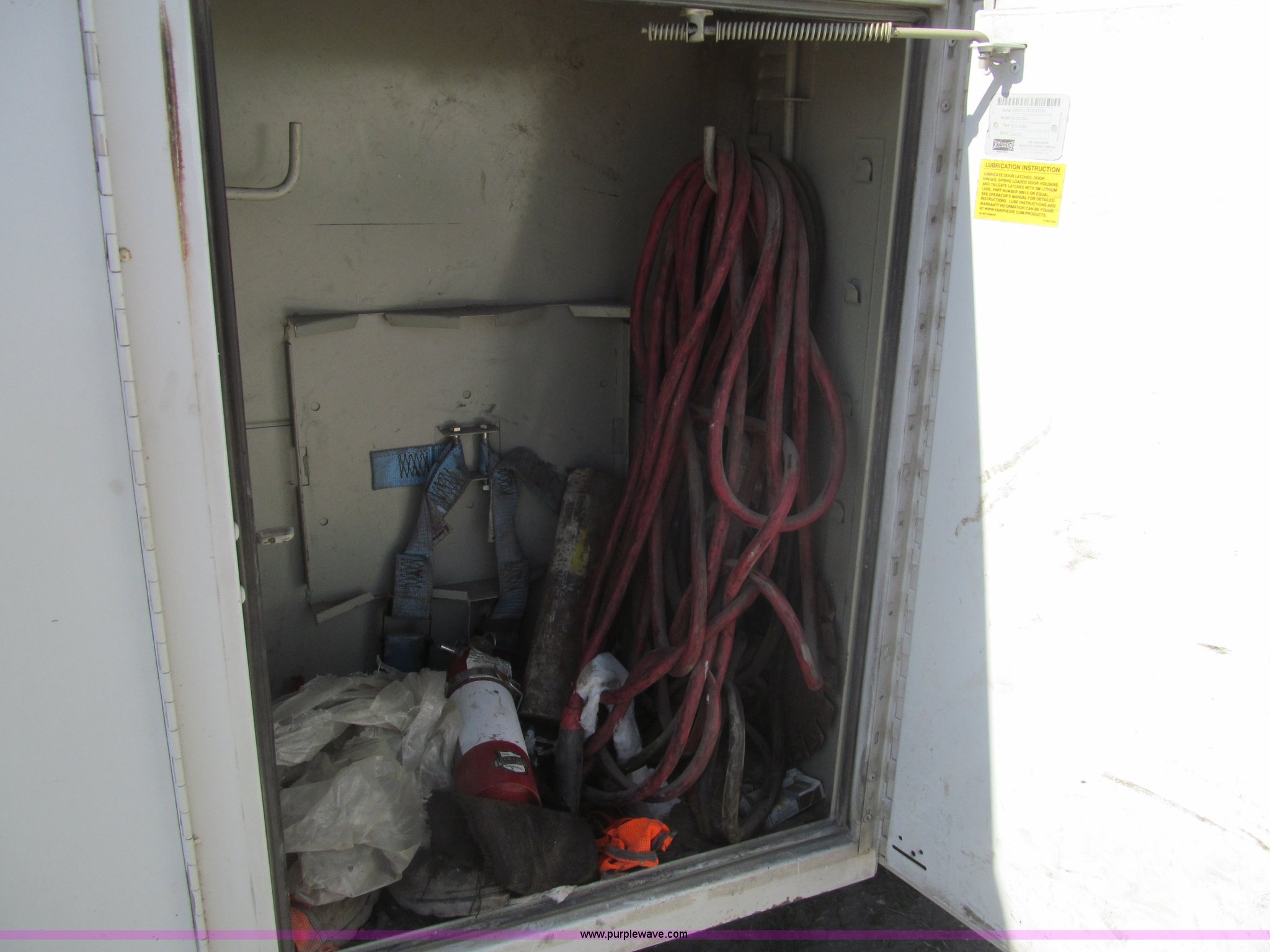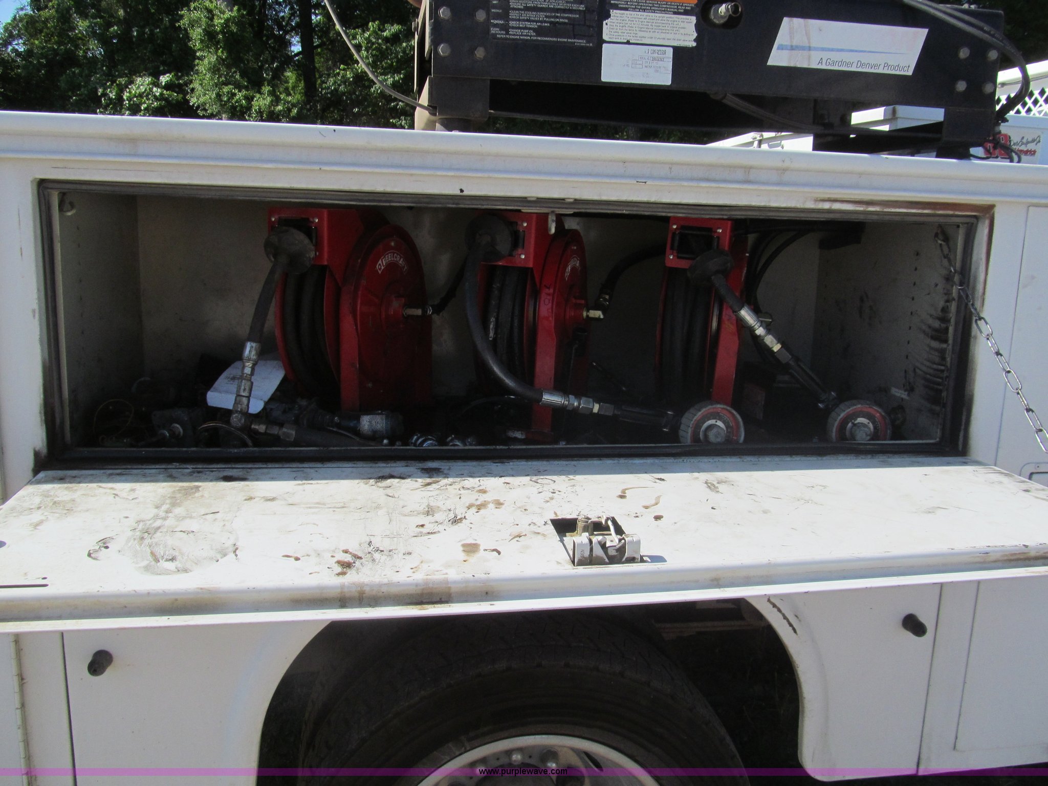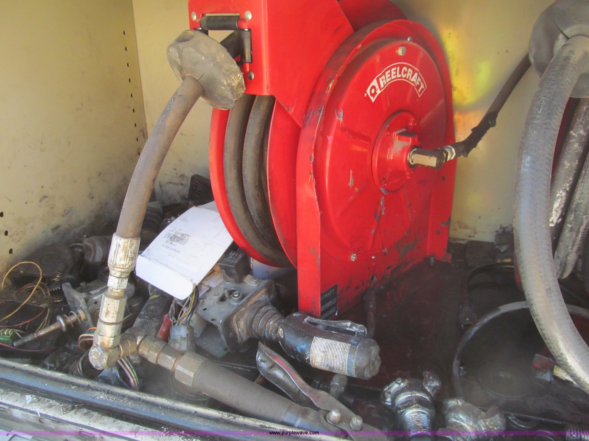Purple Wave is selling a used Service Truck in Louisiana. This item is a 2007 Ford F550 service truck with the following: 137,534 actual miles, 6.0L V8 OHV 32V turbo diesel engine, Automatic transmission, AC and heat, Tilt, Cruise, AM/FM/CD, Manual windows and locks, Vinyl interior, Auxiliary control panel, Knapheide 11' utility bed, (8) storage compartments, American Eagle tool chest, Amber light bar, Champion air compressor, Honda 9 HP gas engine, 175 maximum psi, Hose, Reel, Nozzle assembly, Graco lube, oil, and grease system, Motor, hydraulic, and recovery reservoirs, Graco Fireball pump, Hose, Reel, Nozzle assembly, Front tow hooks, Front auxiliary power outlet, Pintle hitch, Trailer wiring, 225/70R19.5 tires, EIN 675117RA