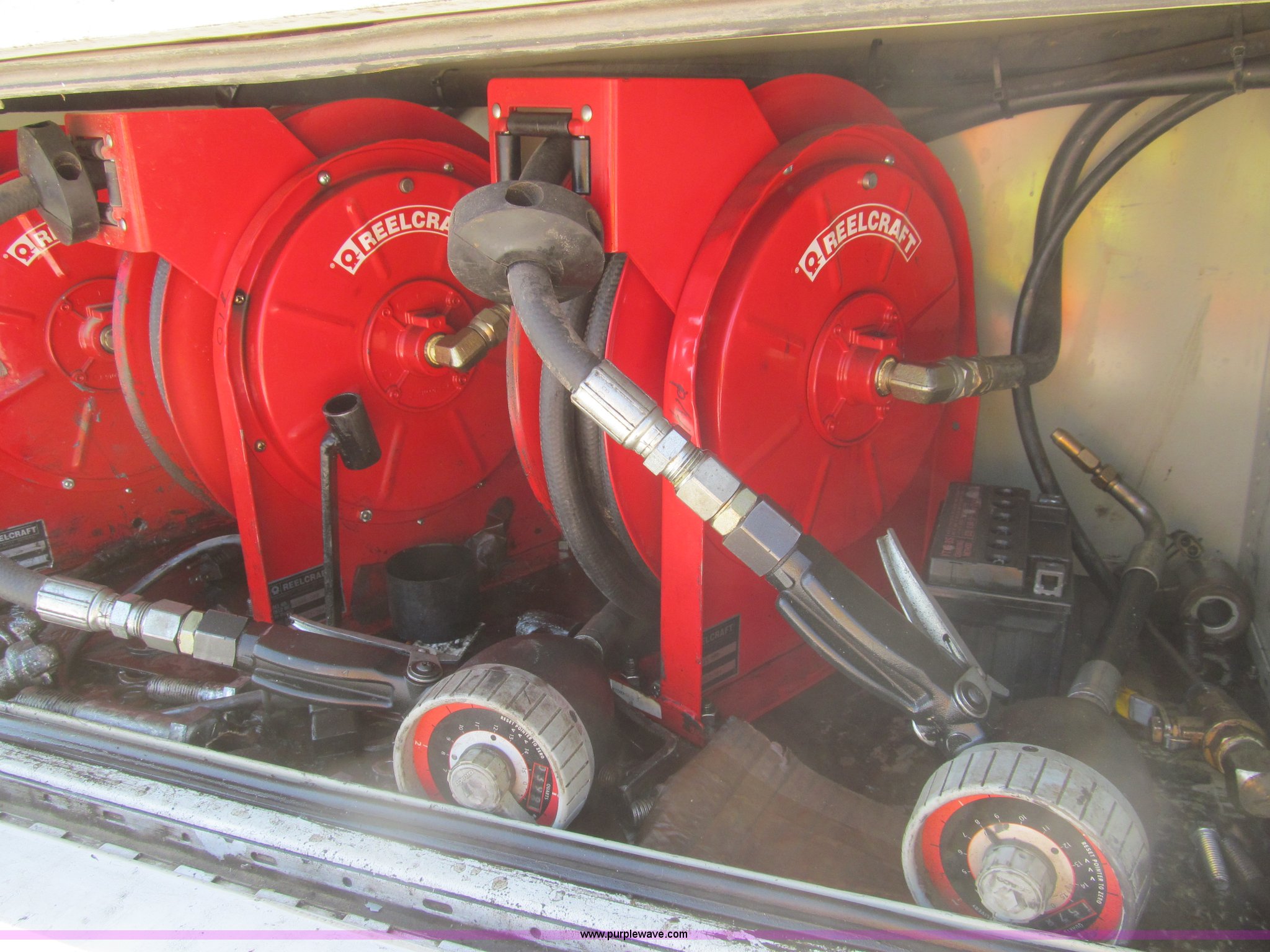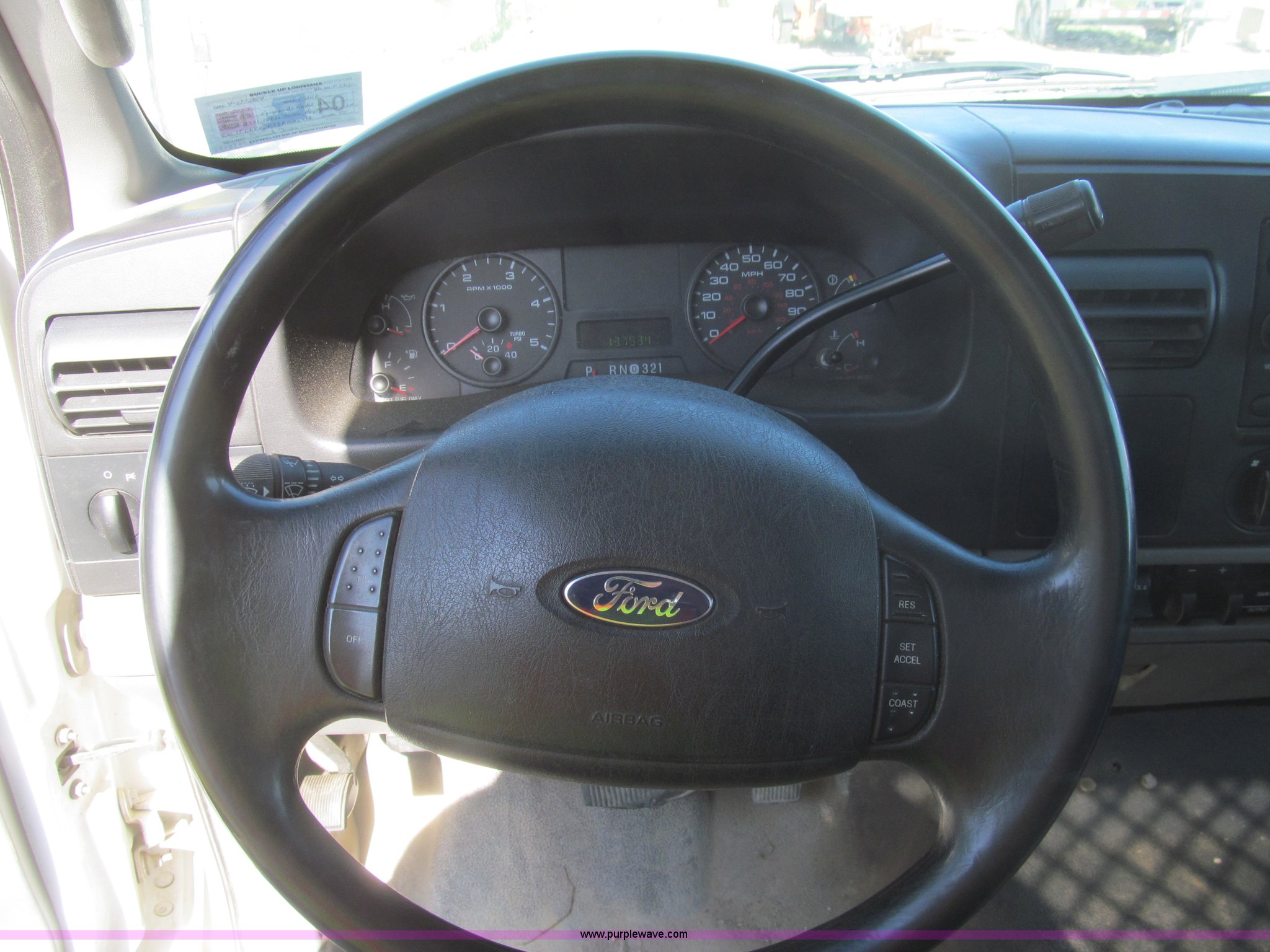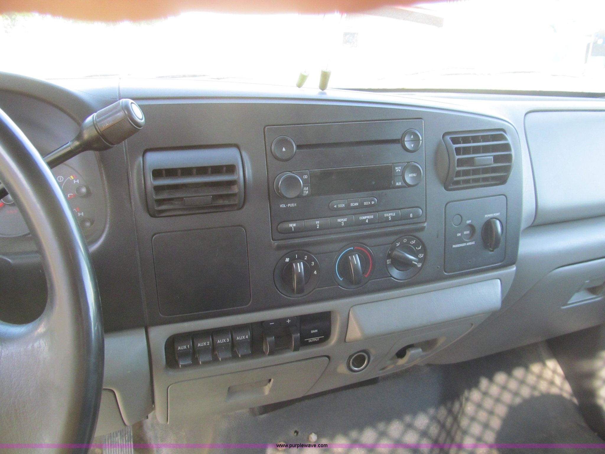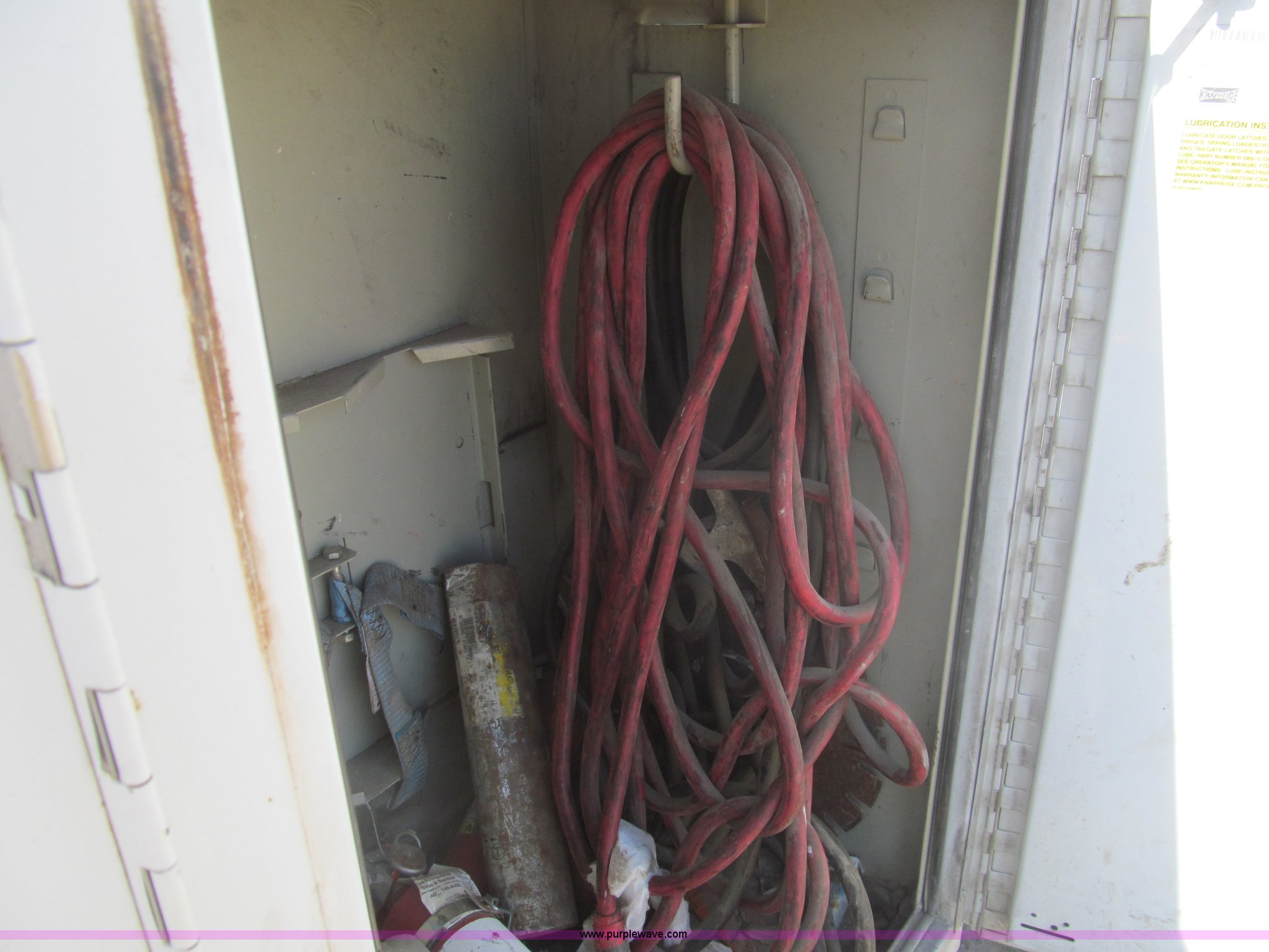 Purple Wave is selling a used Service Truck in Louisiana. This item is a 2007 Ford F550 service truck with the following: 137,534 actual miles, 6.0L V8 OHV 32V turbo diesel engine, Automatic transmission, AC and heat, Tilt, Cruise, AM/FM/CD, Manual windows and locks, Vinyl interior, Auxiliary control panel, Knapheide 11' utility bed, (8) storage compartments, American Eagle tool chest, Amber light bar, Champion air compressor, Honda 9 HP gas engine, 175 maximum psi, Hose, Reel, Nozzle assembly, Graco lube, oil, and grease system, Motor, hydraulic, and recovery reservoirs, Graco Fireball pump, Hose, Reel, Nozzle assembly, Front tow hooks, Front auxiliary power outlet, Pintle hitch, Trailer wiring, 225/70R19.5 tires, EIN 675117RA