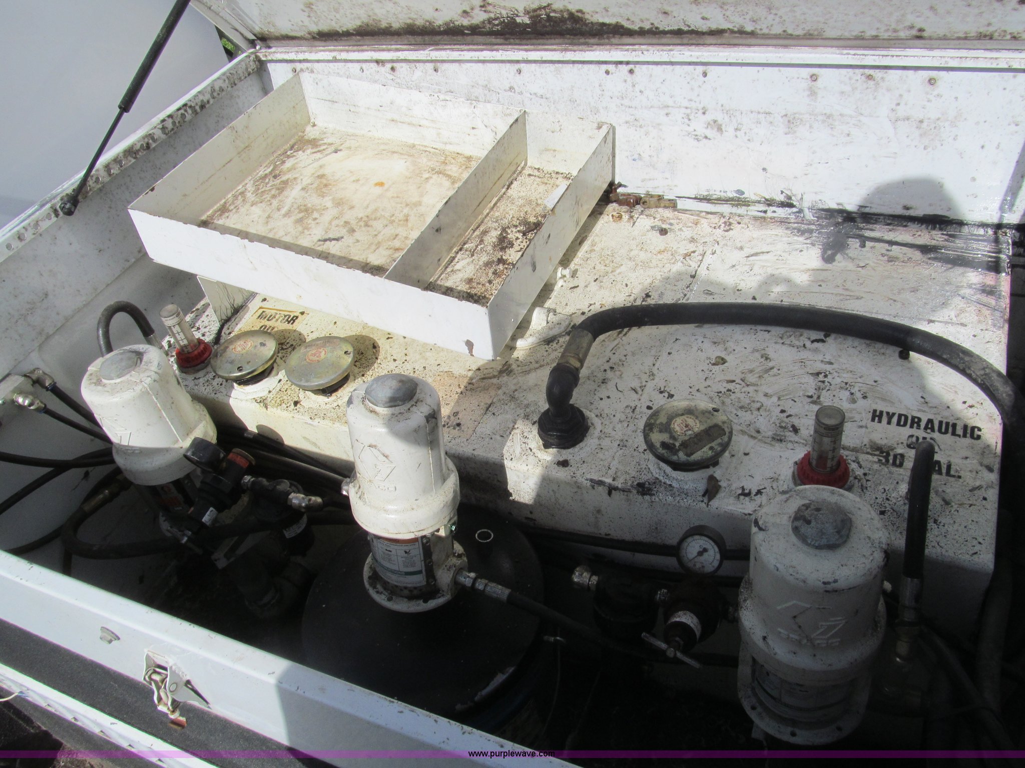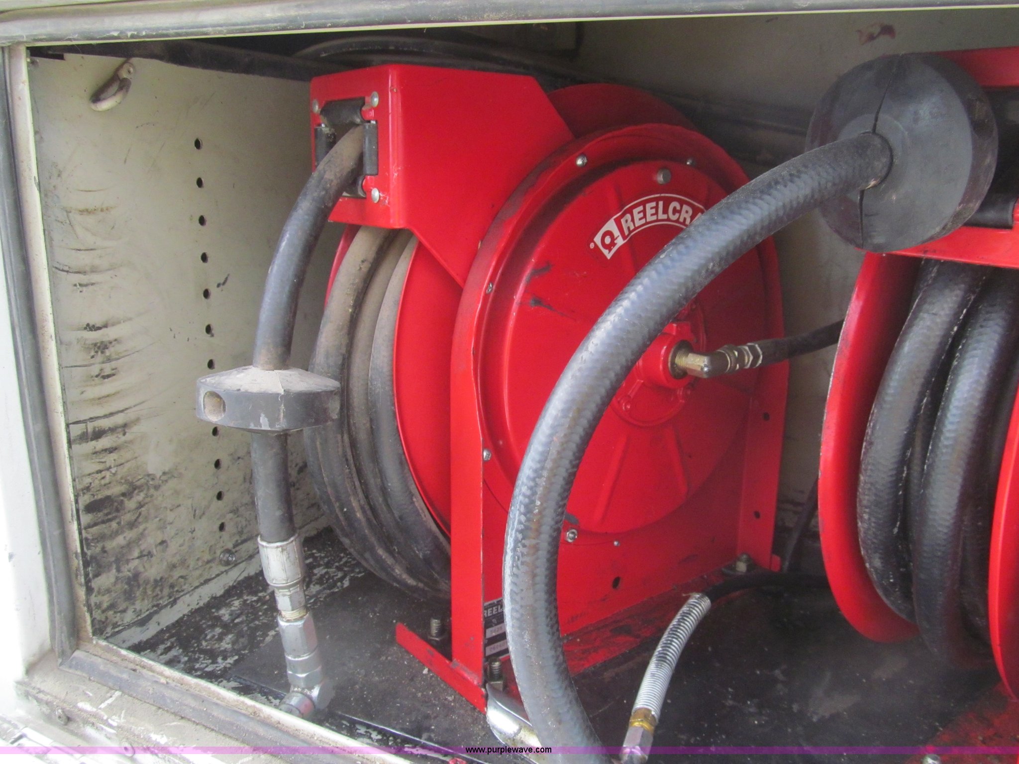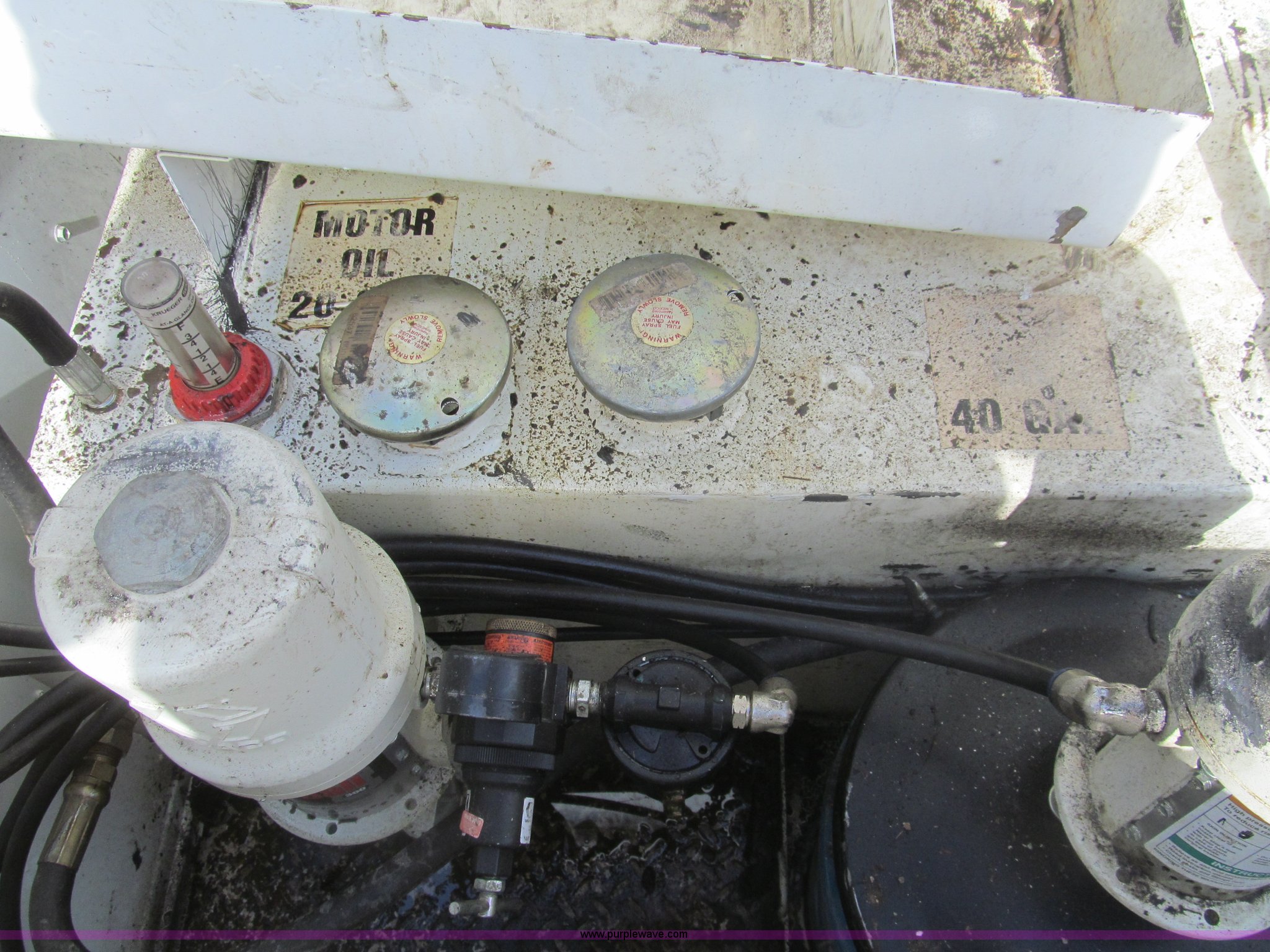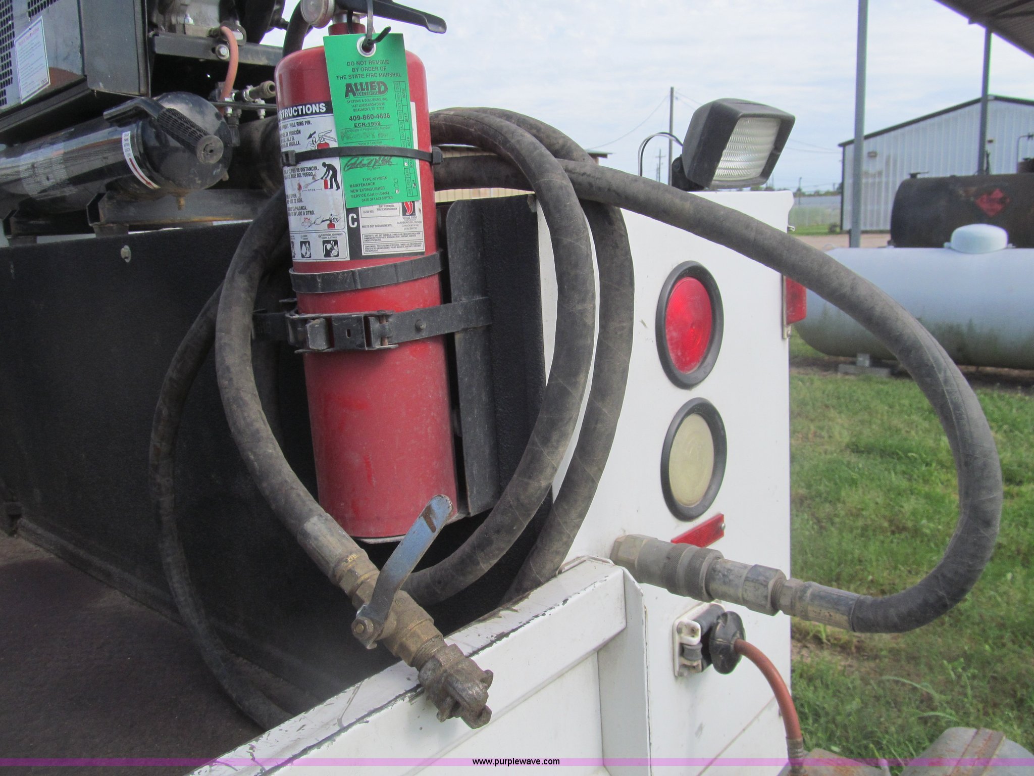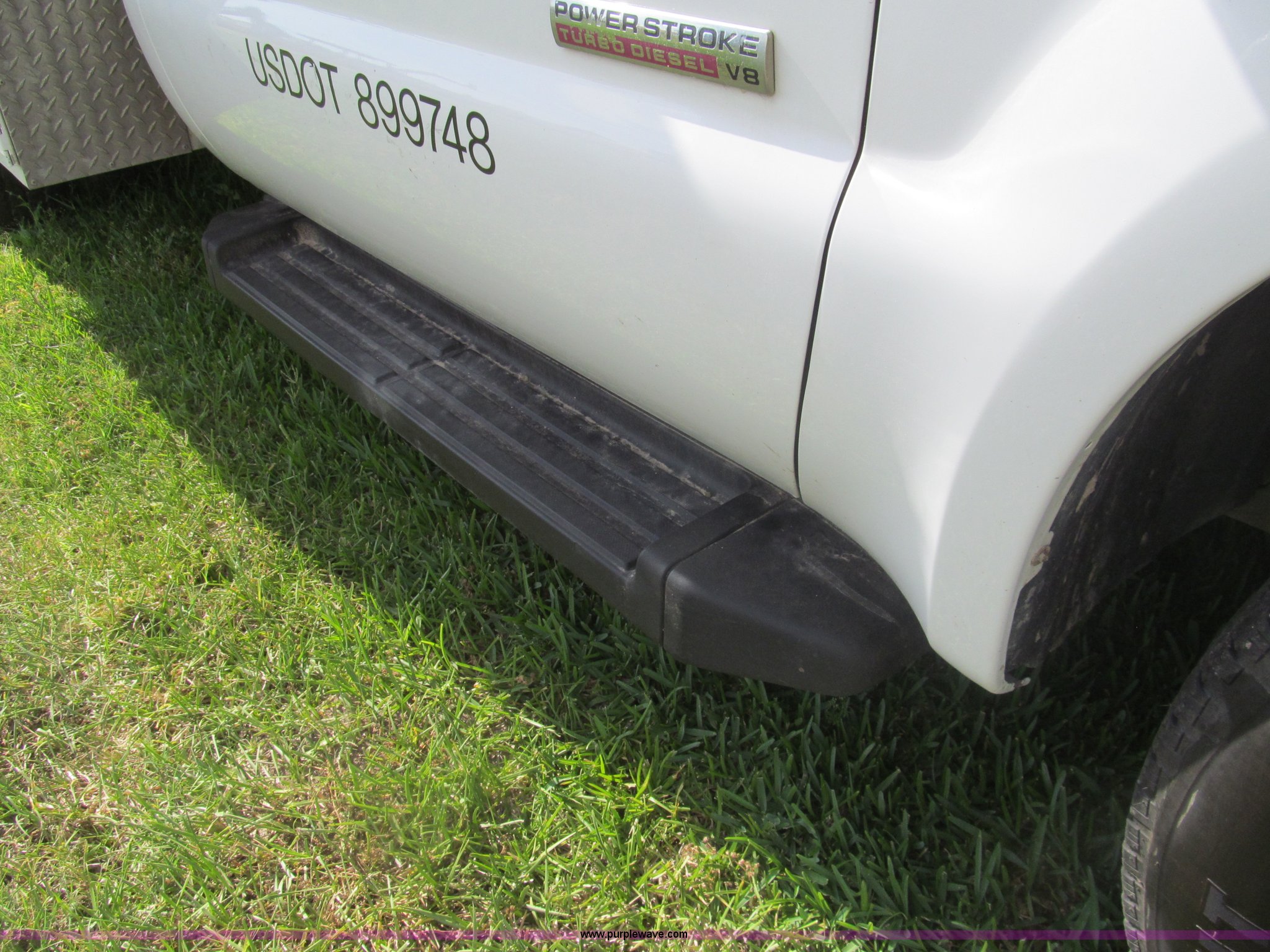 Purple Wave is selling a used Service Truck in Texas. This item is a 2007 Ford F350 Super Duty XL service truck with the following: 134,269 actual miles, 6.0L V8 OHV 32V turbo diesel engine, Automatic transmission, AC and heat, Tilt, Cruise, AM/FM/CD, Manual windows and locks, Vinyl interior, Auxiliary control panel, Running boards, Front tow hooks, Front auxiliary power outlet, Knapheide 9' utility bed, (6) storage compartments, (2) toolboxes, Work lights, Amber light bar, 5" vise, American Eagle tool chest, Miller BlueStar 185 welder/generator, 15 hours on meter, Kohler Welder 12.5 HP gas engine, 6,000 watt generator, CC/DC welder, (2) 120V outlets, 240V outlet, Graco oil, lube, and grease system, Motor, hydraulic, recovery reservoirs, Graco Fireball pumps, Hose, reel, and nozzle assemblies,, Receiver hitch, Trailer wiring, LT245/75R17 tires, Air compressor not included, Front bumper damage, EIN 650416RA