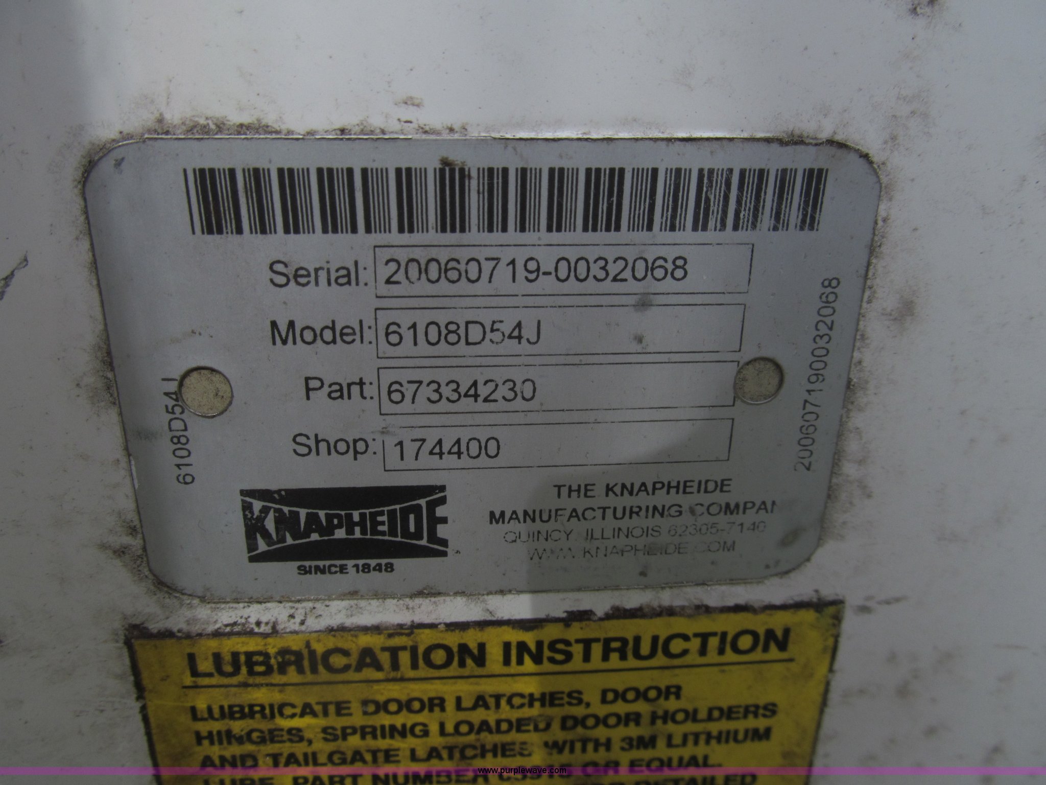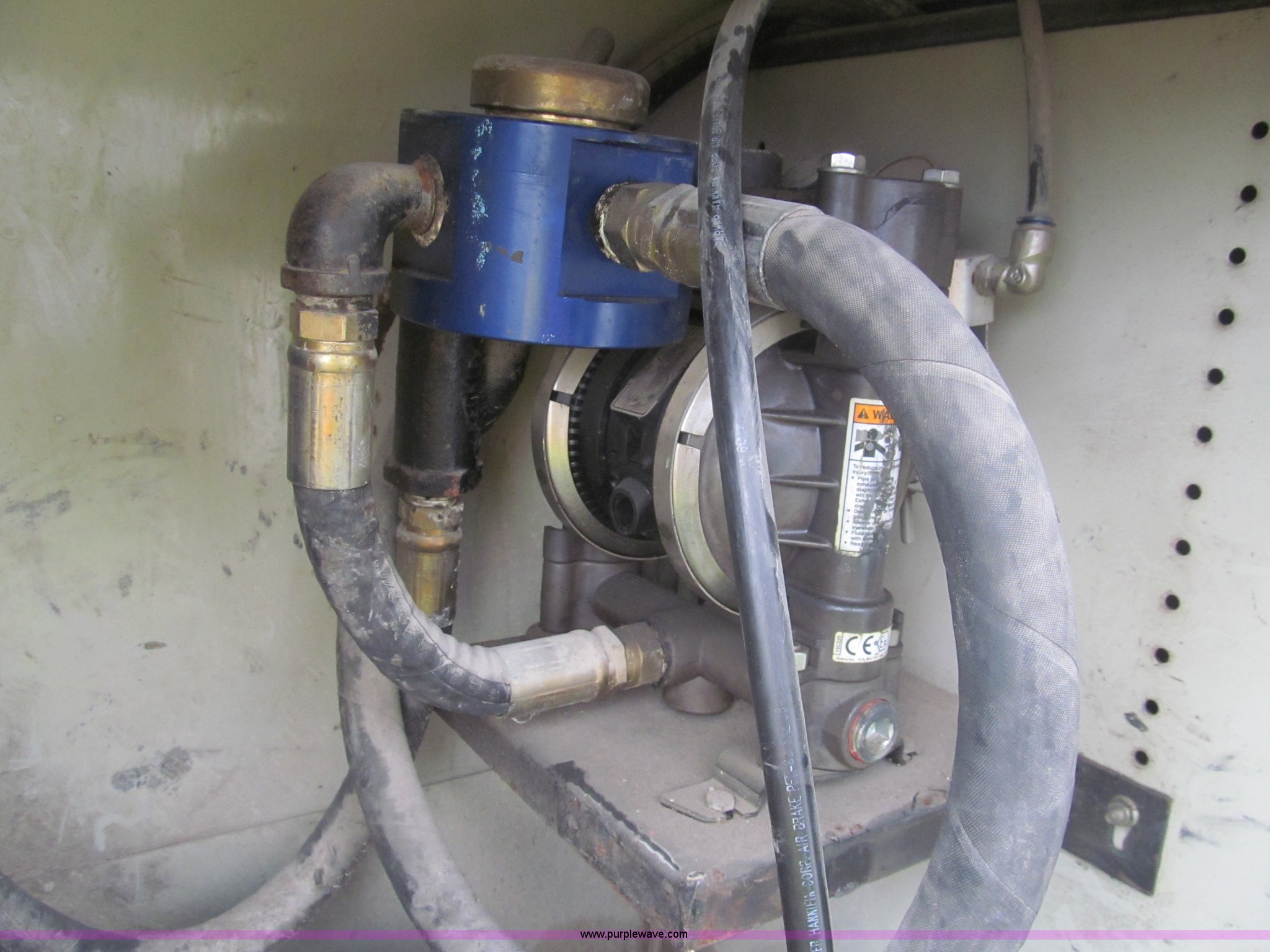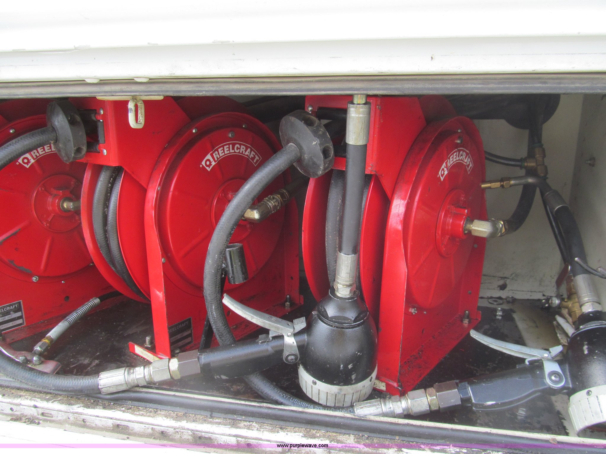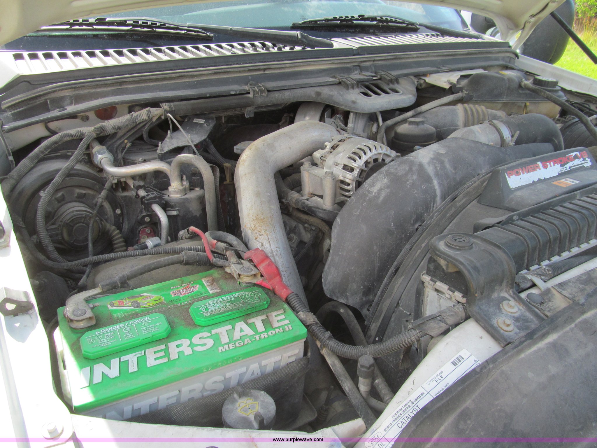 Purple Wave is selling a used Service Truck in Texas. This item is a 2007 Ford F350 Super Duty XL service truck with the following: 134,269 actual miles, 6.0L V8 OHV 32V turbo diesel engine, Automatic transmission, AC and heat, Tilt, Cruise, AM/FM/CD, Manual windows and locks, Vinyl interior, Auxiliary control panel, Running boards, Front tow hooks, Front auxiliary power outlet, Knapheide 9' utility bed, (6) storage compartments, (2) toolboxes, Work lights, Amber light bar, 5" vise, American Eagle tool chest, Miller BlueStar 185 welder/generator, 15 hours on meter, Kohler Welder 12.5 HP gas engine, 6,000 watt generator, CC/DC welder, (2) 120V outlets, 240V outlet, Graco oil, lube, and grease system, Motor, hydraulic, recovery reservoirs, Graco Fireball pumps, Hose, reel, and nozzle assemblies,, Receiver hitch, Trailer wiring, LT245/75R17 tires, Air compressor not included, Front bumper damage, EIN 650416RA