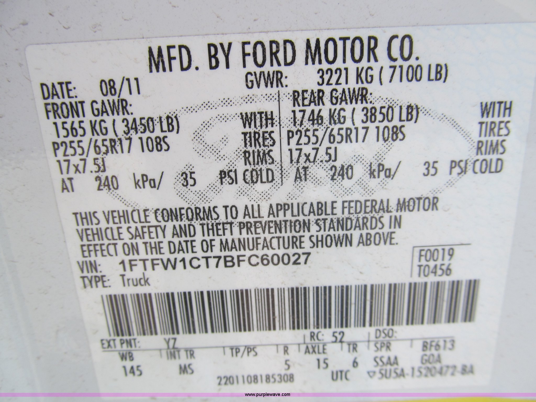 Purple Wave is selling a used 1/2 Ton Pickup or Van in Texas. This item is a 2011 Ford F150 XLT SuperCrew pickup truck with the following: 63,318 actual miles, 3.5L V6 turbo gas engine, Automatic transmission, AC and heat, Tilt, Cruise, AM/FM/CD, Power windows, locks, mirrors, and seats, Cloth interior, Keypad entry pad, Bed liner, Bed caps, Receiver hitch, Trailer wiring, P265/70R17 All-Terrain tires, EIN 899792RA