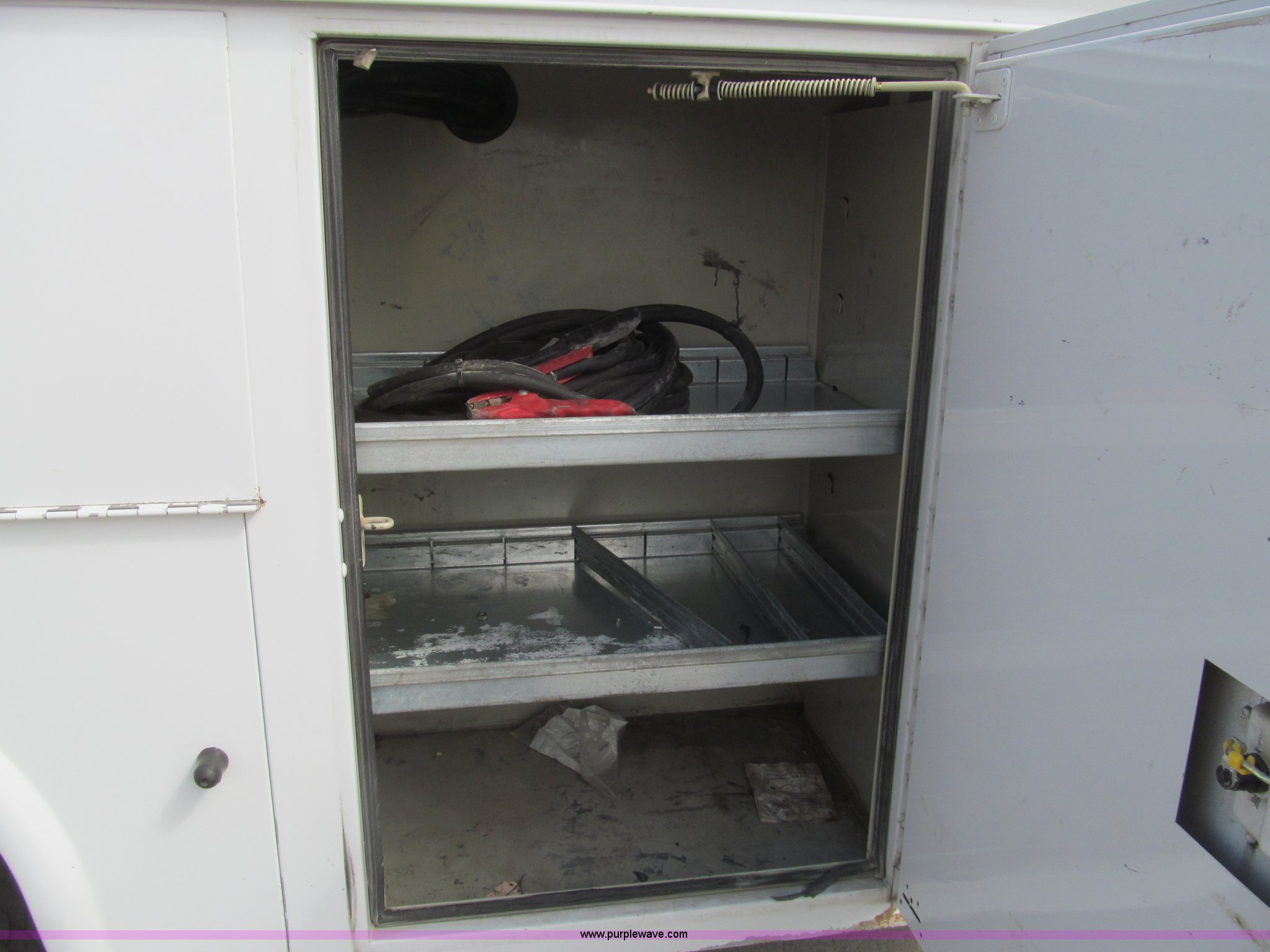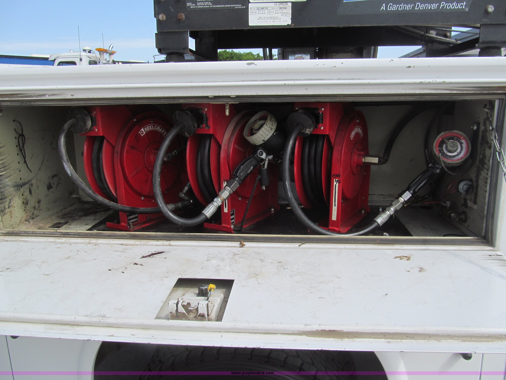 Purple Wave is selling a used Service Truck in Texas. This item is a 2008 Ford F550 Super Duty XL service truck with the following: 94,624 actual miles, 6.4L V8 OHV 32V turbo diesel engine, Automatic transmission, AC and heat, Tilt, Cruise, AM/FM/CD, Manual windows and locks, Vinyl interior, Auxiliary control panel, Running boards, Front tow hooks, Front auxiliary power outlet, Knapheide 11' utility bed, (8) storage compartments, (4) 3' joboxes, Internal shelving, American Eagle tool chest, Mounted 5" vise, Amber light bar, Miller BlueStar 185 welder/generator, 32 hours on meter, Kohler Welder 12.75 HP gas engine, CC/DC welder, 6,000 watt generator, (2) 120V outlets, 240V outlet, Champion air compressor, Honda GX270 gas engine, 175 max psi, Hose, reel, and nozzle assembly, Graco oil, lube, and grease system, Motor, hydraulic, and recovery reservoirs, Graco Fireball pumps, Hose, reel, and nozzle assemblies,, Pintle hitch, Receiver hitch, Trailer wiring, 225/70R19.5 tires, EIN 719167RA