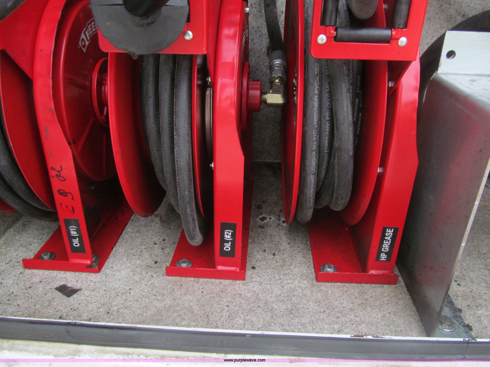 Purple Wave is selling a used Service Truck in Texas. This item is a 2007 Ford F550 Super Duty XL service truck with the following: 207,914 miles on odometer, 6.0L V8 OHV 32V turbo diesel engine, Automatic transmission, Four wheel drive, AC and heat, Tilt, Cruise, AM/FM/CD, Power windows, locks, and mirrors, Vinyl interior, Auxiliary control panel, Running boards, Front tow hooks, Amber light bar, Block heater, Utility bed, (7) storage compartments, Internal shelving, American Eagle toolbox, Side mounted gas and diesel fuel tanks, Work lights, Ingersoll Rand 2475 air compressor, Kohler Command 12.5 HP gas engine, 175 max psi, Serial 7030849, Miller Bobcat 250 welder/generator, 77 hours on meter, Kohler CH730 23.5 HP gas engine, CC/CV, AC/DC, 10,500 watt generator, Graco oil, lube, and grease system, Motor, hydraulic, grease, and recovery reservoirs, IR ARO pumps, Reelcraft hose, reel, and nozzle assemblies,, Receiver hitch, Trailer wiring, 225/70R19.5 tires, Cracked windshield, EIN 1004770