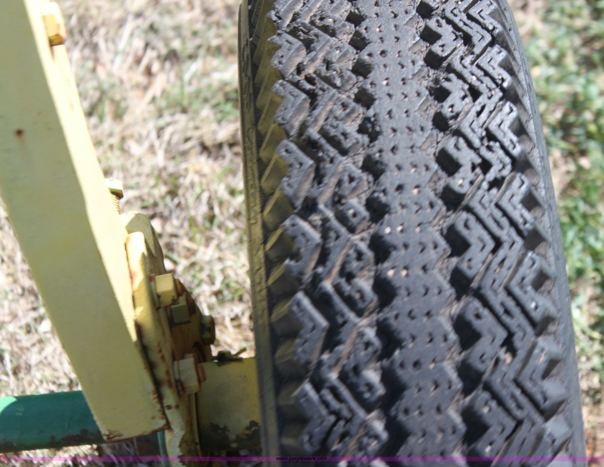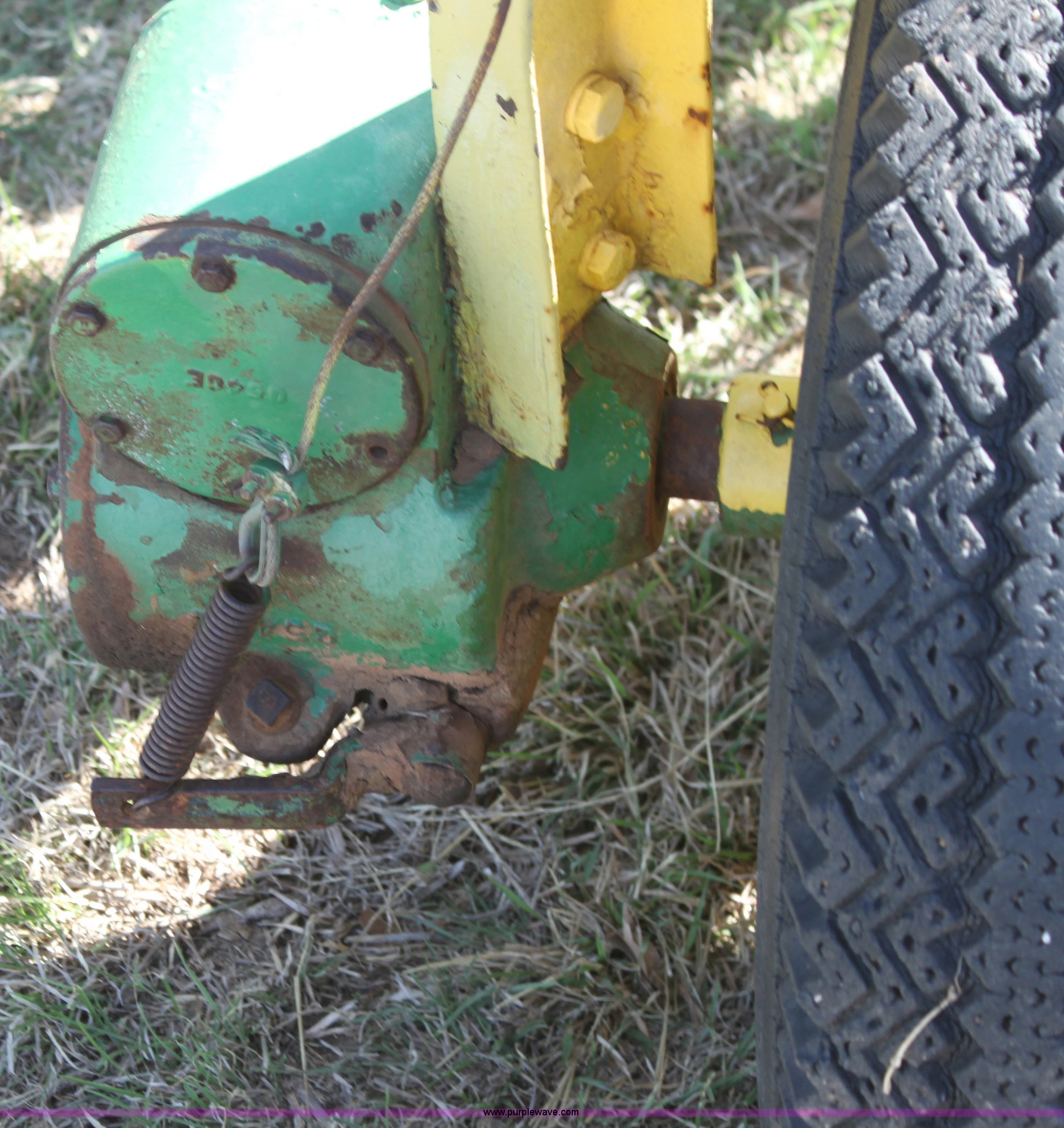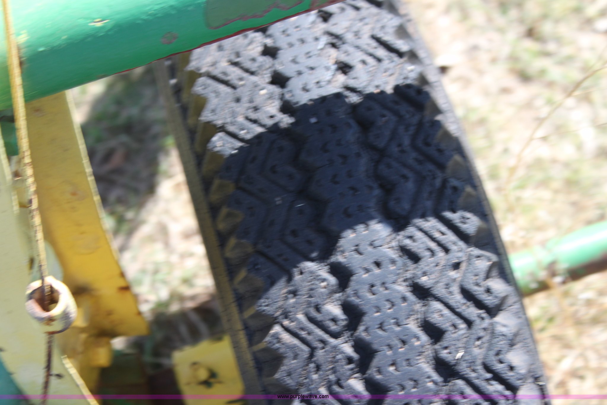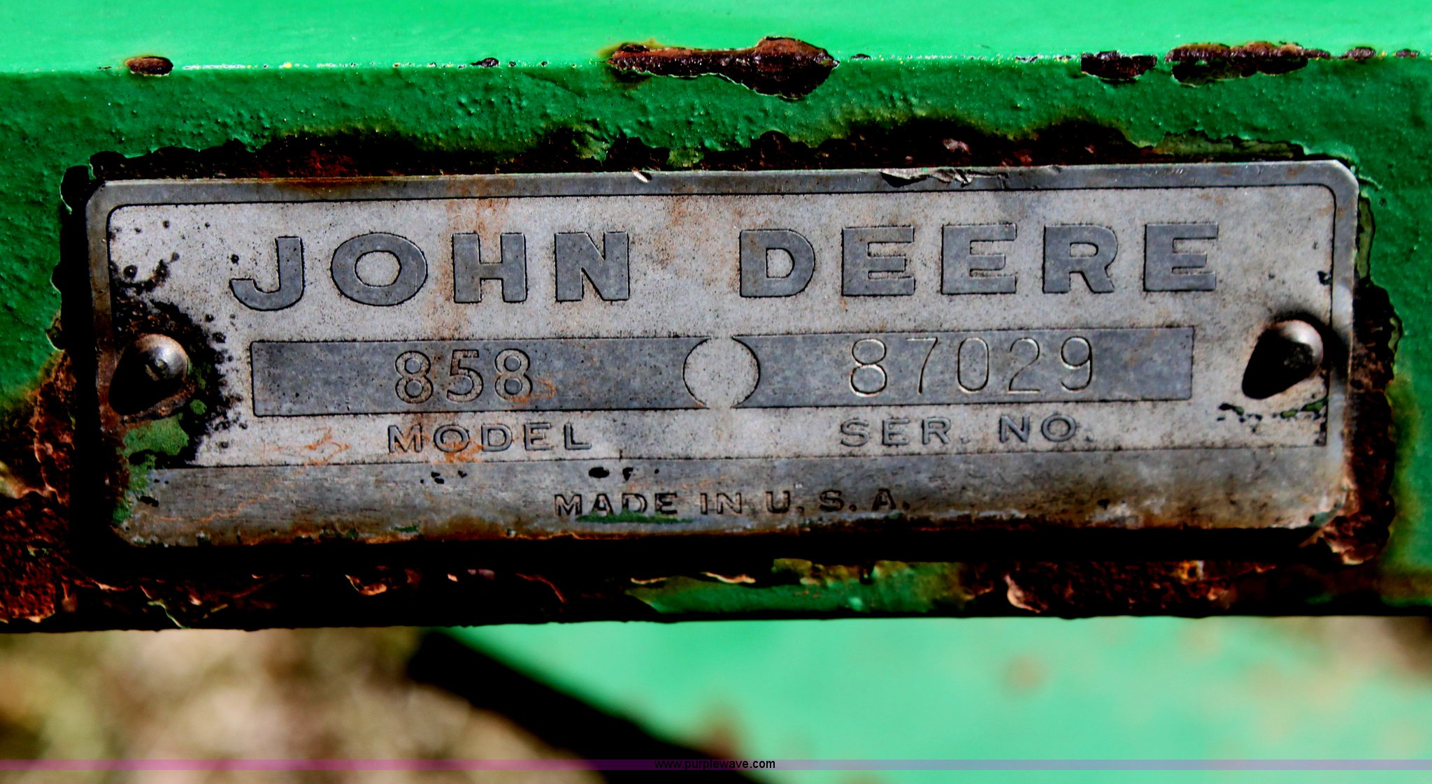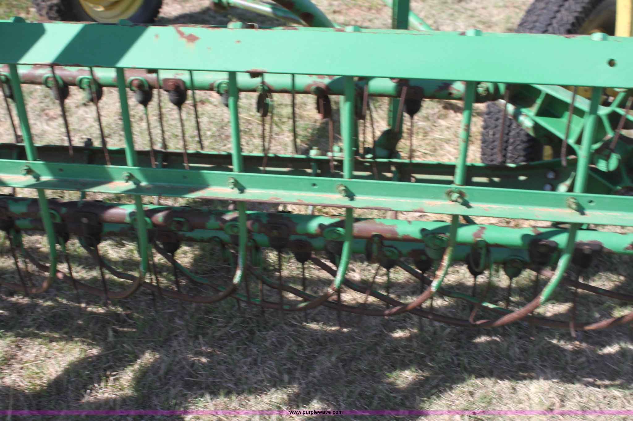 Purple Wave is selling a used Hay Rake in Oklahoma. This item is a John Deere 858 side delivery rake with the following: 10'W, Hydraulic height adjust, Ground driven, 15" tires, Serial 87029