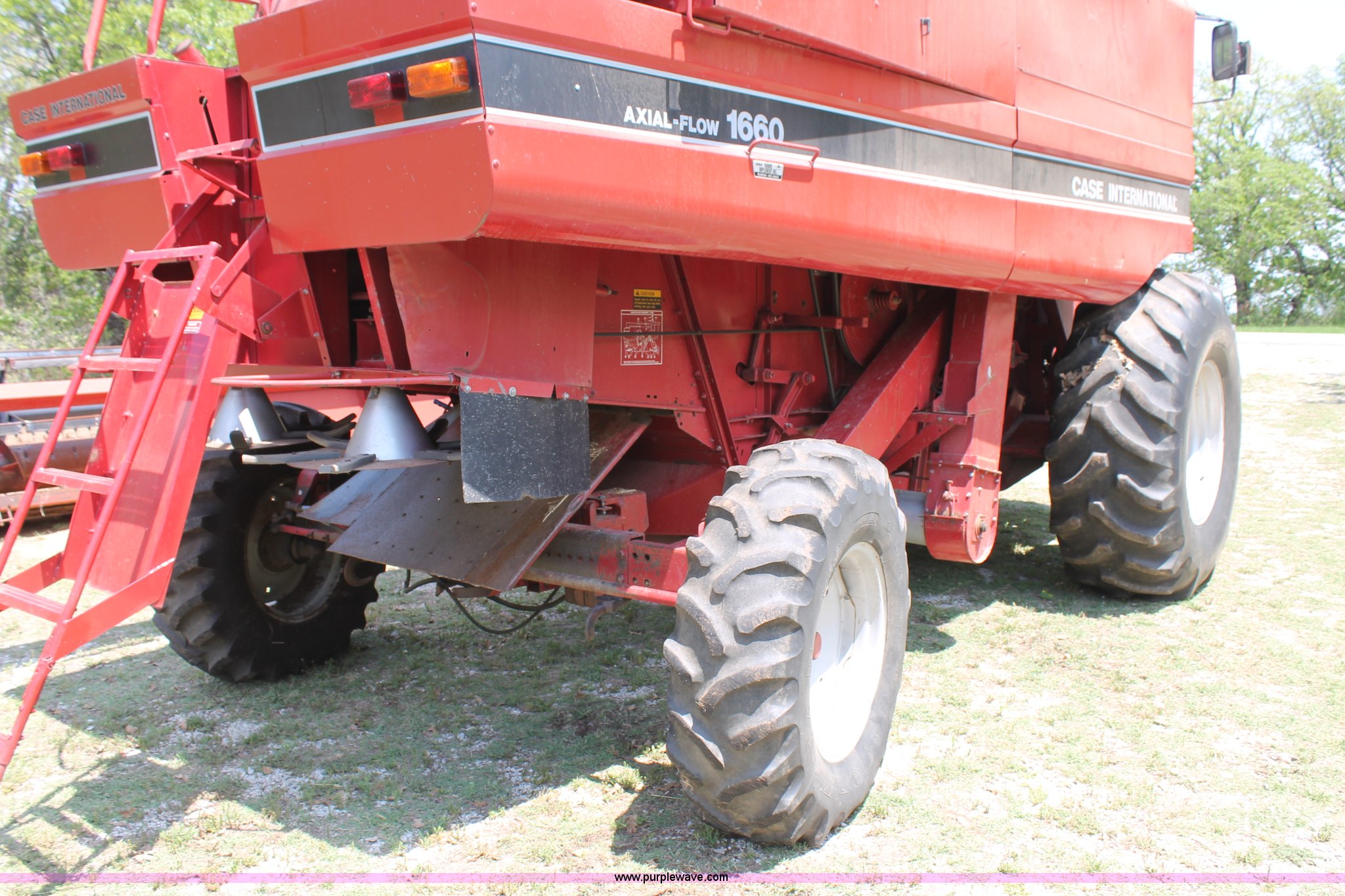 Purple Wave is selling a used Combine in Texas. This item is a 1990 Case IH 1660 combine with the following: 4,027 engine hours on meter, Cummins 830 six cylinder diesel engine, 180 HP, Serial 44427640, Hydrostatic transmission, Feeder house reverser, Single point hookup, AC and heat, AM/FM/cassette, Air suspension seat, Instructor's seat, Bin extension, Work lights, Straw spreader, Yield monitor, (6) rear weights, 24.5-32 front tires, 14.9-24 rear tires, Serial JJC0040137