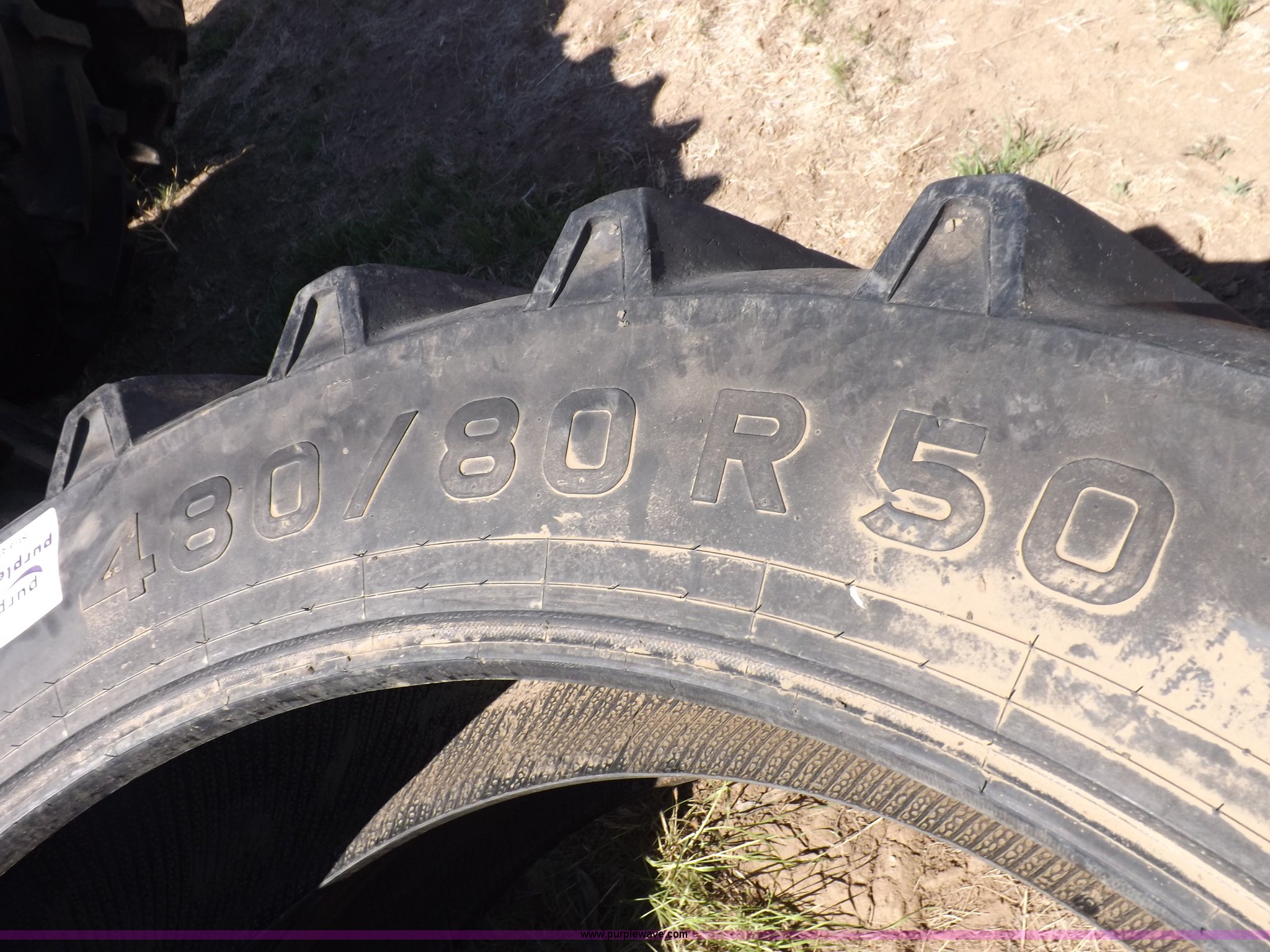 Purple Wave is selling a used Industrial Tires or Tracks in Kansas. This item is a (2) Titan Radial R-1W 480/80R50 tires with the following: AG 49M, Stubble guard, Tubeless or tube type, Used