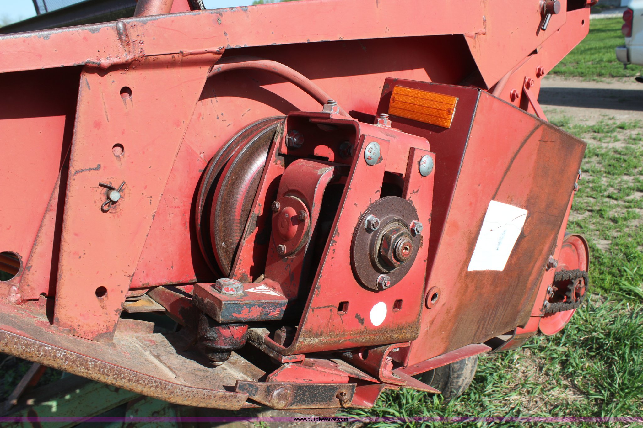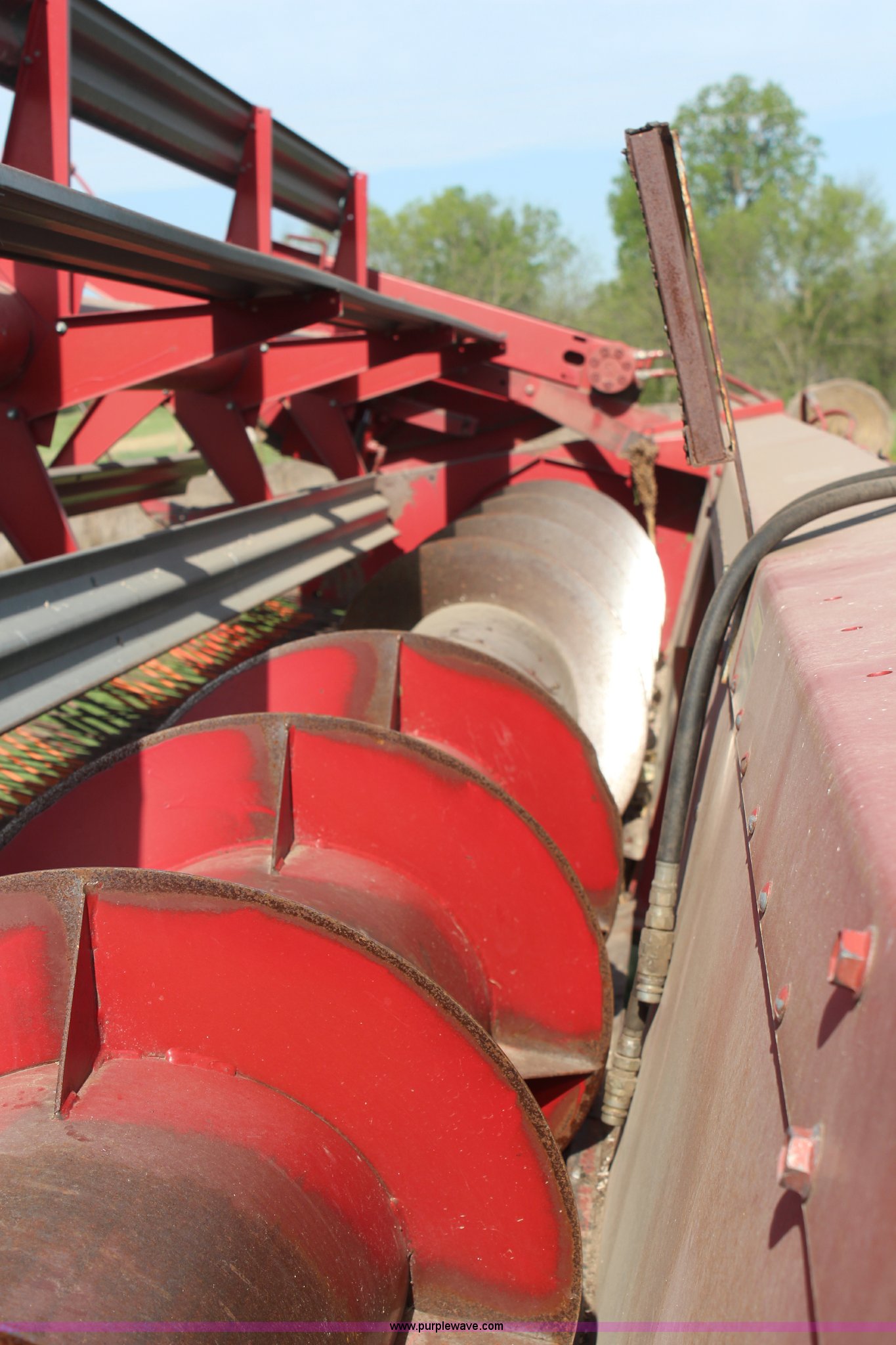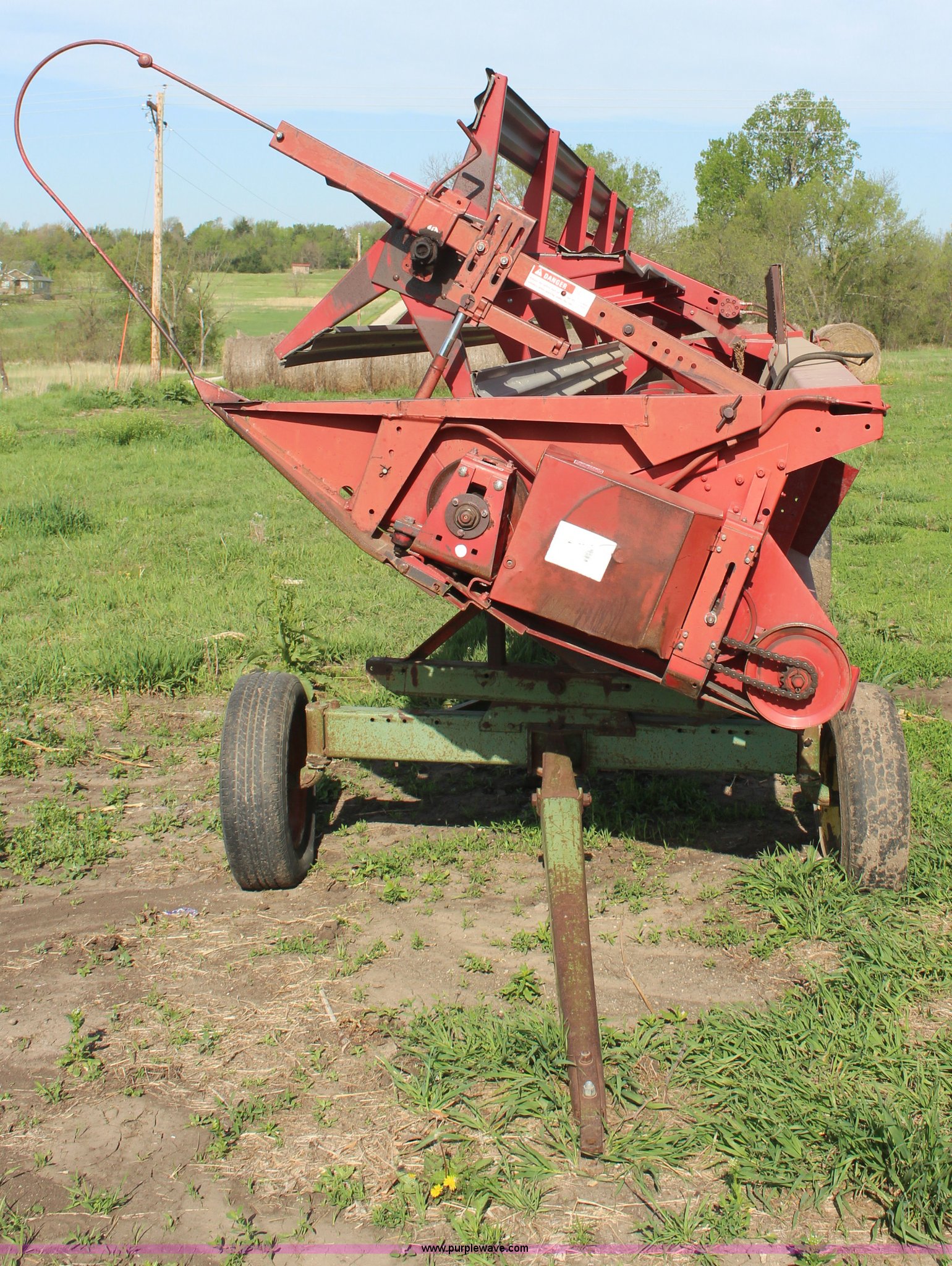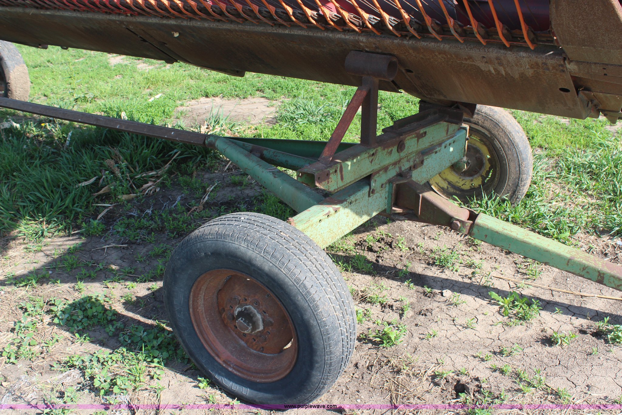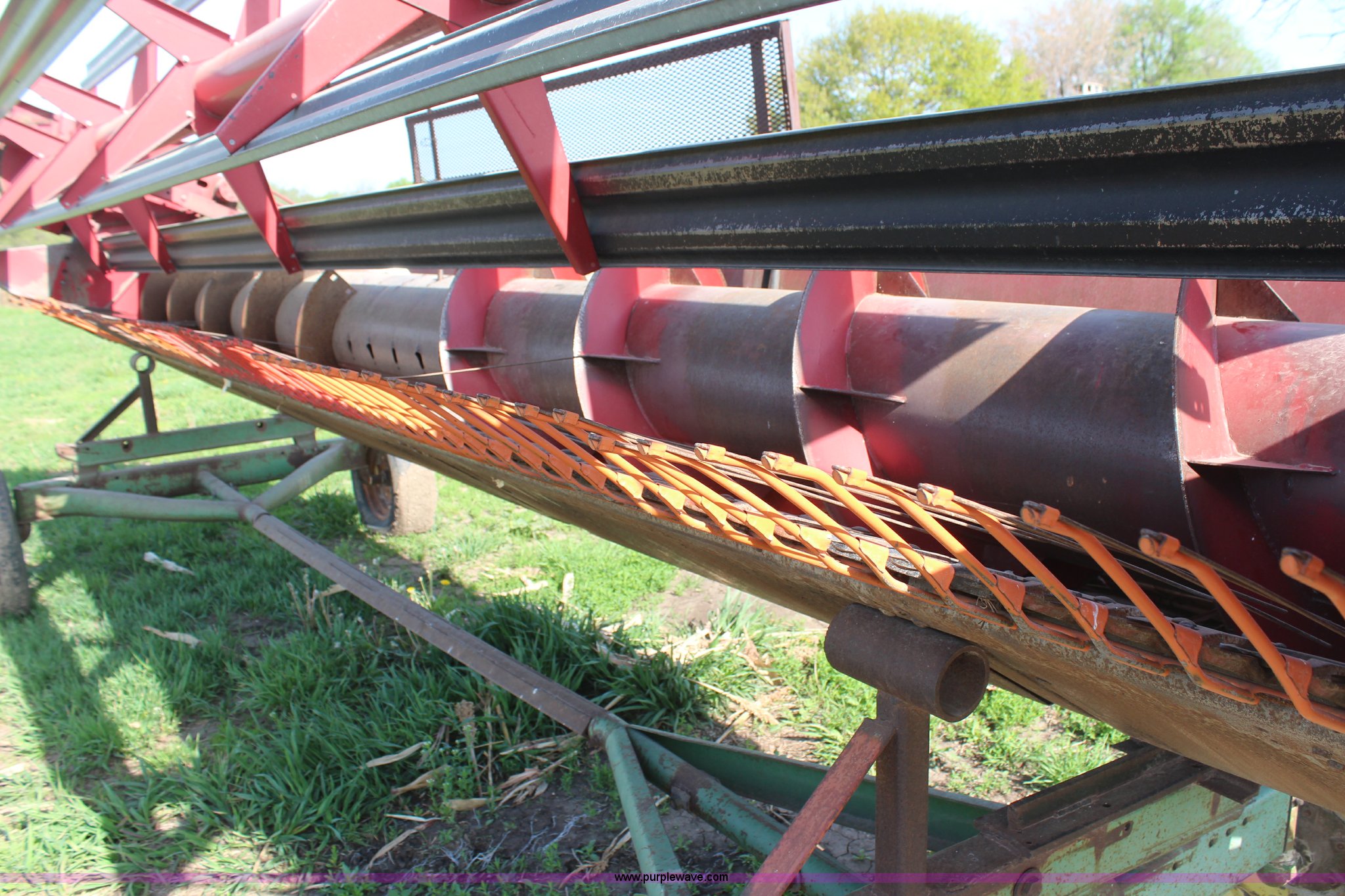Purple Wave is selling a used Platform or Stripper Head in Kansas. This item is a International 810-20 rigid platform head with the following: 20'W platform, Bat reel, Hydraulic reel lift, Milo guards, John Deere 1064 header trailer, Auger fingers mechanism broken, Serial 1480136U0L0186