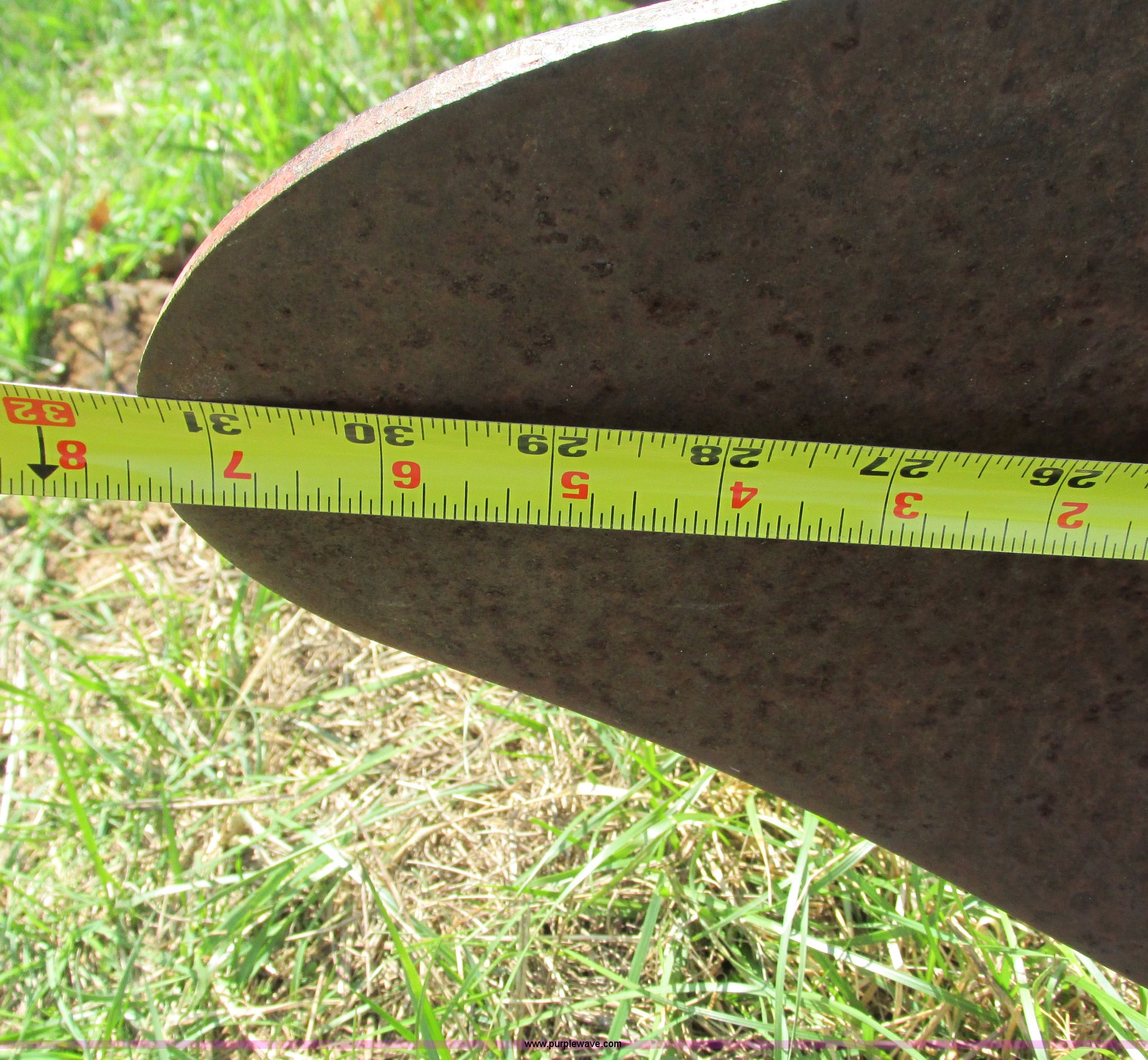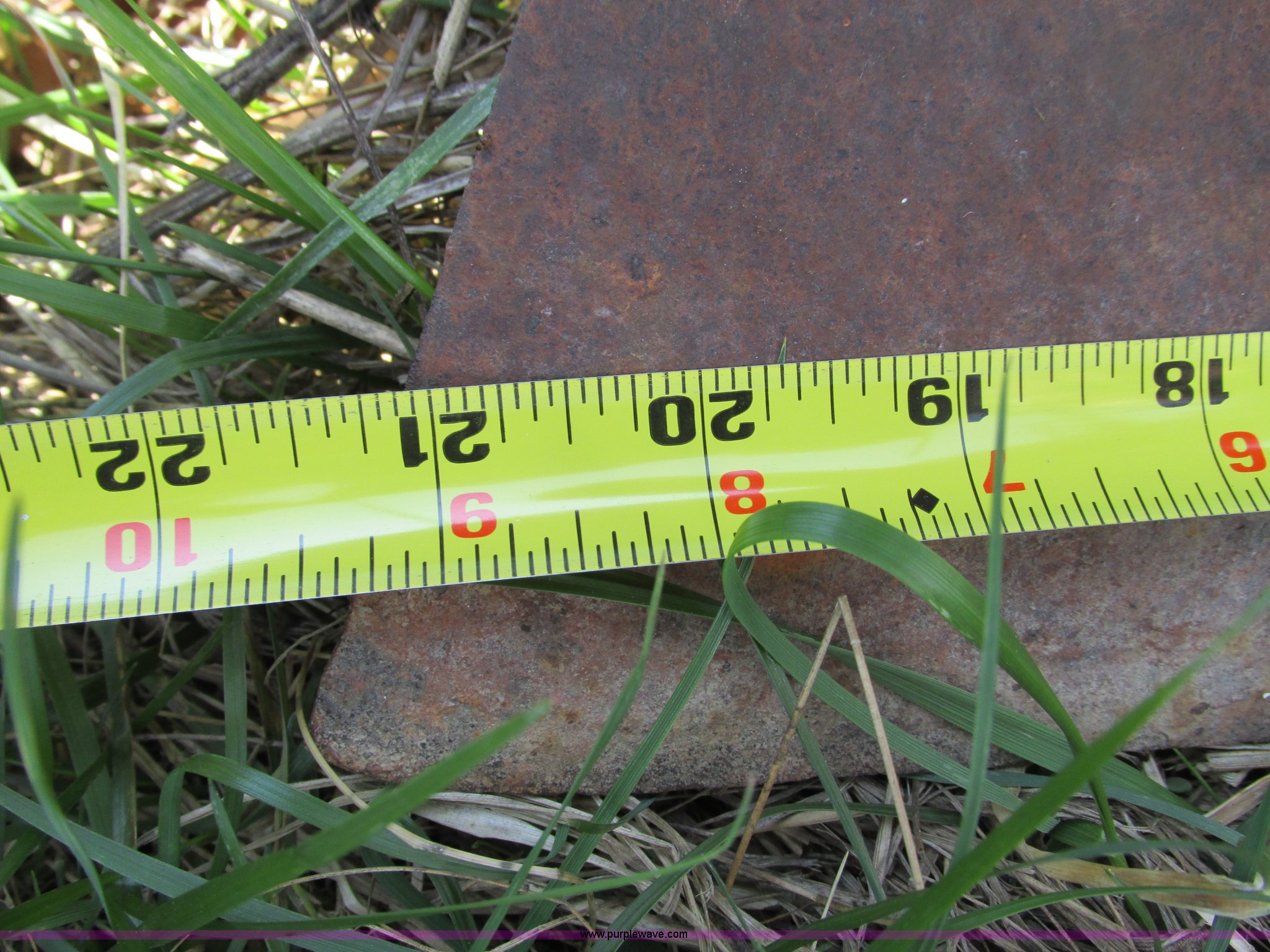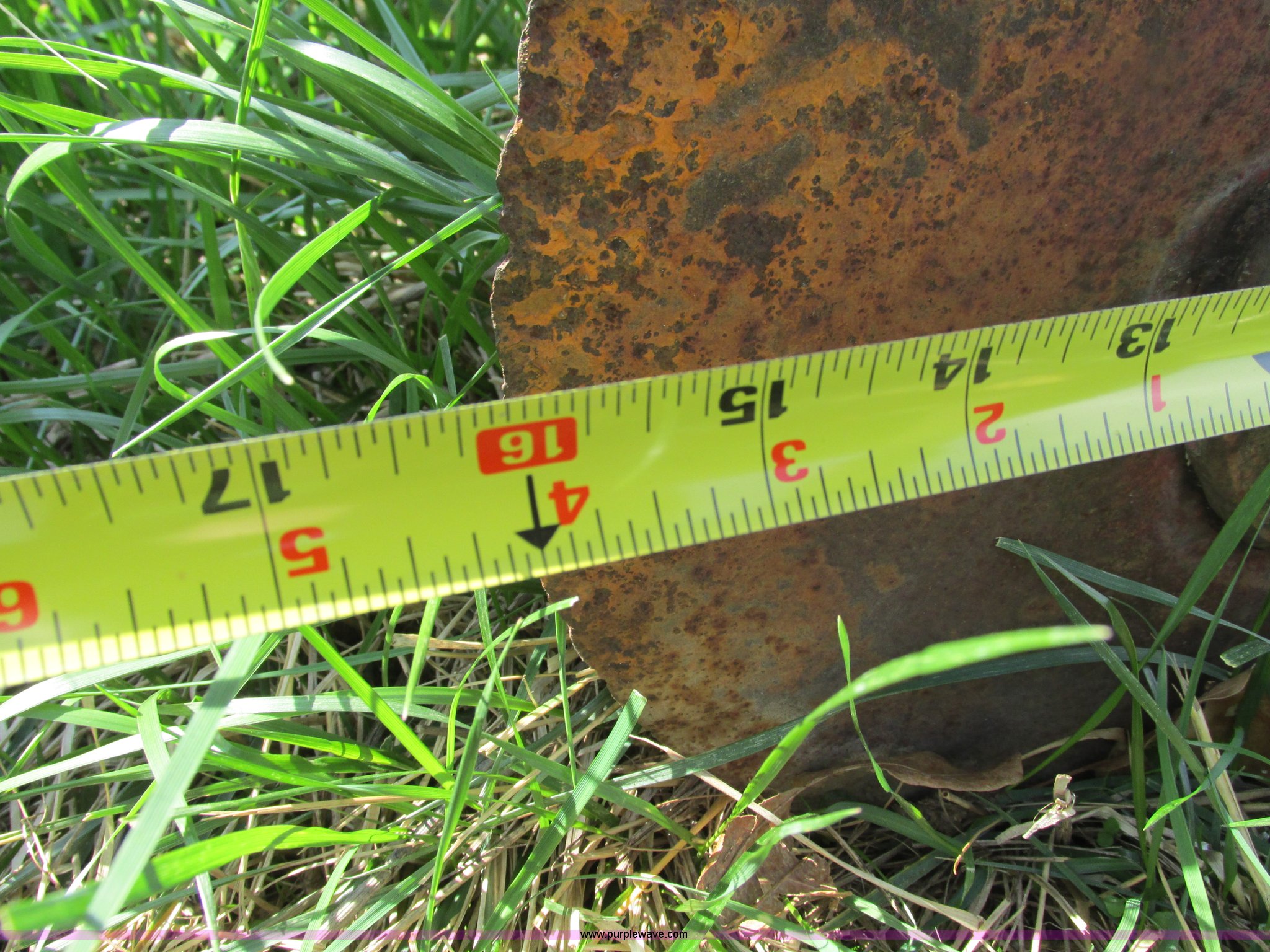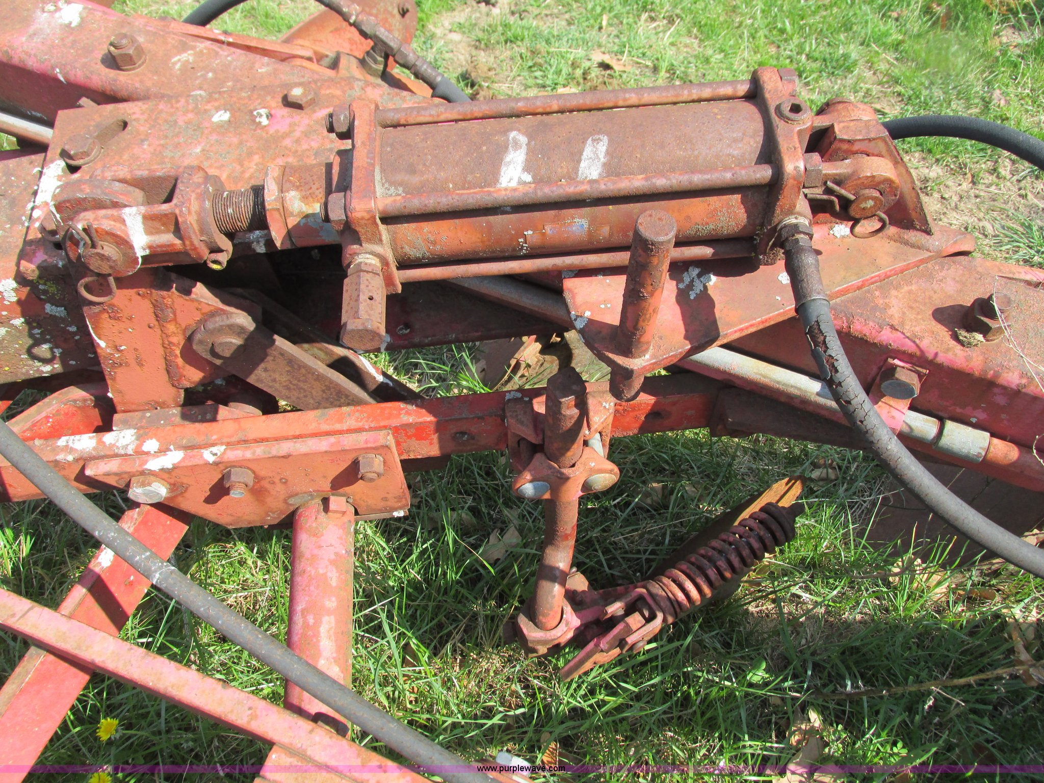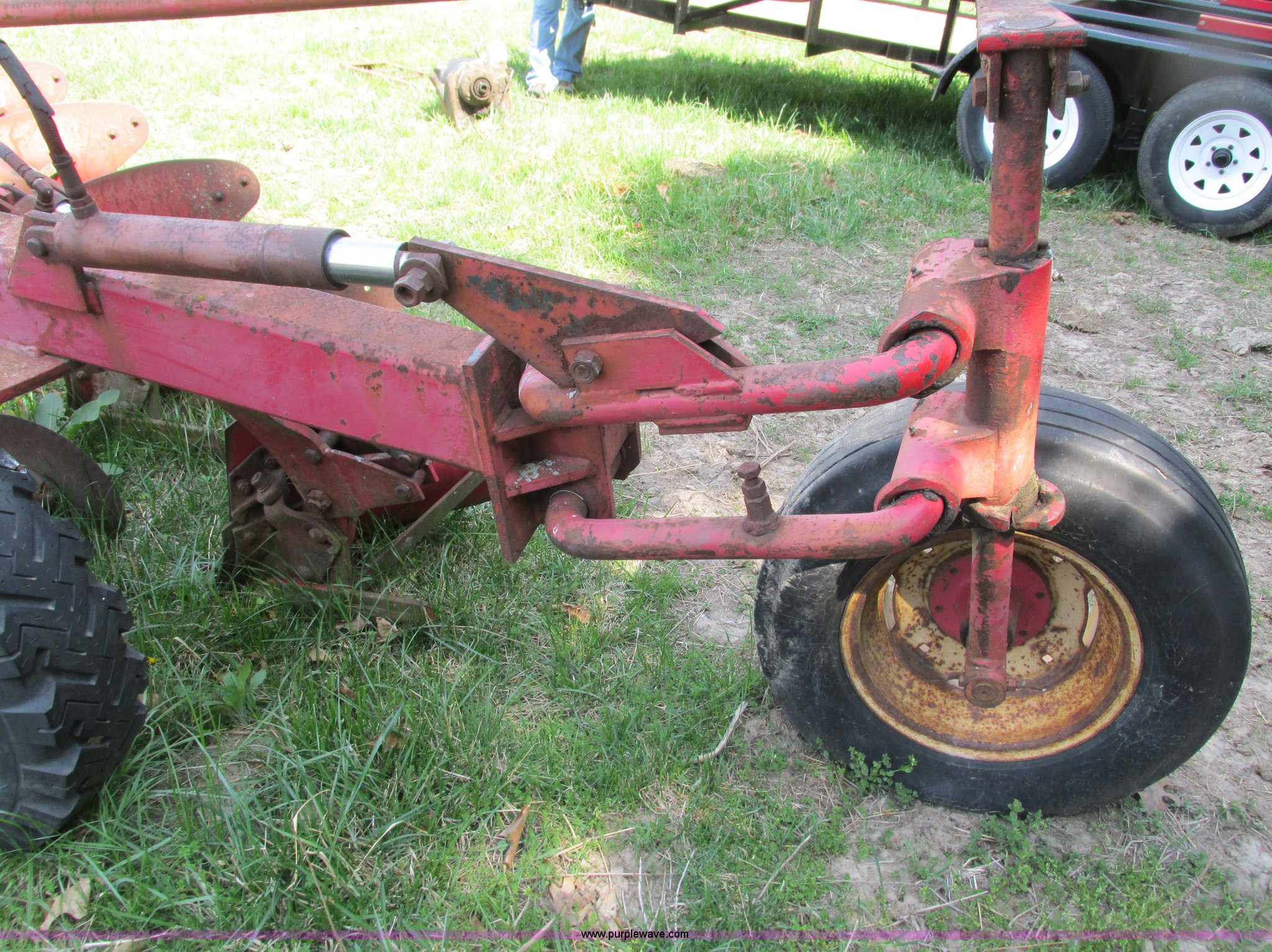 Purple Wave is selling a used Plow in Missouri. This item is a Massey-Ferguson 880 six bottom plow with the following: 16" disks, 31.5" plow at top, Approx. 21"W plow at bottom, Pin hitch, (2) 11Lx16 tires, 7x15 tire, One tire flat, Rust