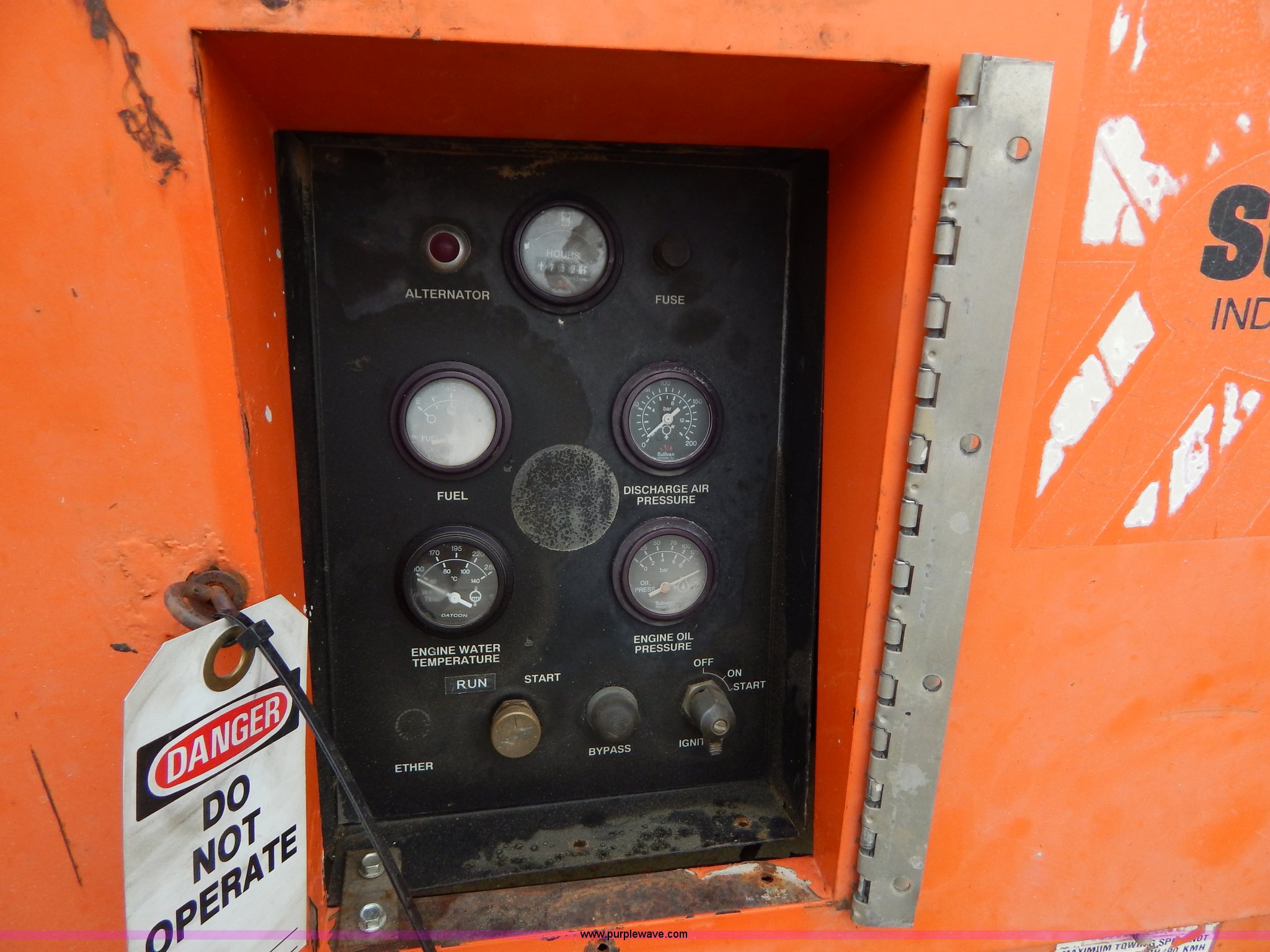 Purple Wave is selling a used Air Compressor in Missouri. This item is a Sullivan D210Q portable air compressor with the following: 1,732 hours on meter, John Deere PowerTech 4.5L diesel engine, Serial PE4045D129530, 100 psi max pressure, 2" ball, Manual jack, 205/75R16 tires, Serial 20925