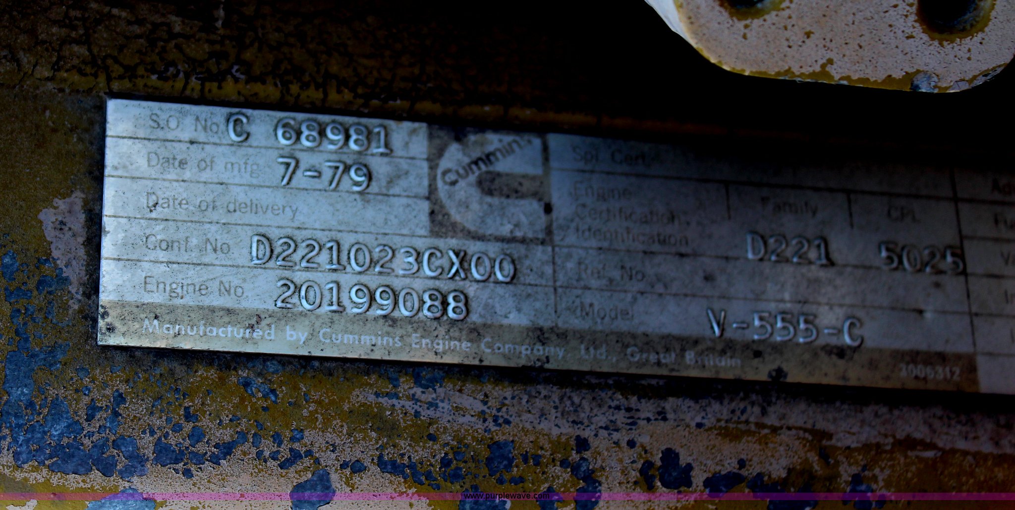 Purple Wave is selling a used Automotive Parts or Acces. in Kansas. This item is a Cummins V-555C V8 diesel engine with the following: 192 HP, Remove from Trojan wheel loader, Ran when removed approximately nine years ago, Unknown operating condition