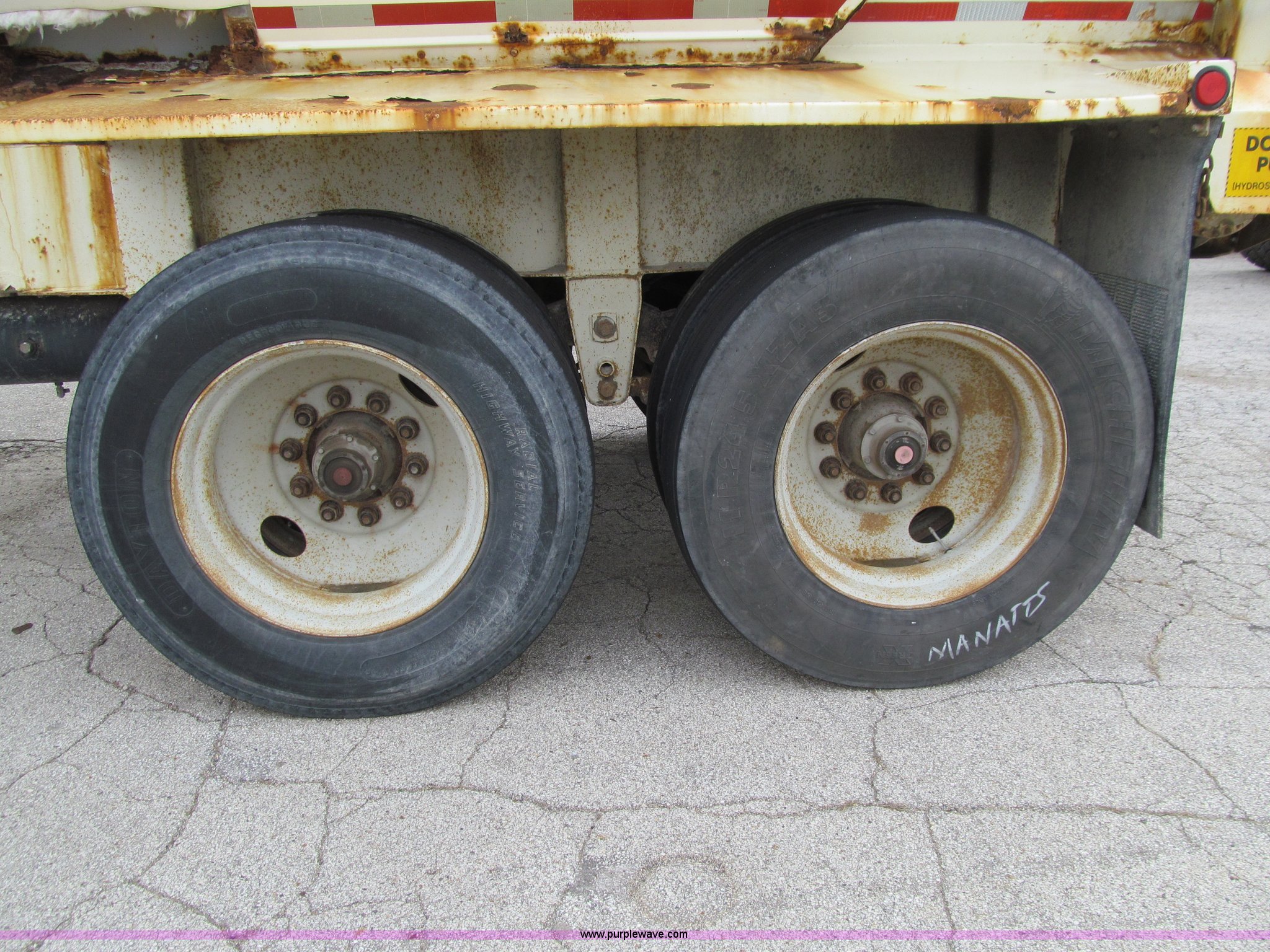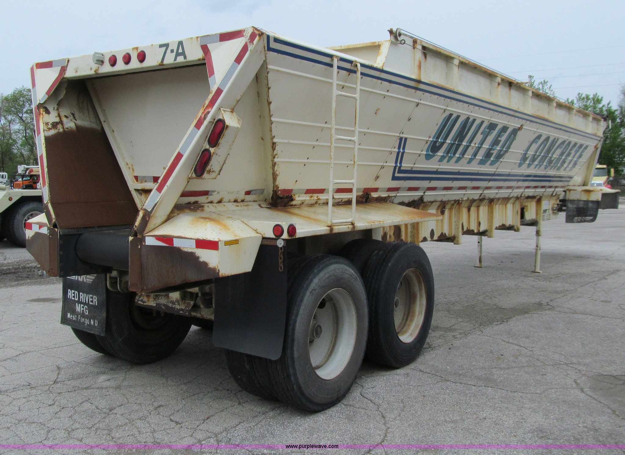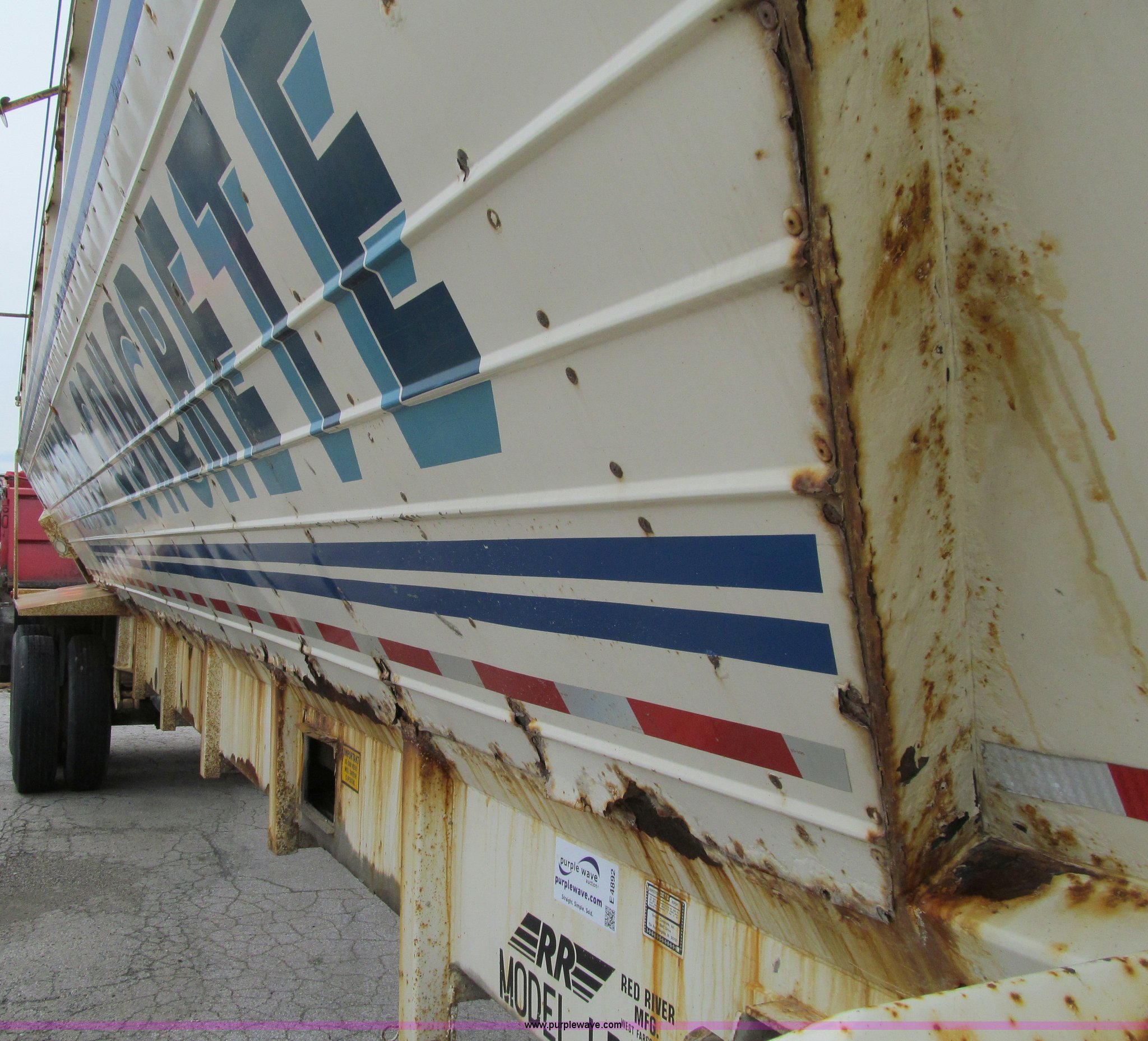 Purple Wave is selling a used Bottom Dump Trailer in Iowa. This item is a 1998 Red River LB237 live bottom trailer with the following: Approximately 42'L x 96"W, Full length tarp, Continuous rubber belt, Pin type landing gear, Mud flaps, Spring suspension, Air brakes, 11R24.5 tires, GVWR 67,000 lbs, GAWR 22,500 lbs, Rust, Small perforations