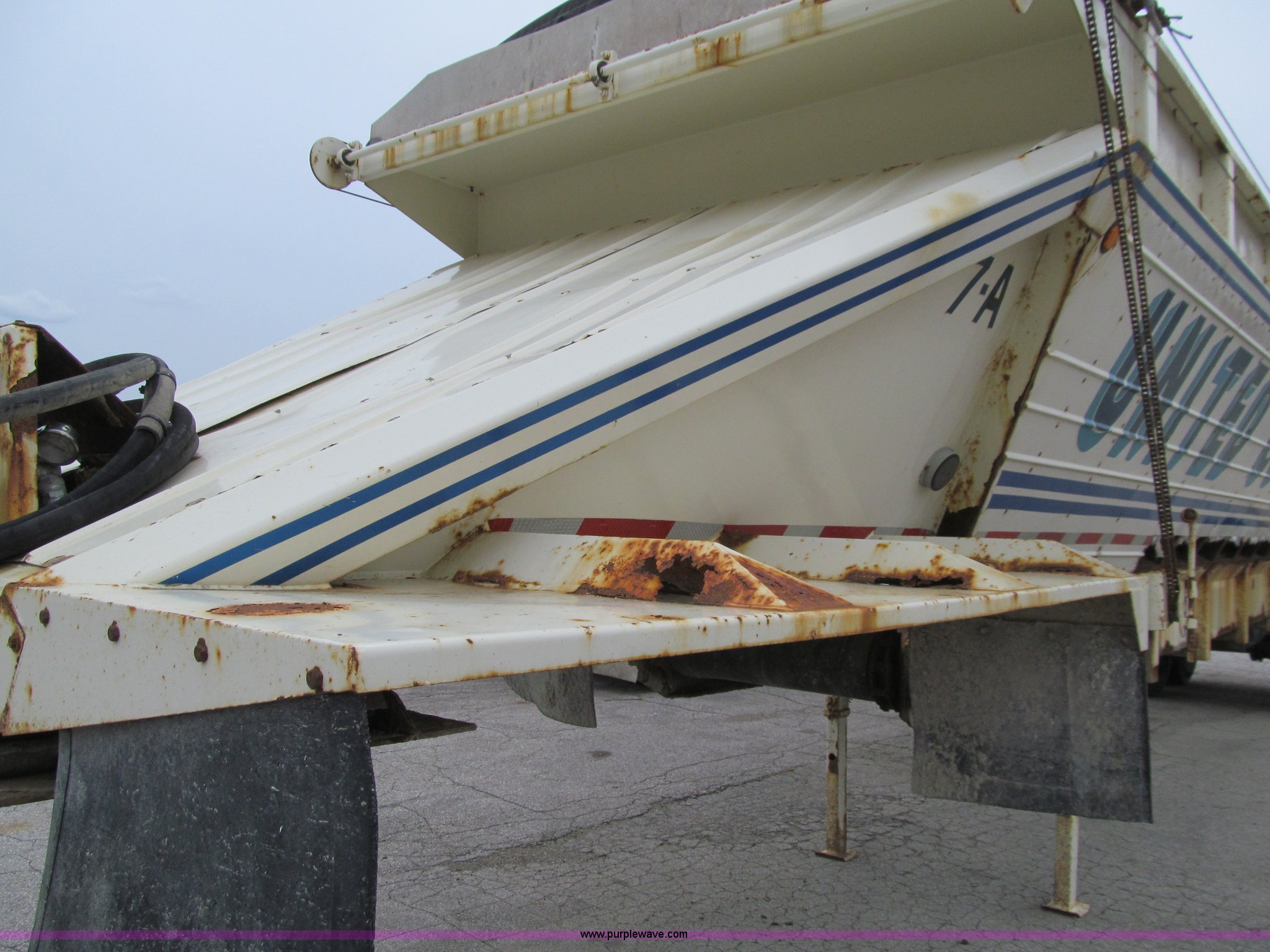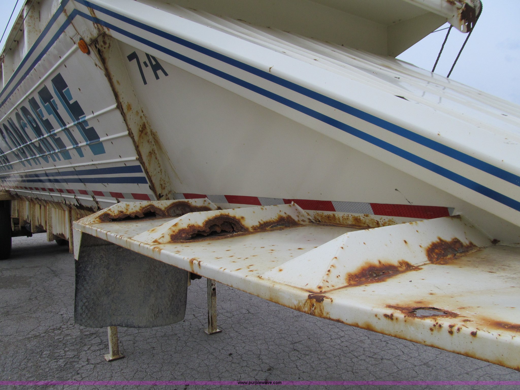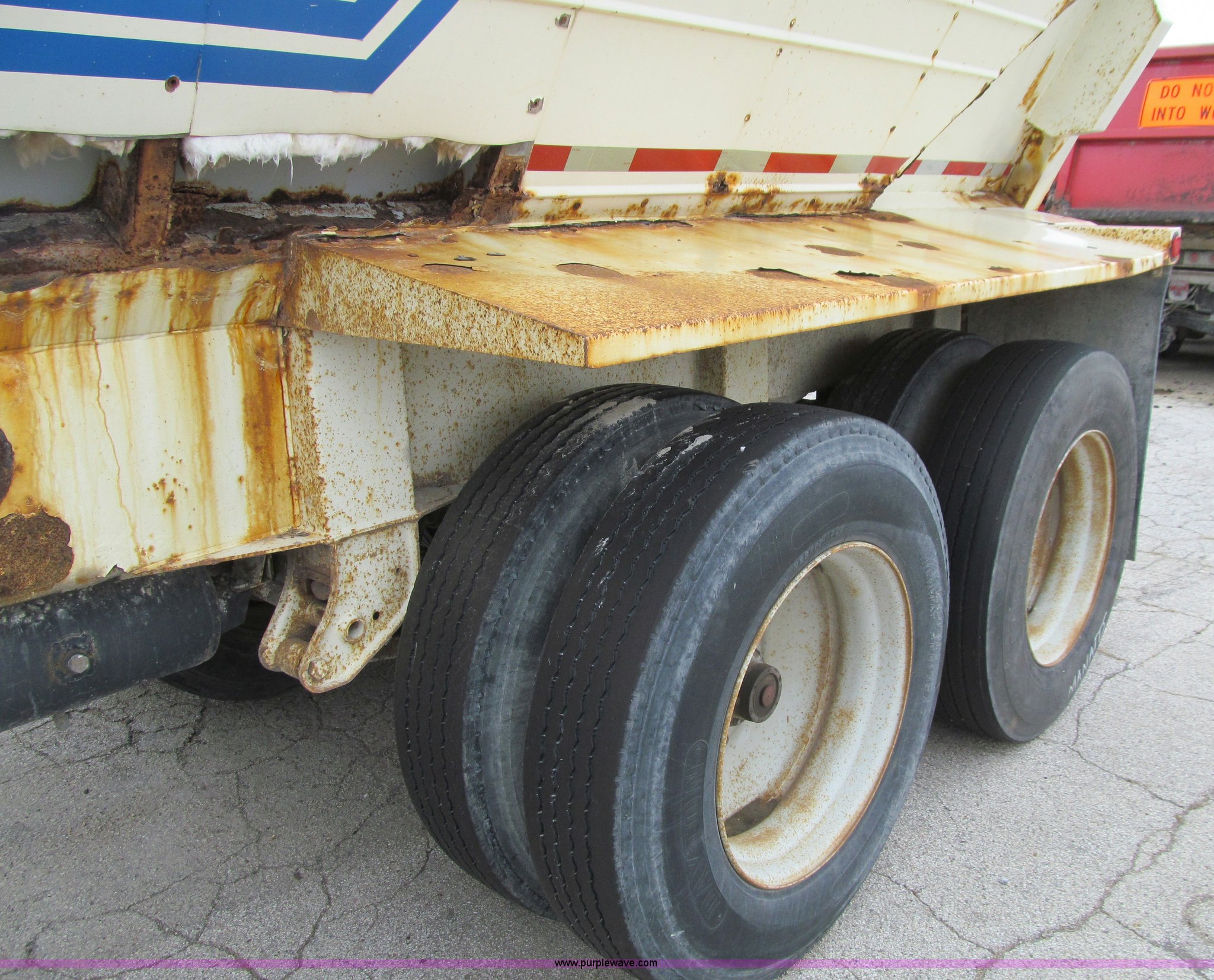 Purple Wave is selling a used Bottom Dump Trailer in Iowa. This item is a 1998 Red River LB237 live bottom trailer with the following: Approximately 42'L x 96"W, Full length tarp, Continuous rubber belt, Pin type landing gear, Mud flaps, Spring suspension, Air brakes, 11R24.5 tires, GVWR 67,000 lbs, GAWR 22,500 lbs, Rust, Small perforations