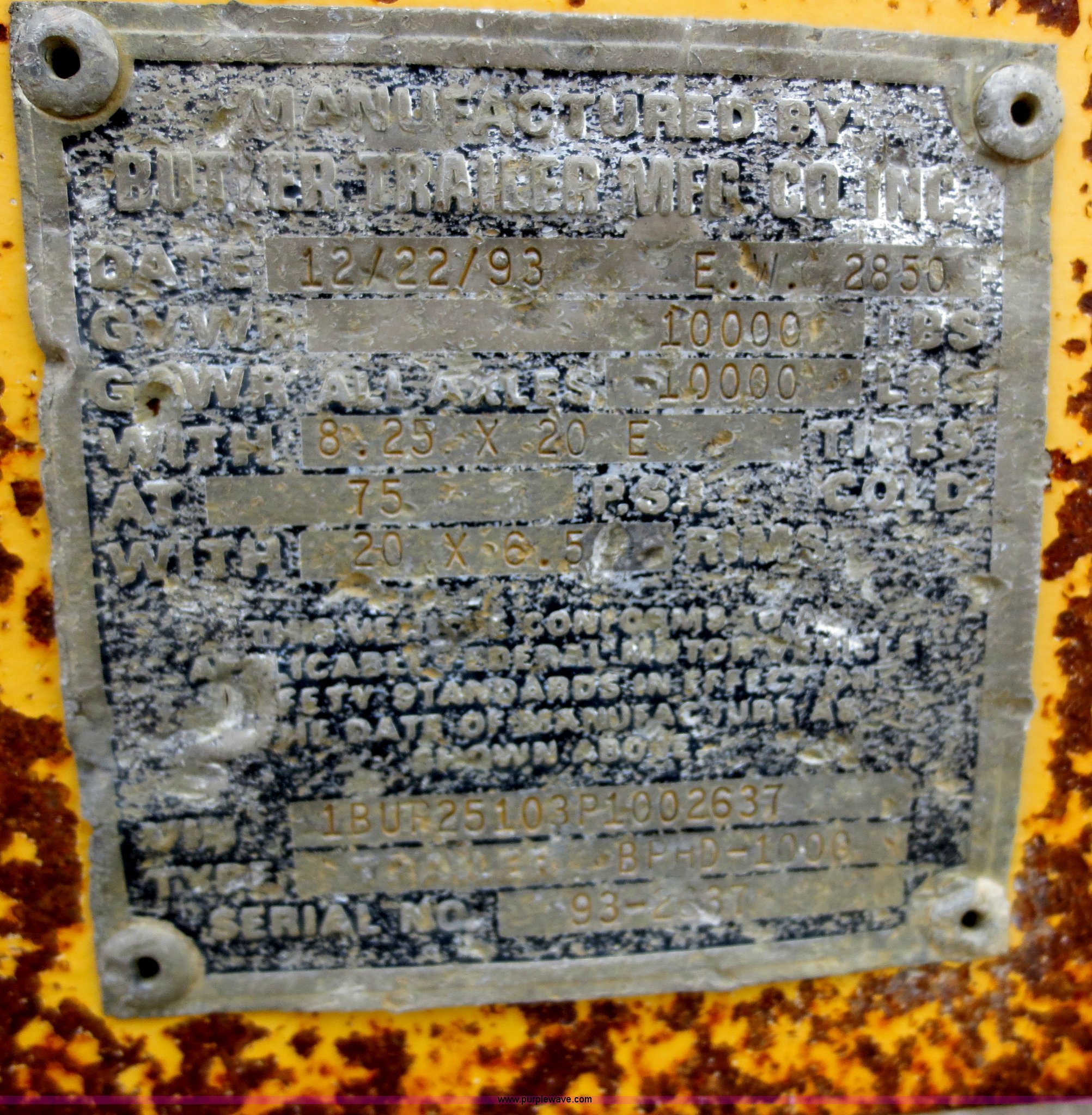 Purple Wave is selling a used Trailer Other in Kansas. This item is a 1994 Butler BPHD-1000 pole trailer with the following: 20'L x 6.5'W, Telescopic frame, Pintle hitch, Electric brakes, 8.25-20 tires, GVWR 10,000 lbs, 2,850 lbs empty weight, Serial 93-2637