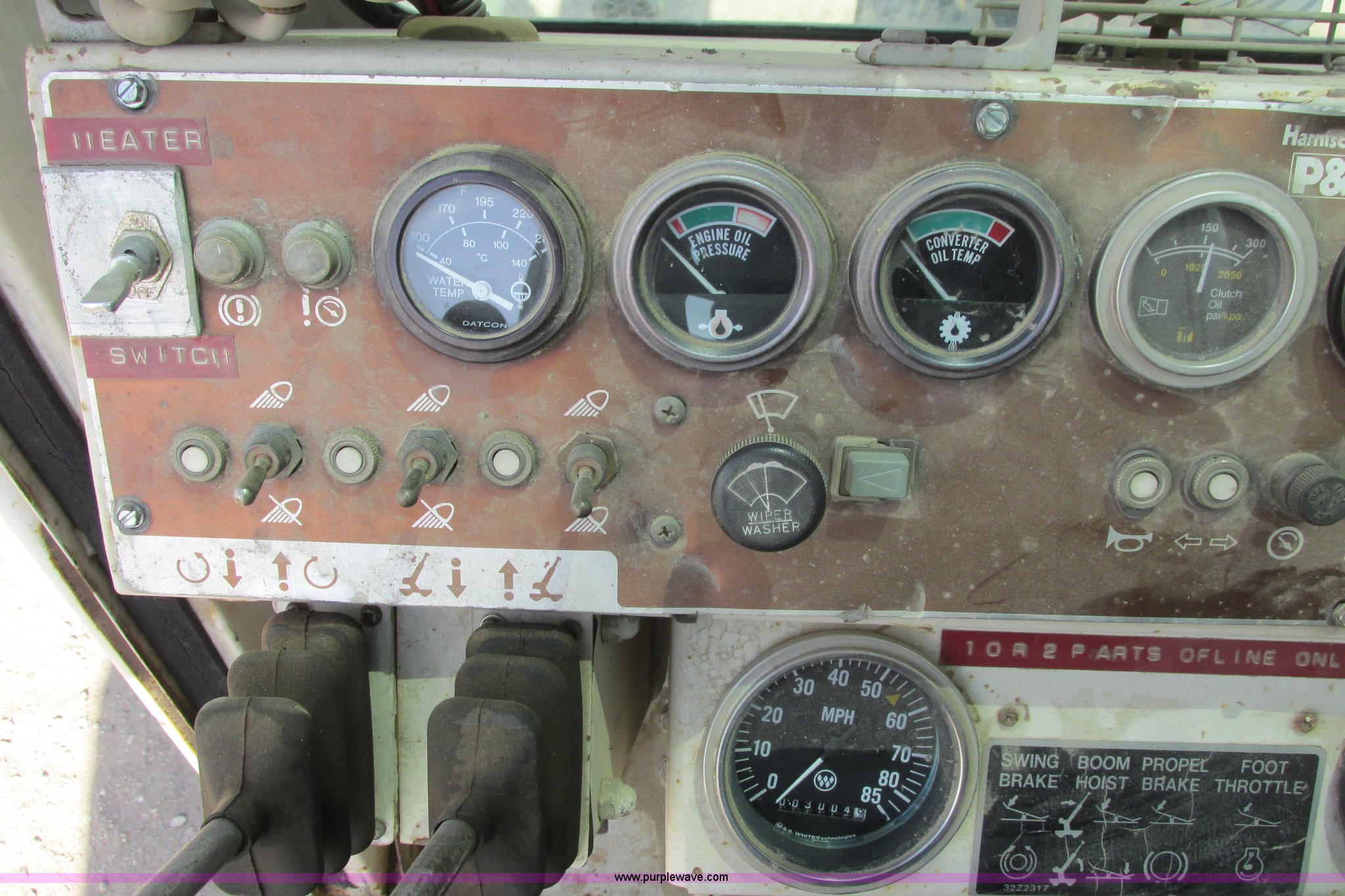 Purple Wave is selling a used Carry Deck Crane in Kansas. This item is a P & H 122 Omega 100 series hydraulic crane with the following: 3,004 miles on odometer, 10,007 hours on meter, 7 hours on replaced meter, Detroit Diesel 8.2L diesel engine, Powershift transmission, 6F-3R gears, Four wheel drive, Enclosed cab, Heat, 22 ton capacity, 72' maximum boom extension, 25' lattice boom extension, Needs some lacing replaced, PCSA Class 10-93, Telescopic boom, Oscillating, Two part cable, Seven part maximum, Two stick crane controls, Foot pedal crane control, In-cab outrigger control, Krueger two block warning system, Work lights, Boom lights, Slide-out horizontal outrigger frames, Hydraulic post outriggers, 20.5-25 tires, 20 ply, Additional parts and accessories included, Operator and parts manual, Manufacturer CTR No. TA00087