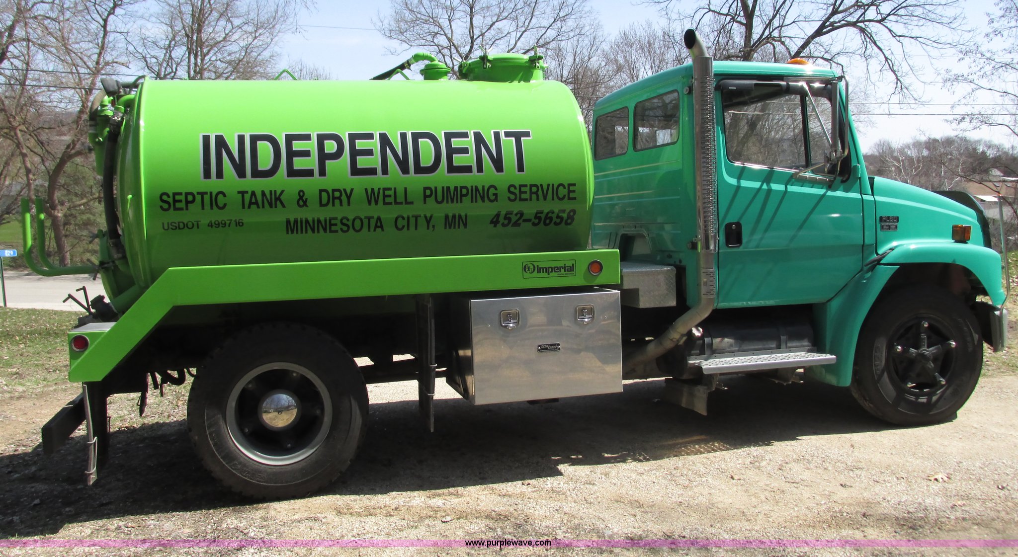 Purple Wave is selling a used Vacuum Truck in Minnesota. This item is a 1994 Freightliner FL60 vacuum truck with the following: 97,918 miles on odometer, Cummins 5.9L diesel engine, Eanton Fuller FS 5106 10 kspeed transmission, Heat, AM/FM, Heated mirrors, Air suspension seat, Imperial UTM-1400 vacuum tank, 1,500 gallon capacity, PTO driven pump, Serial C-34348, PTO, (3) aluminum tool boxes, Spring suspension, Air brakes, 168" wheelbase, 9.00R20 tires, GVWR 27,500 lbs, FAWR 10,000 lbs, RAWR 17,500 lbs