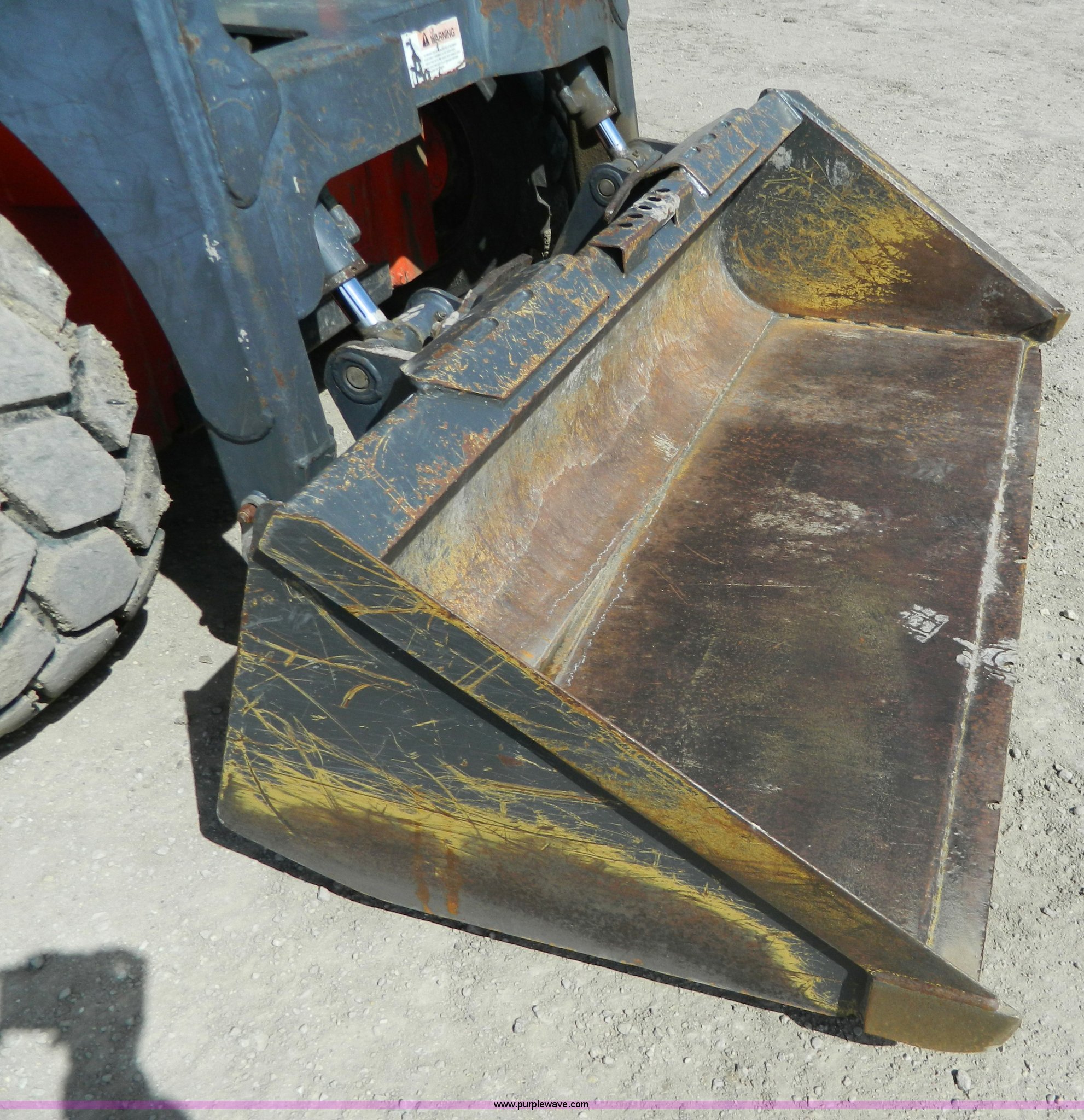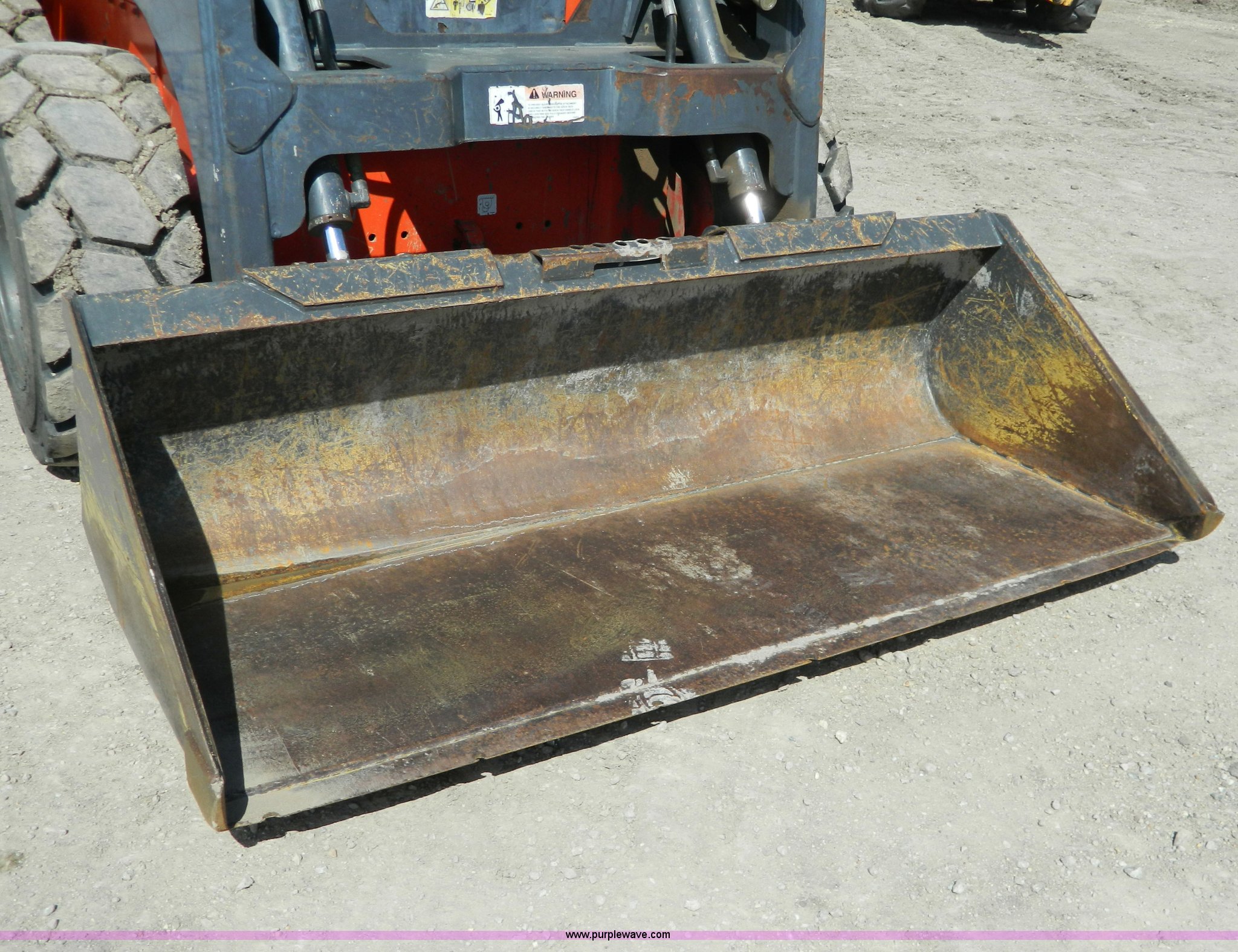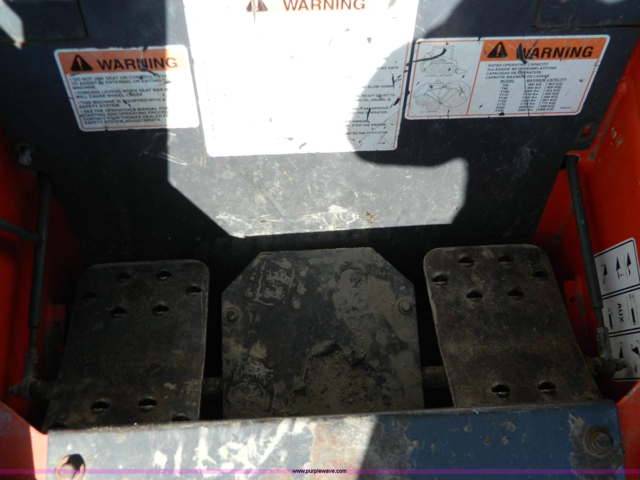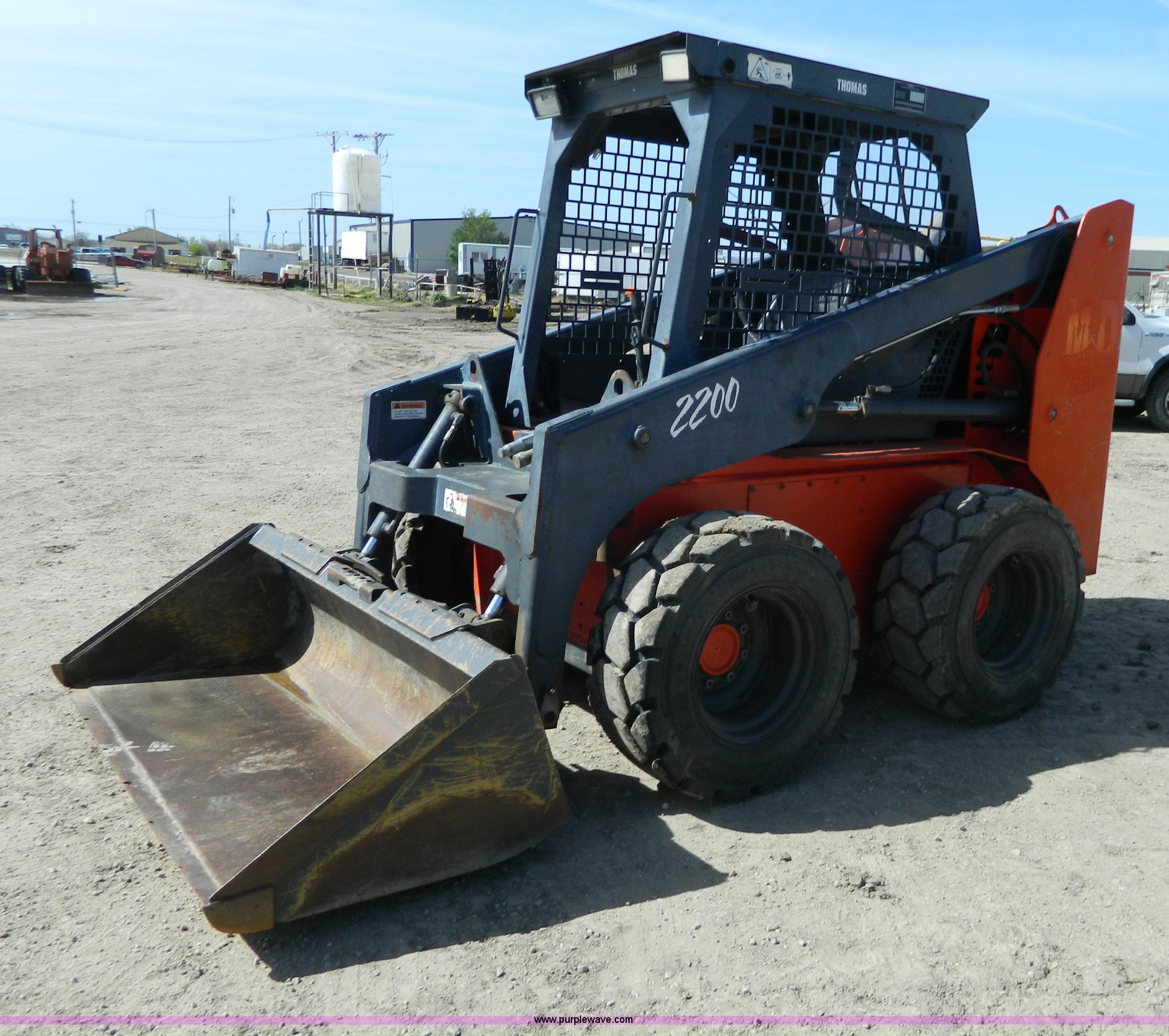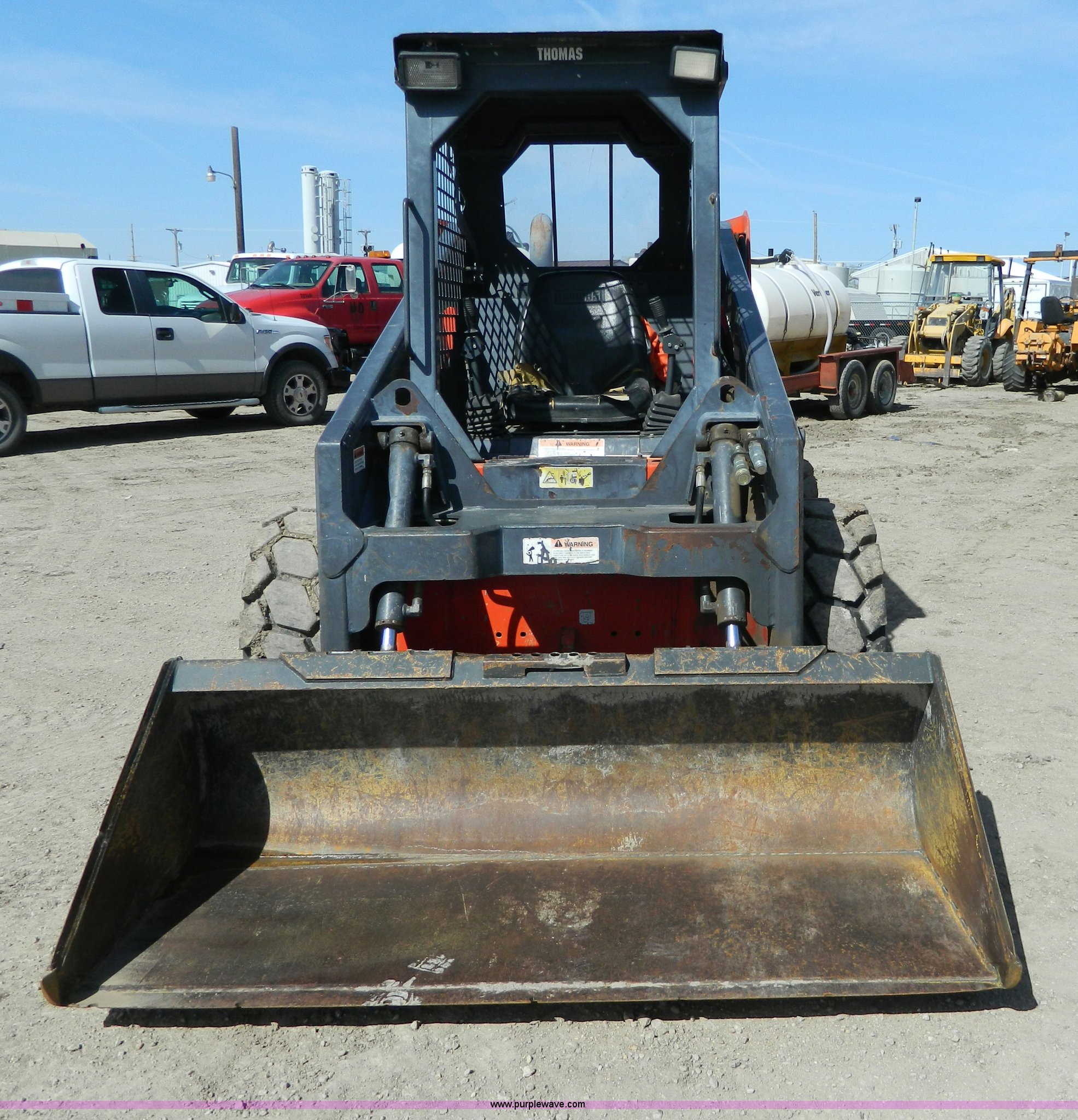 Purple Wave is selling a used Skid Steer Loader in Kansas. This item is a Thomas B103/2200 skid steer with the following: 2,201 hours on meter, Kubota V3300TE four cylinder diesel engine, Hydrostatic transmission, Back glass, Bucket foot controls, EMS, Spring suspension seat, Standard and high flow auxiliary hydraulics, Front and rear work lights, 72"W bucket, 17.1 cubic foot capacity, Weld-on cutting edge, 12-16.5 tires, Serial LP000305