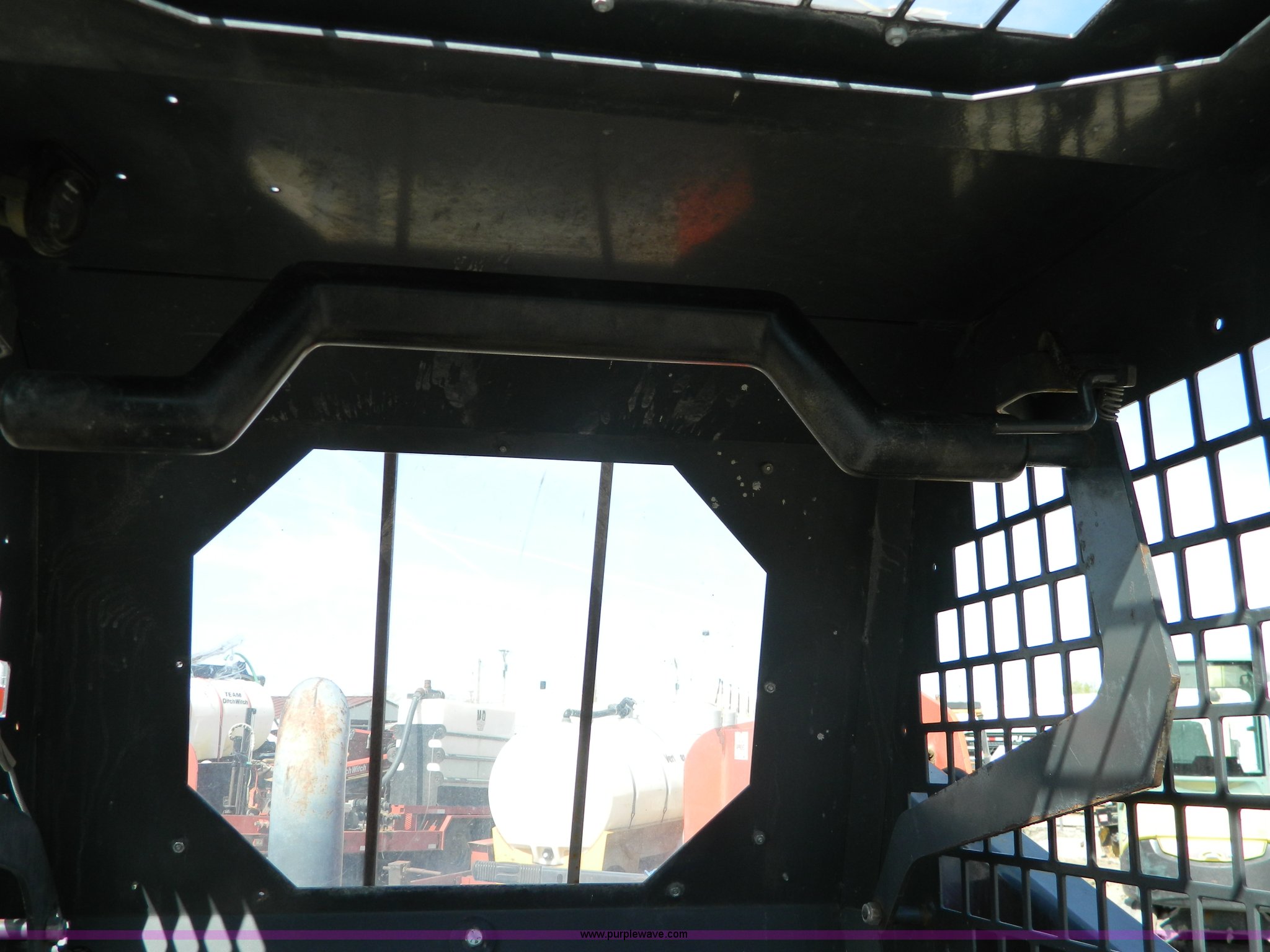 Thomas B103/2200 skid steer. 2,201 hours on meter, Kubota V3300TE four cylinder diesel engine, Hydrostatic transmission, Back glass, Bucket foot controls, EMS, Spring suspension seat, Standard and high flow auxiliary hydraulics, Front and rear work lights, 72"W bucket 17.1 cubic foot capacity, Weld-on cutting edge, 12-16.5 tires, Serial LP000305. 1116 E 8th. Hays, KS 67601
