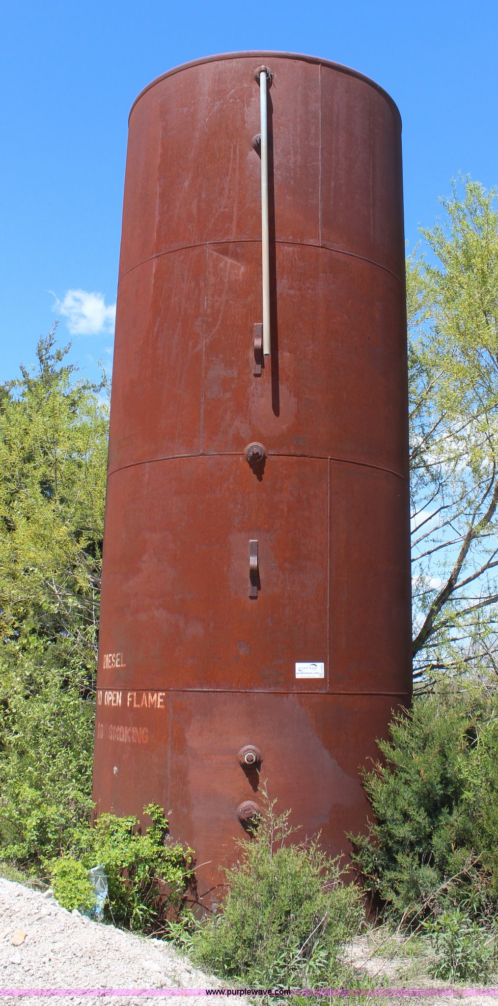 Purple Wave is selling a used Fuel and Lube in Kansas. This item is a 8,000 gallon upright fuel tank with the following: 21'L x 8' diameter