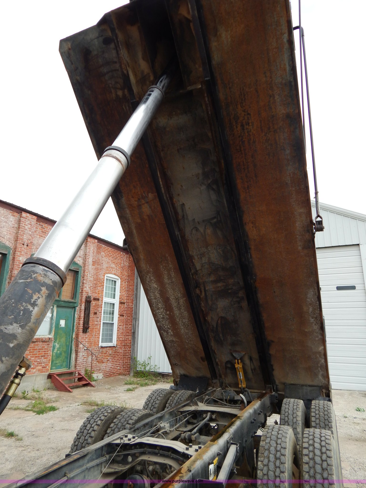 Purple Wave is selling a used Construction Dump Truck in Missouri. This item is a 1997 Mack RD688S dump truck with the following: 254,383 miles on odometer, 14,670 hours on meter, Mack E7 12.0L L6 diesel engine, 350 HP, Maxitorque Extended Range 12 speed manual transmission, AC and heat, Tilt, Cruise, Heated mirrors, Exterior visor, 18'L x 8'W x 52"H dump bed, Air end gate, Rollover tarp, Dual 55 gallon fuel tanks, PTO, Spring suspension, Air brakes, 385/65R22.5 front tires, 11R22.5 rear tires, GVWR 56,740 lbs, FAWR 18,740 lbs, IAWR 19,000 lbs, RAWR 19,000 lbs
