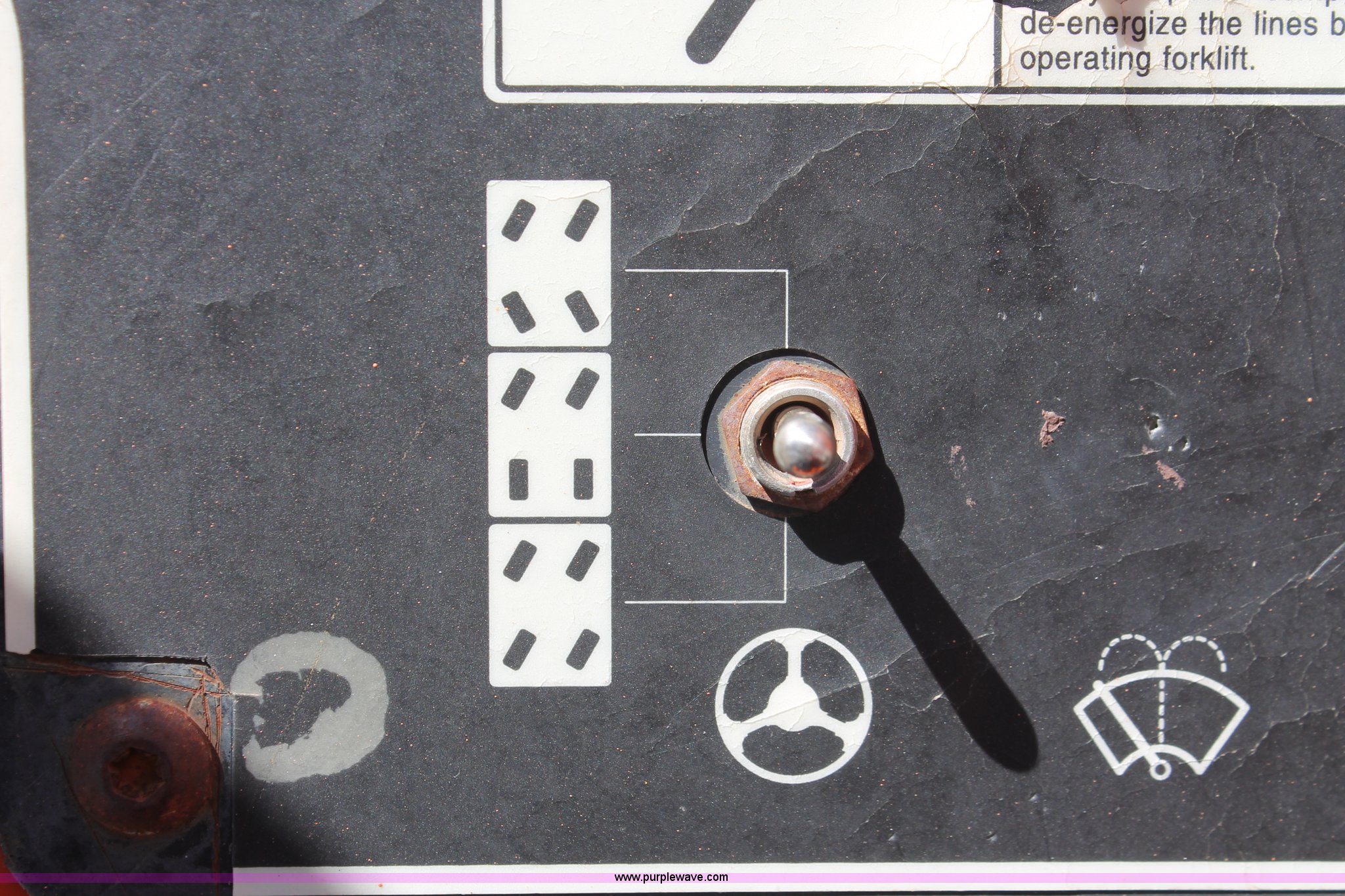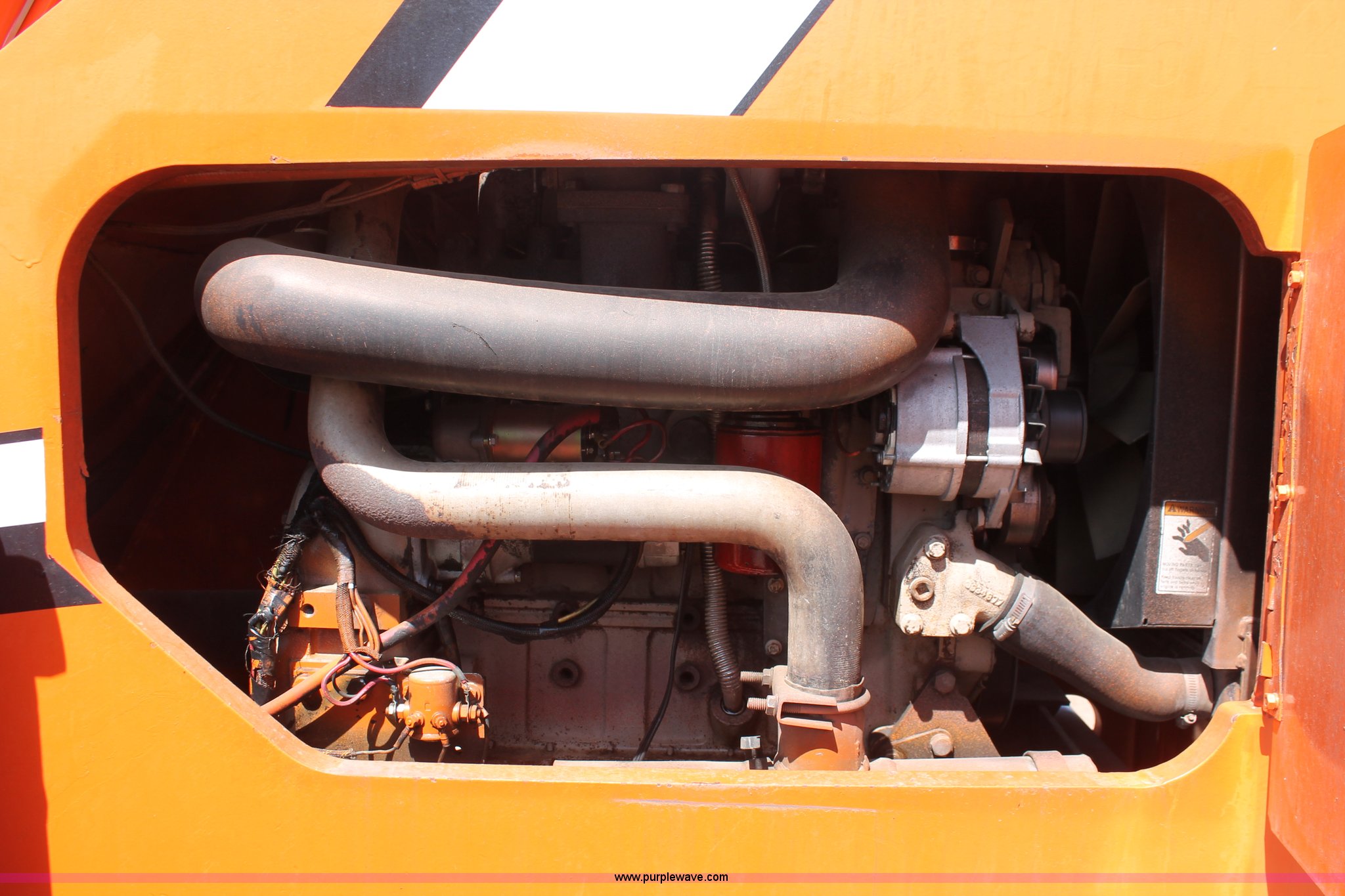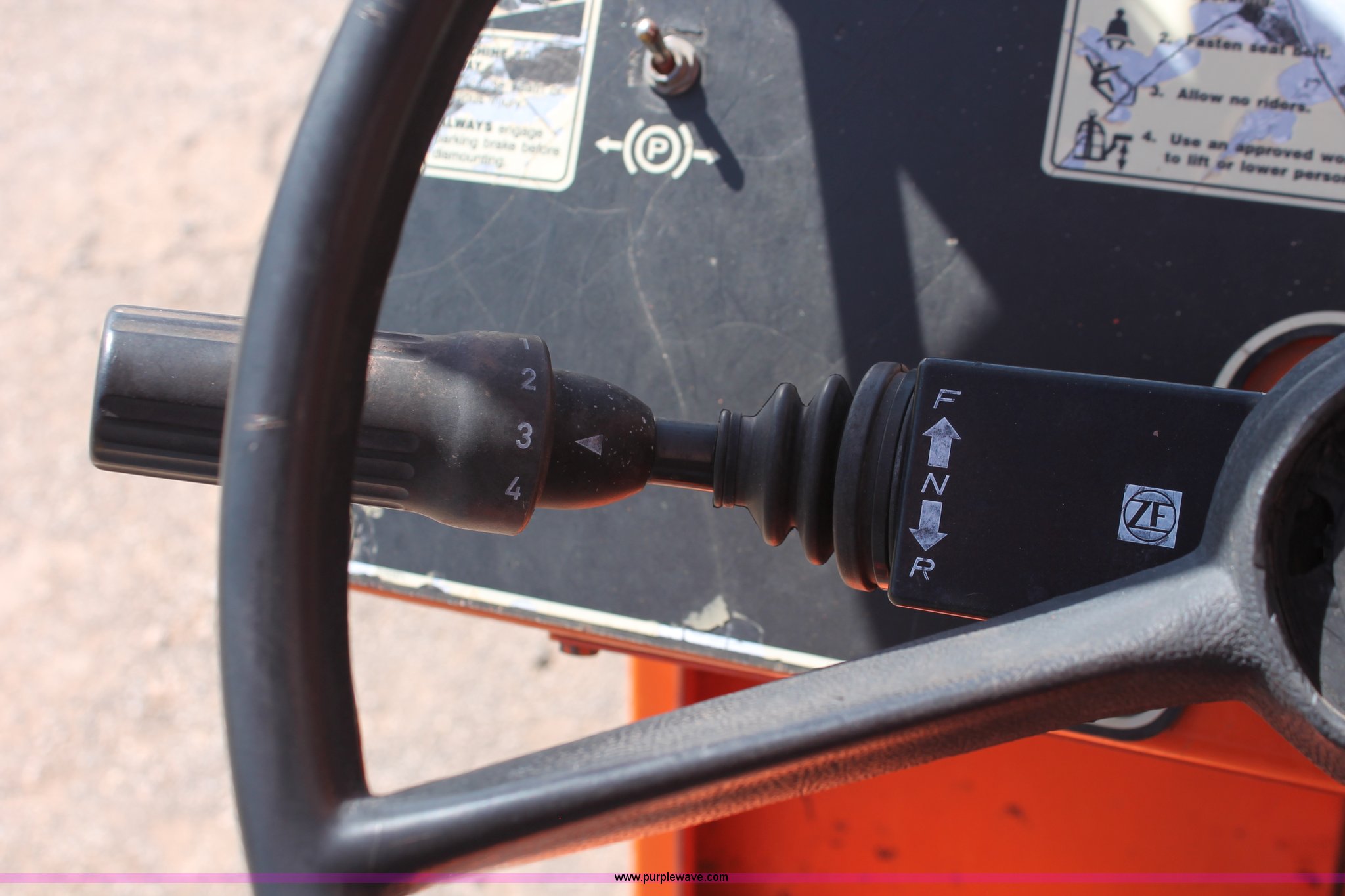 Purple Wave is selling a used Telehandler in Oklahoma. This item is a 1999 SkyTrack 10542 telehandler with the following: 7,258 hours on meter, Cummins B3.9 four cylinder diesel engine, 116 HP, Serial 45889332, Powershift transmission, 4F-4R gears, Four wheel drive, Locking differential, Circle steer, Crab steer, ROPS, Spring suspension seat, Work light, 10,000 lbs maximum lift capacity, 42' maximum lift height, Four boom sections, 48"L x 4.5"W forks, Hydraulic outriggers, Tilt carriage, Rotating carriage, Hydraulic leveling, Quick attach, Michelin 17.5R25 tires, Three tires foam filled, 27,300 lbs. base operating weight, Skytrak 10054 graphics, Serial 10740