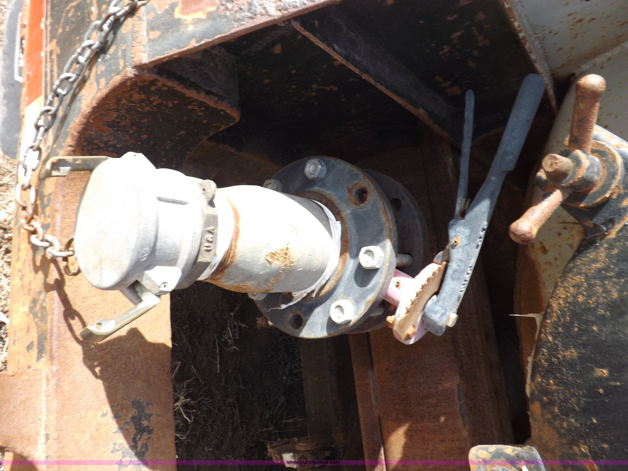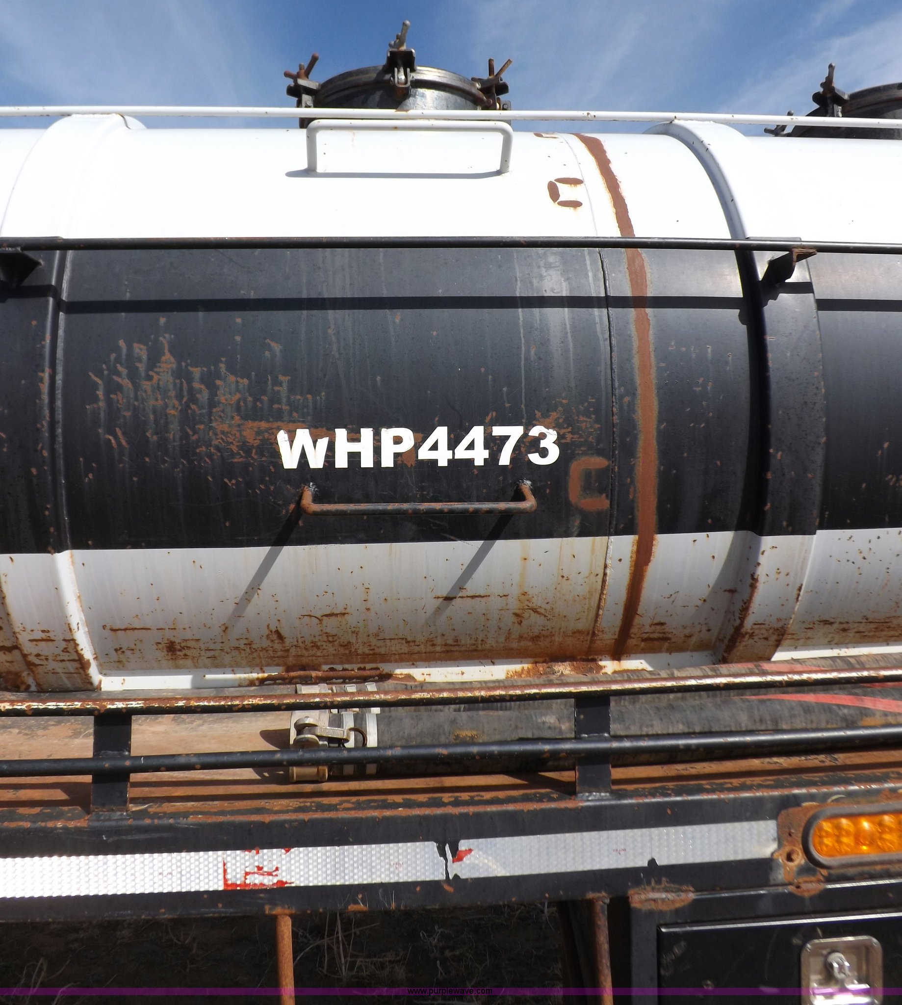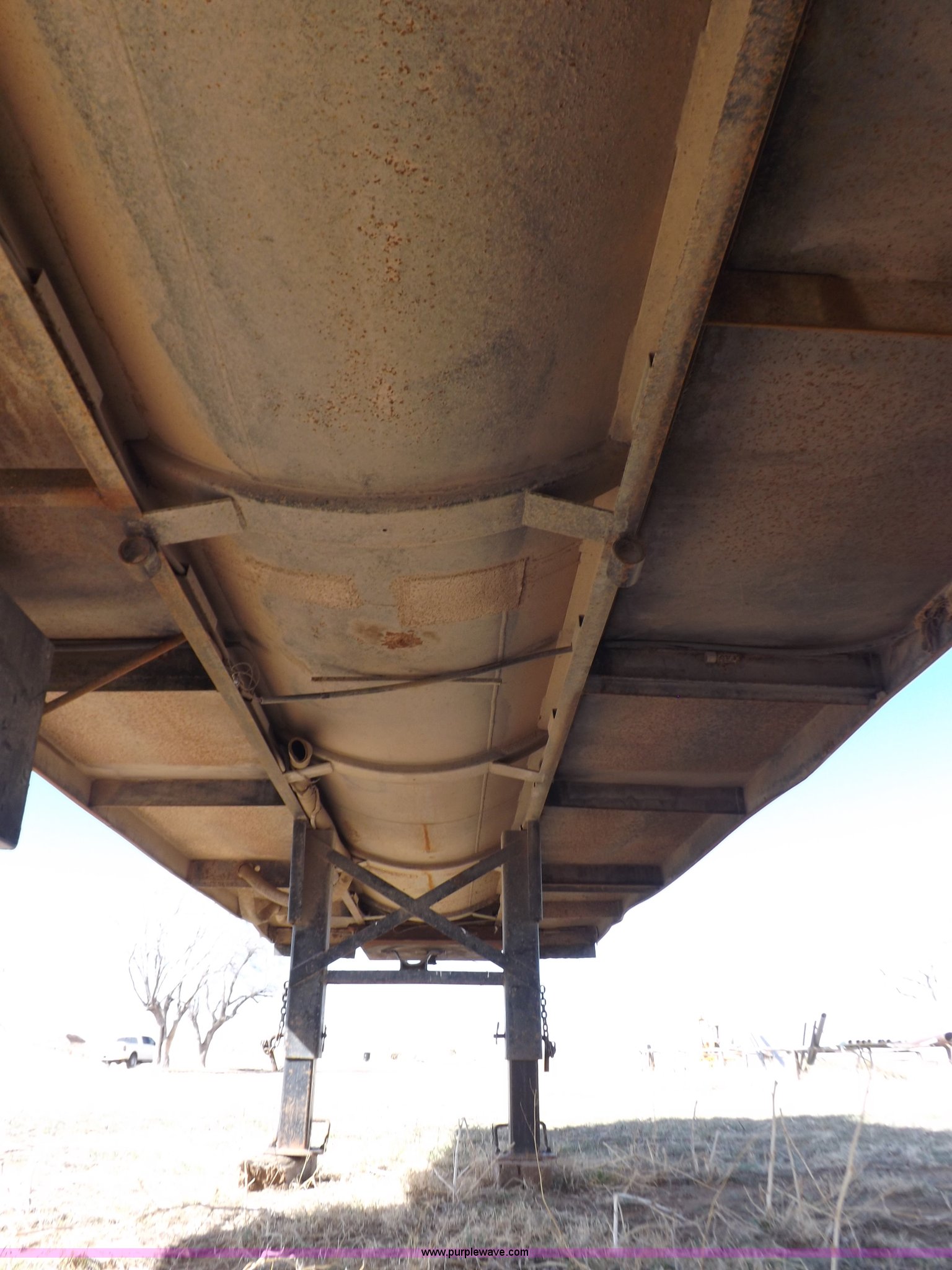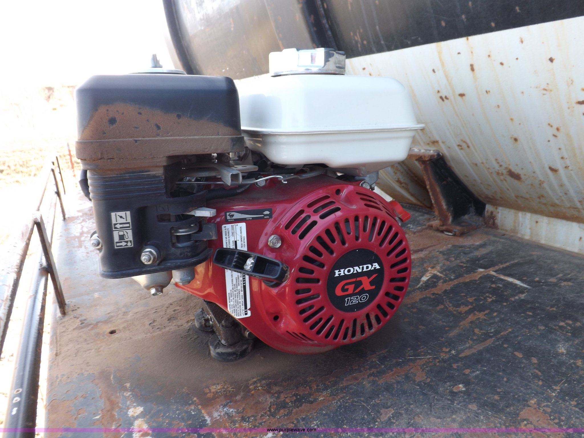 Purple Wave is selling a used Tank Trailer in Oklahoma. This item is a 1981 shop built barrel trailer with the following: 40'L x 8'W x 10'4"H, (5) 21" top man ways, Full length walk ways, Full length fenders, Rear 21" man way, (2) Buterfly valves with outlets, 4" reduced to 3", Rear work lights, Non-operational, Ground cable, Rear tow ring, LED lighting, Koshin centrifugal pump, Honda GX 120 gas engine, Pump plumbed to rear of trailer, Approximately 50'3" vacuum hose, Sight glass, 24"W x 18"D x 18"H storage box, Pin up landing gear, Spring suspension, Air brakes, 11R24.5 tires, Tank leaks, (2) flat tires, Rust