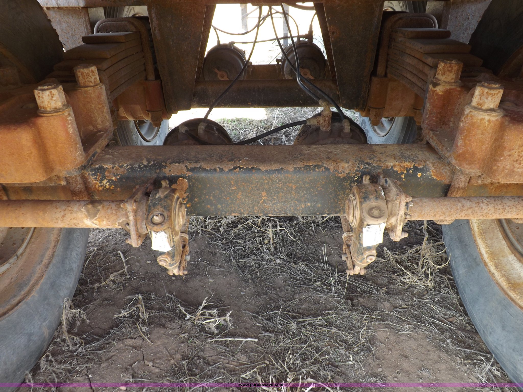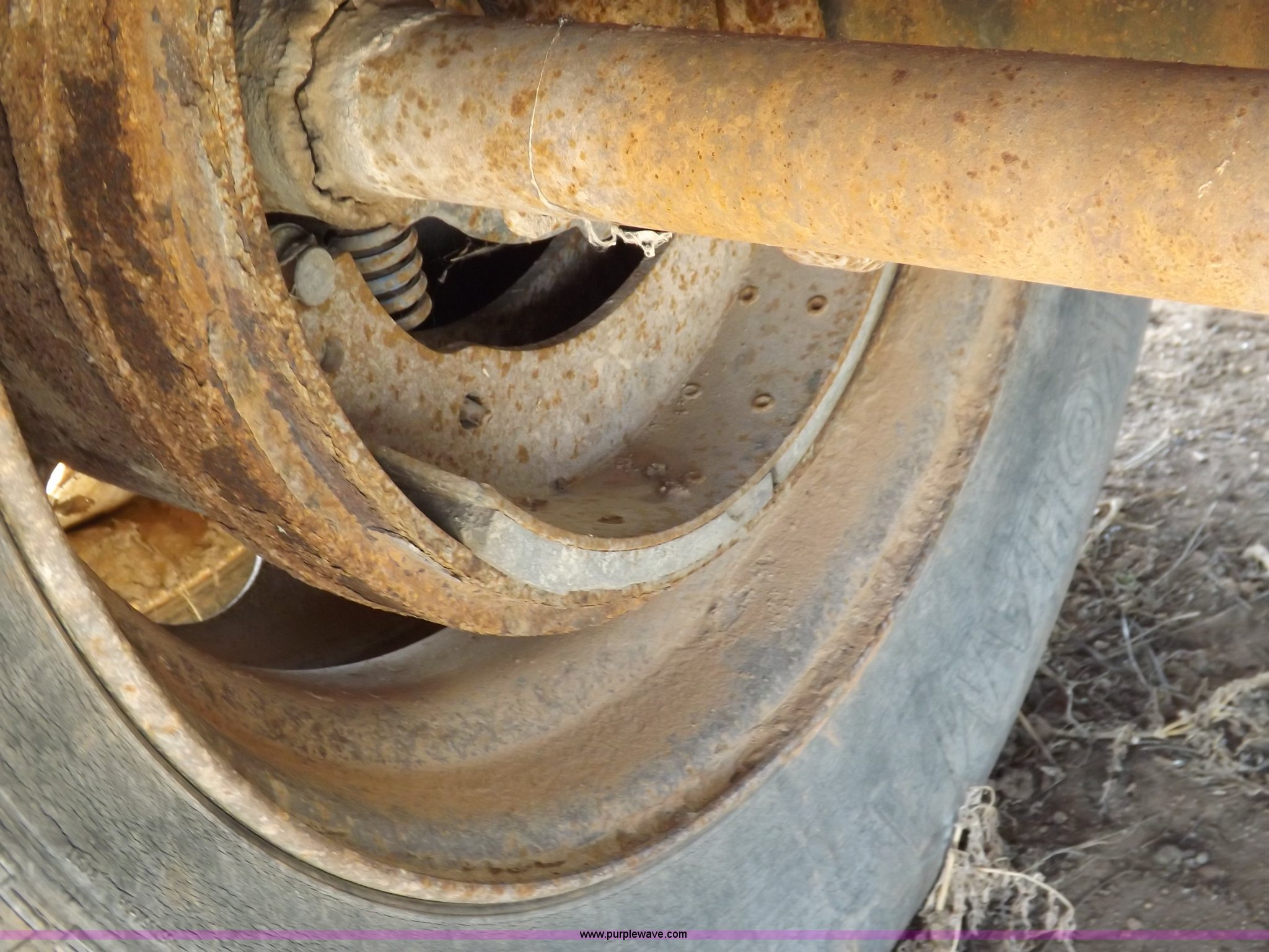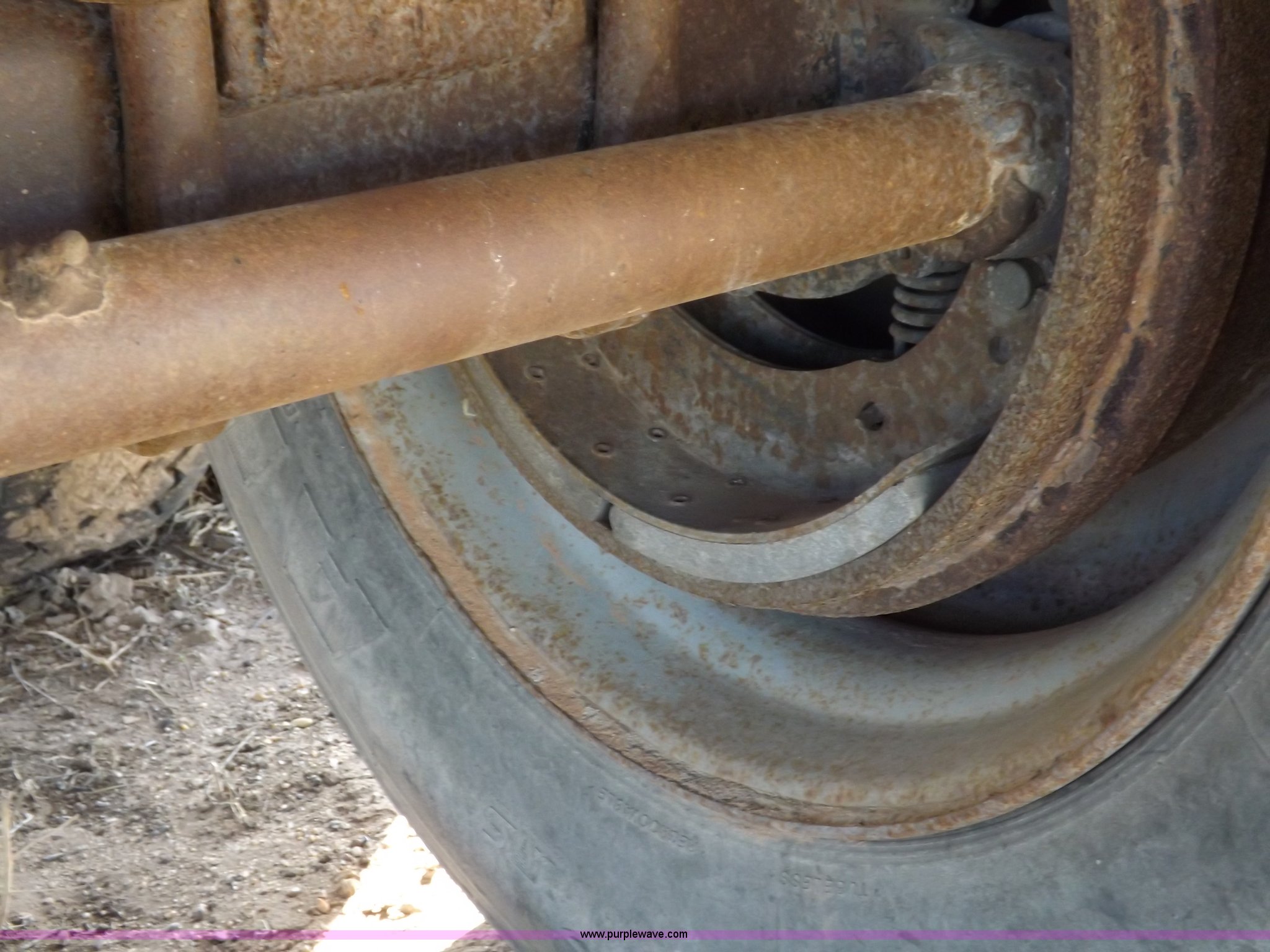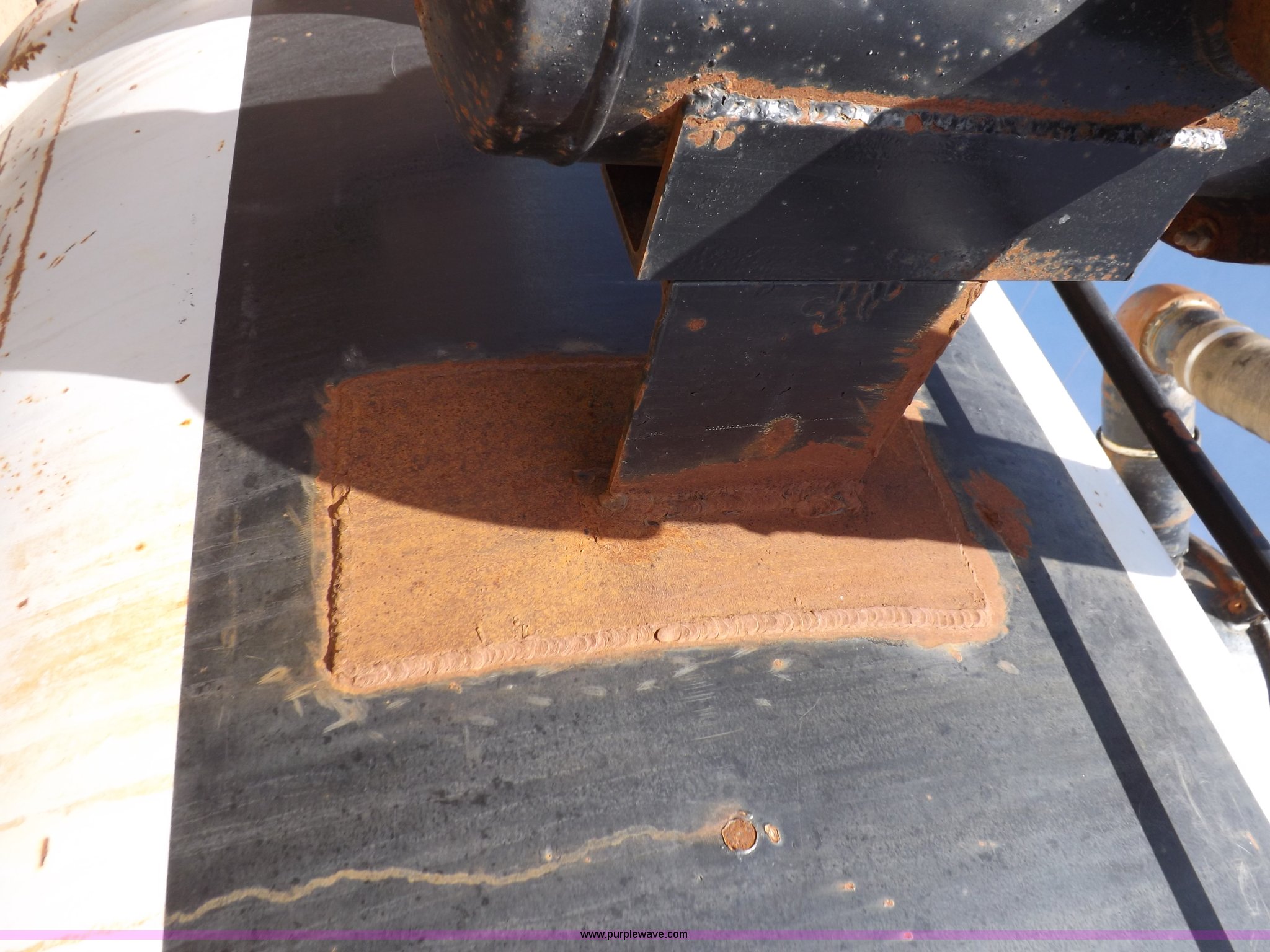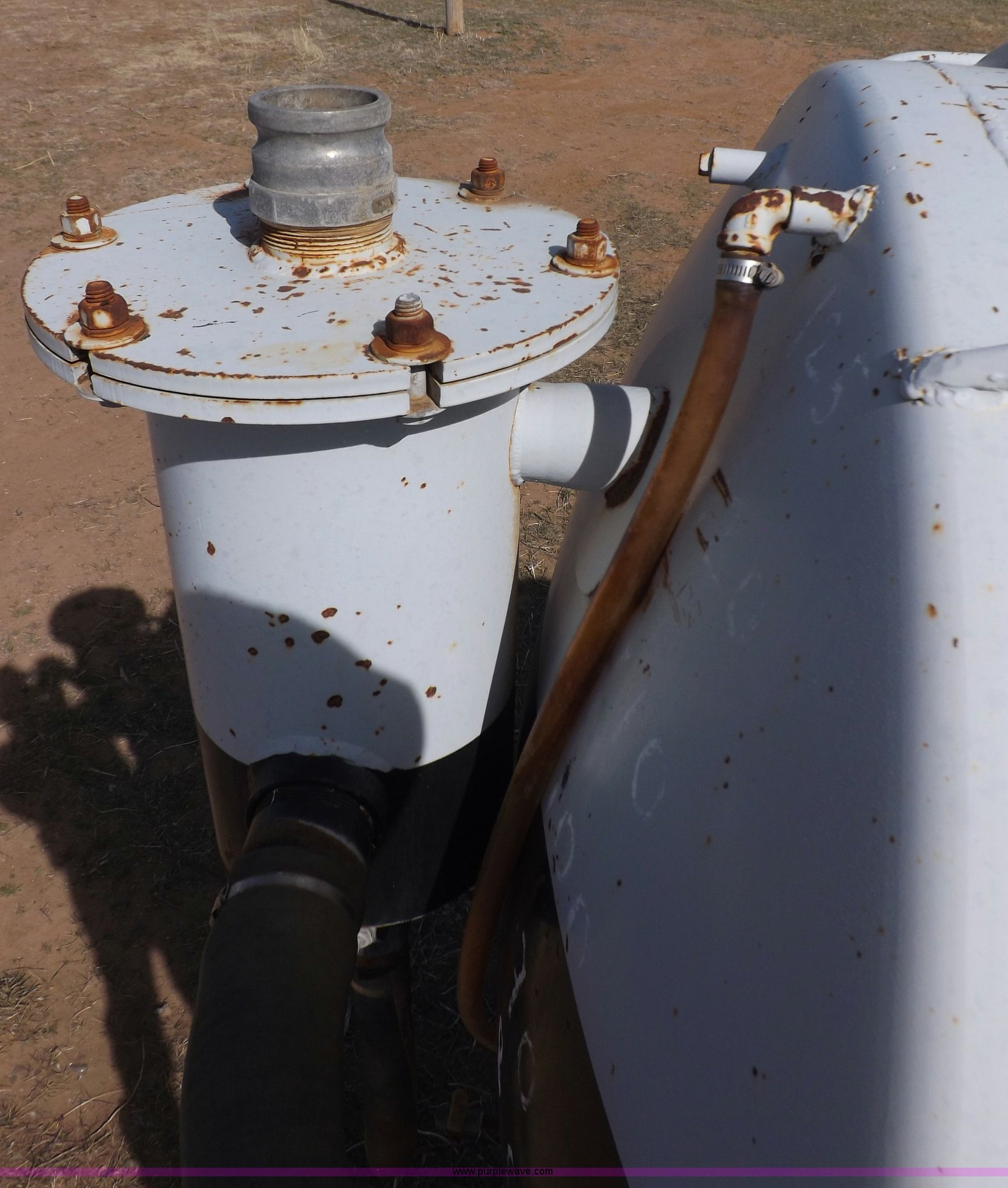 Purple Wave is selling a used Tank Trailer in Oklahoma. This item is a 1981 shop built barrel trailer with the following: 40'L x 8'W x 10'4"H, (5) 21" top man ways, Full length walk ways, Full length fenders, Rear 21" man way, (2) Buterfly valves with outlets, 4" reduced to 3", Rear work lights, Non-operational, Ground cable, Rear tow ring, LED lighting, Koshin centrifugal pump, Honda GX 120 gas engine, Pump plumbed to rear of trailer, Approximately 50'3" vacuum hose, Sight glass, 24"W x 18"D x 18"H storage box, Pin up landing gear, Spring suspension, Air brakes, 11R24.5 tires, Tank leaks, (2) flat tires, Rust