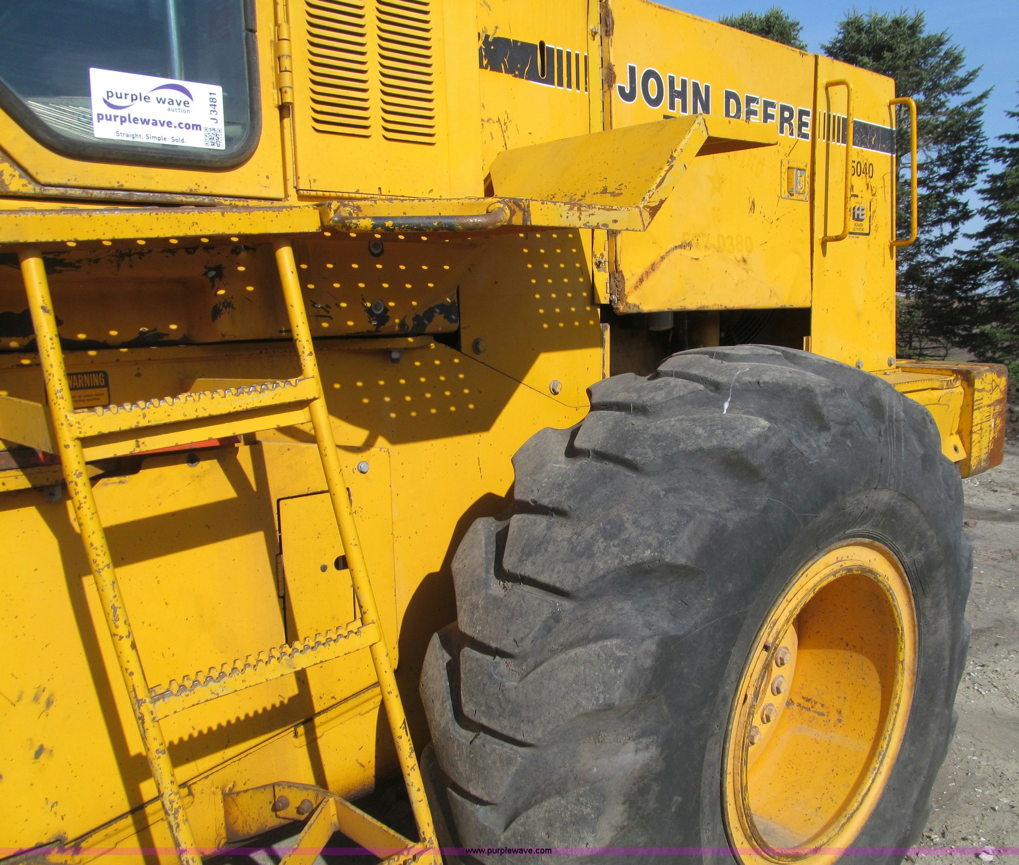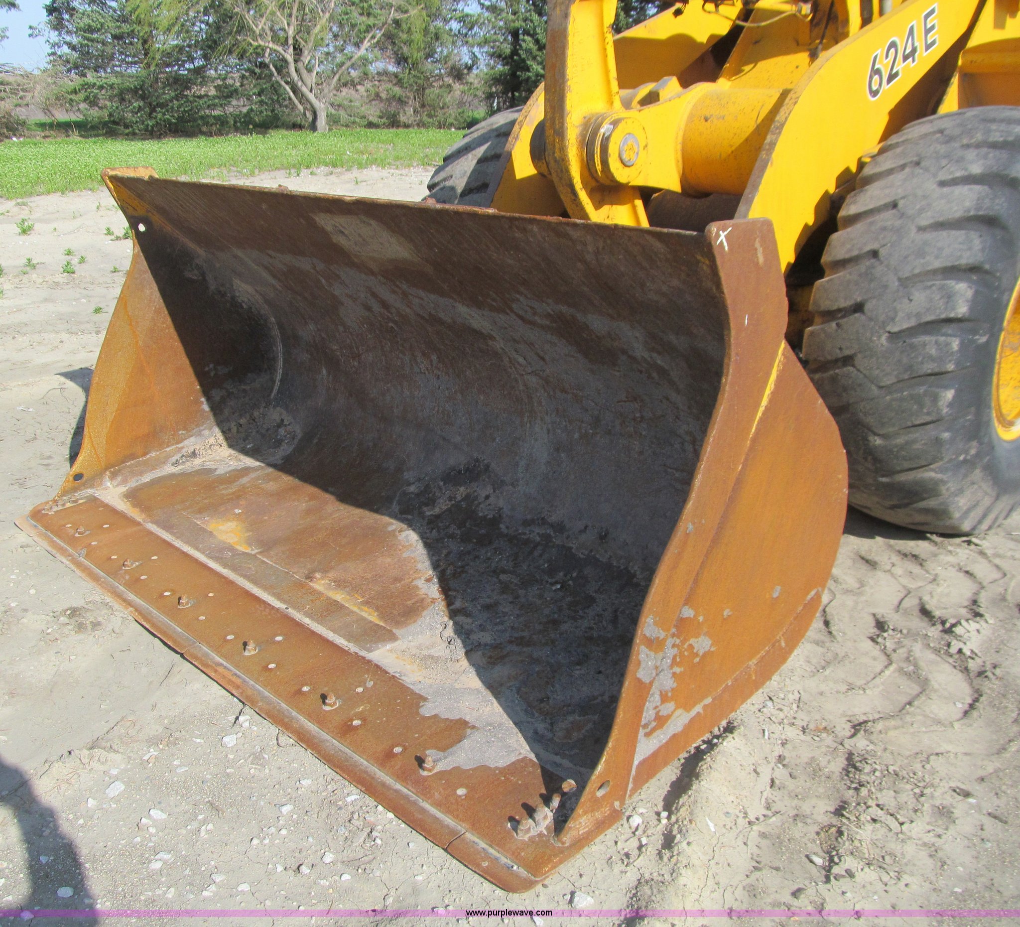 Purple Wave is selling a used Wheel Loader in Iowa. This item is a 1992 John Deere 624E wheel loader with the following: 12,580 hours on meter, John Deere 6068TD six cylinder turbo diesel engine, Serial 106068T365672, Powershift transmission, 4F-4R gears, Enclosed cab, Heat, Front and rear work lights, Single lever joystick bucket control, Vinyl suspension seat, Front and rear windshield wipers, Tilt steering wheel, Rear view mirror, Amber rotating beacon, General purpose 101"W bucket, Bolt-on cutting edge, 3 cu. yd. capacity, Serial AT115862, 20.5x25 tires, Additional rear counter weight group, Serial DW624E536221