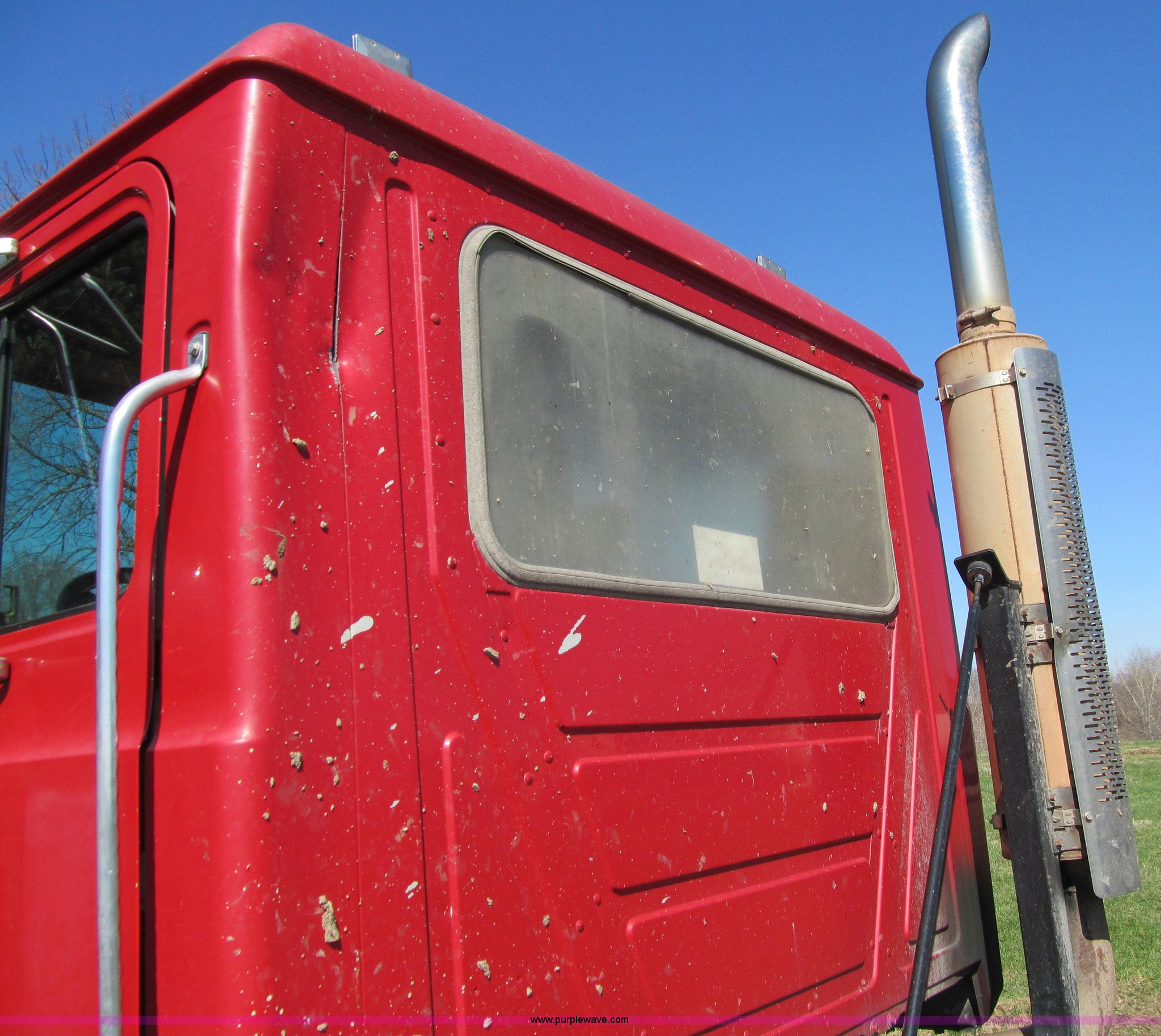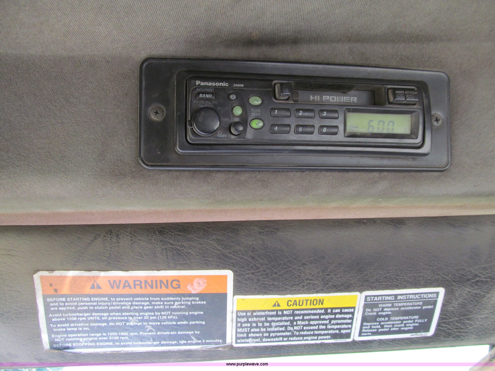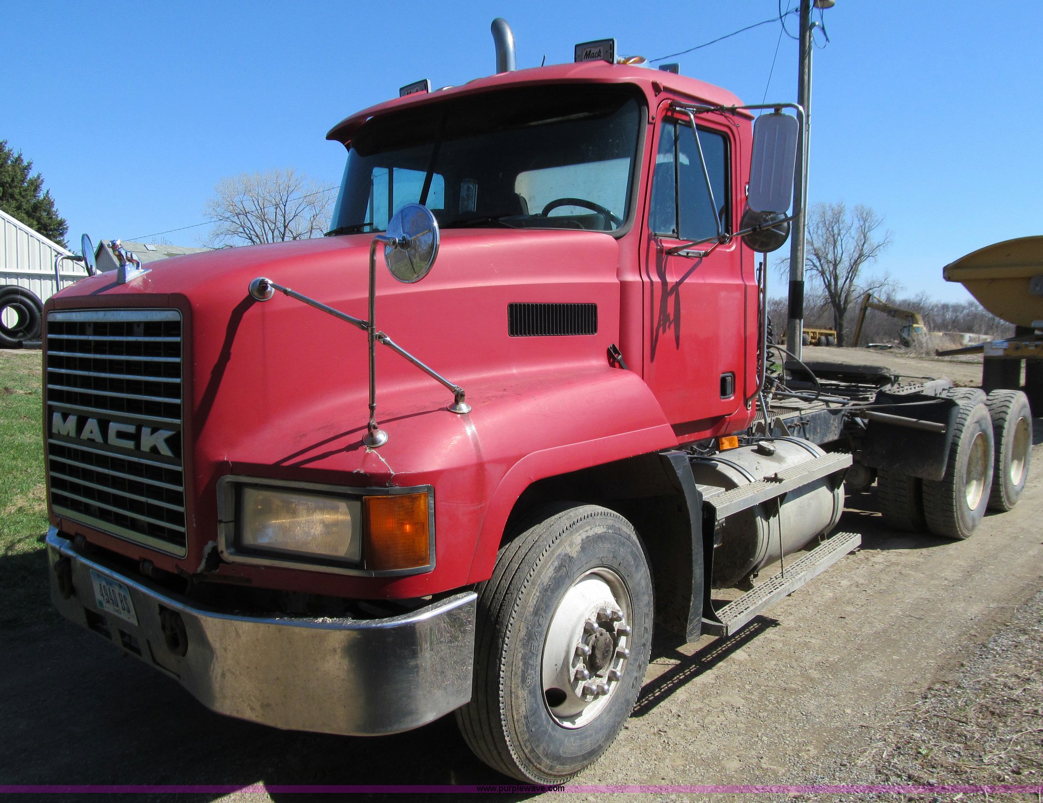 Purple Wave is selling a used Truck Tractor in Iowa. This item is a 1998 Mack CH613 semi truck with the following: 864,033 miles on odometer, Mack E7 12.0L L6 diesel engine, 427 HP, Eaton 13 speed manual transmission, Twin screw, Heat, Tilt, Cruise, AM/FM/cassette, Passenger daylight door, Air suspension seat, Passenger power window, Visor, Stainless steel bumper, Block heater, Dual 90 gallon fuel tanks, Single rear exhaust stack, Aluminum deck plate, Quarter fenders, One plastic, One stainless steel, PTO, Wet kit, Dump valves, Air suspension, Air brakes, Brake controller, Jake brake, 220" wheelbase, 11R22.5 tires, Front bumper damage, Left rear cab sheet metal damage, Rear cab window is plexiglass, Driver's seat worn