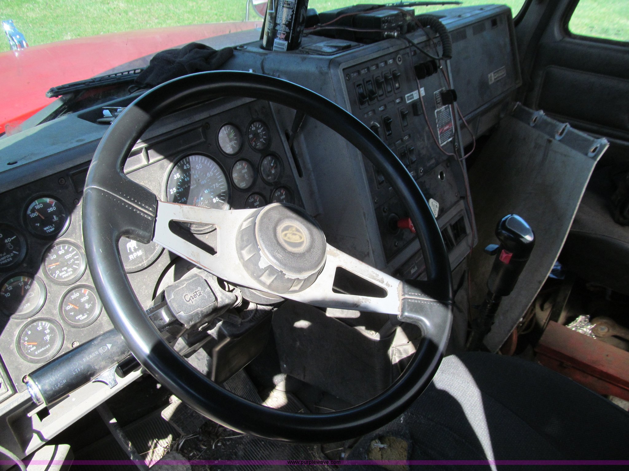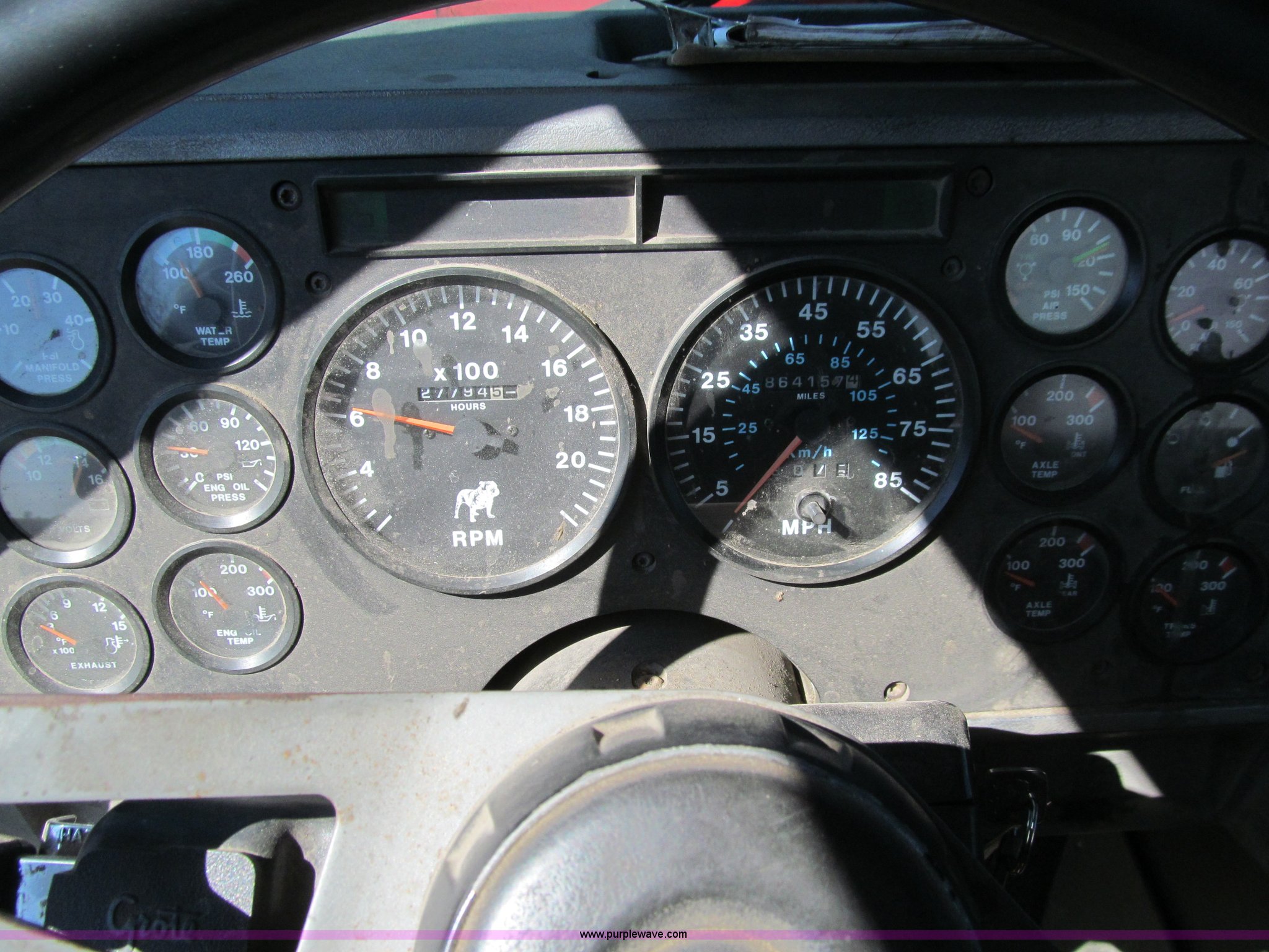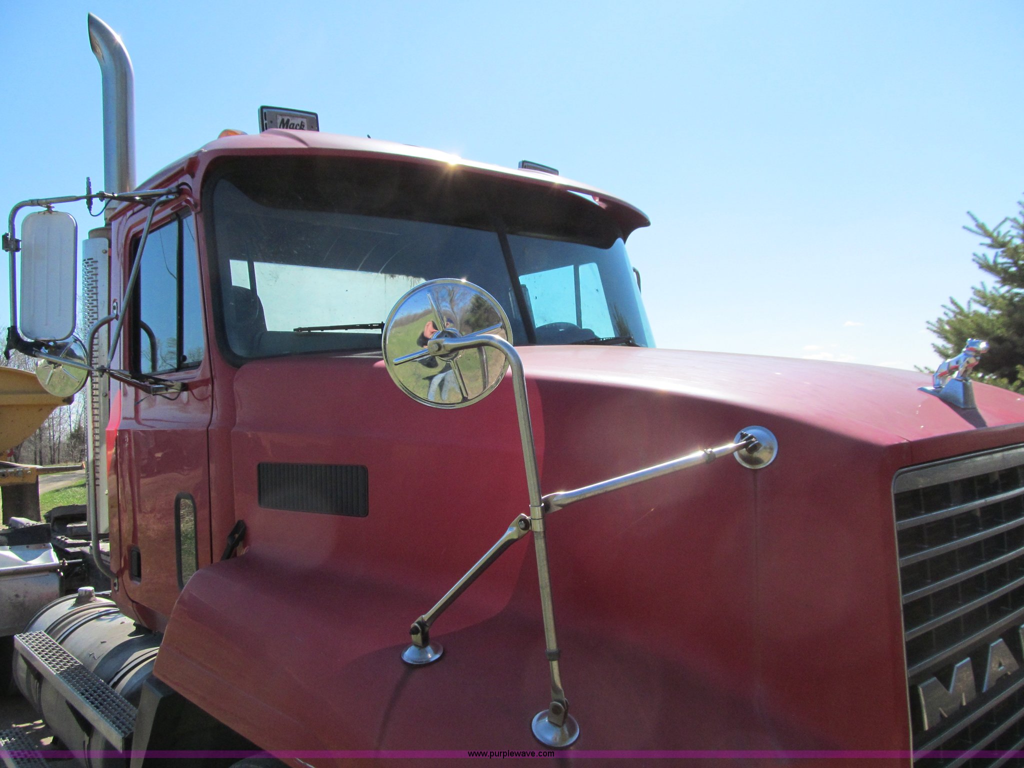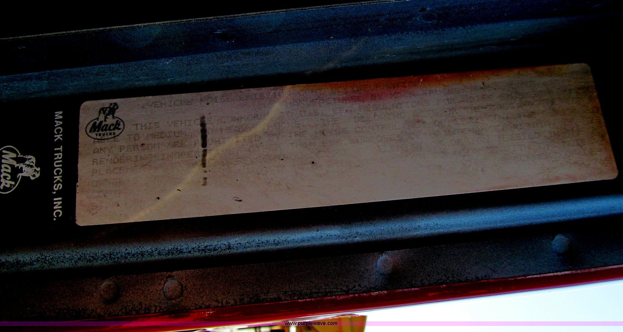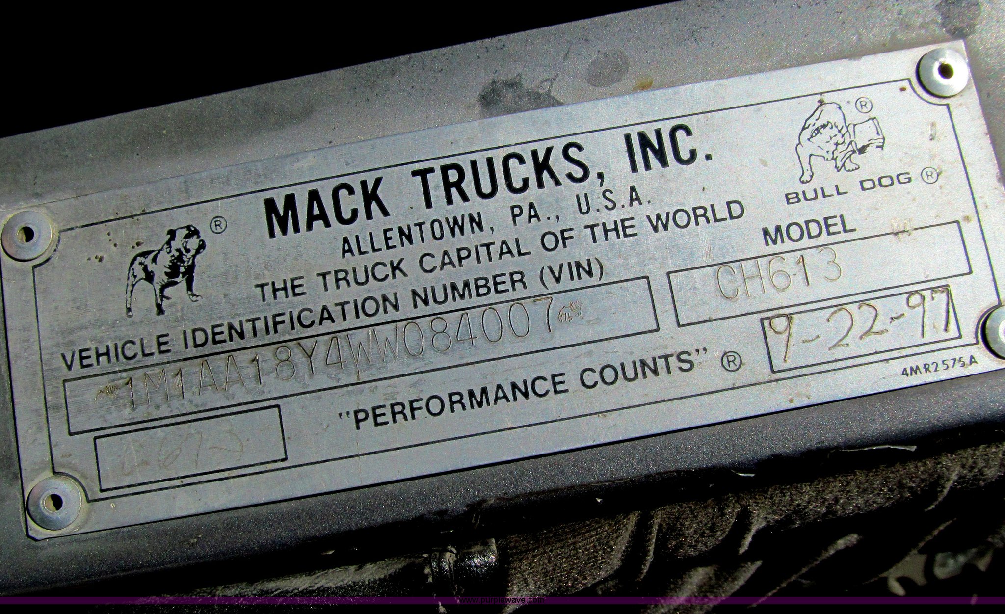 1998 Mack CH613 semi truck. 864,033 miles on odometer, Mack E7 12.0L L6 diesel engine 427 HP, Eaton 13 speed manual transmission, Twin screw, Heat, Tilt, Cruise, AM/FM/cassette, Passenger daylight door, Air suspension seat, Passenger power window, Visor, Stainless steel bumper, Block heater, Dual 90 gallon fuel tanks, Single rear exhaust stack, Aluminum deck plate, Quarter fenders One plastic, One stainless steel, PTO, Wet kit, Dump valves, Air suspension, Air brakes, Brake controller, Jake brake, 220" wheelbase, 11R22.5 tires, Front bumper damage, Left rear cab sheet metal damage, Rear cab window is plexiglass, Driver's seat worn. 1M1AA18Y4WW084007. View equipment video. Kemp & Son, Inc.. 13735 175th St. Letts, IA 52754