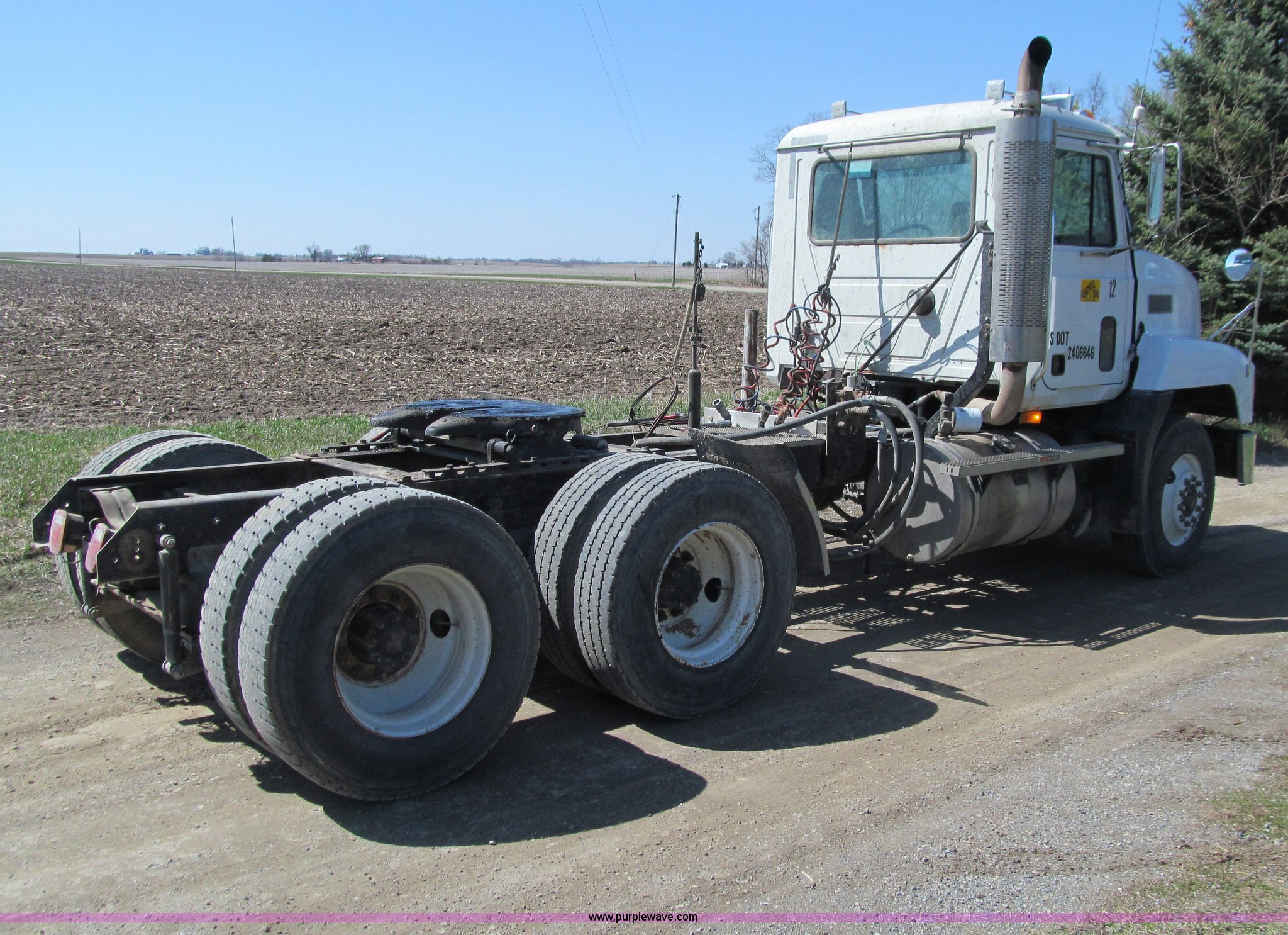 Purple Wave is selling a used Truck Tractor in Iowa. This item is a 1996 Mack CH613 semi truck with the following: 209,353 miles on odometer, Not actual mileage, Mack E7 12.0L L6 diesel engine, 350 HP, Maxitorque T2090 nine speed manual transmission, Twin screw, AC and heat, Tilt, Cruise, AM/FM/cassette, Passenger daylight door, Air suspension seat, Visor, Stainless steel bumper, Block heater, 97 gallon fuel tank, Single rear exhaust stack, Aluminum deck plate, Stainless steel quarter fenders, Wet kit, Dump valves, Air suspension, Air brakes, Jake brake, 188" wheelbase, 11R22.5 tires, GVWR 50,000 lbs, FAWR 12,000 lbs, IAWR 19,000 lbs, RAWR 19,000 lbs, Bumper bent