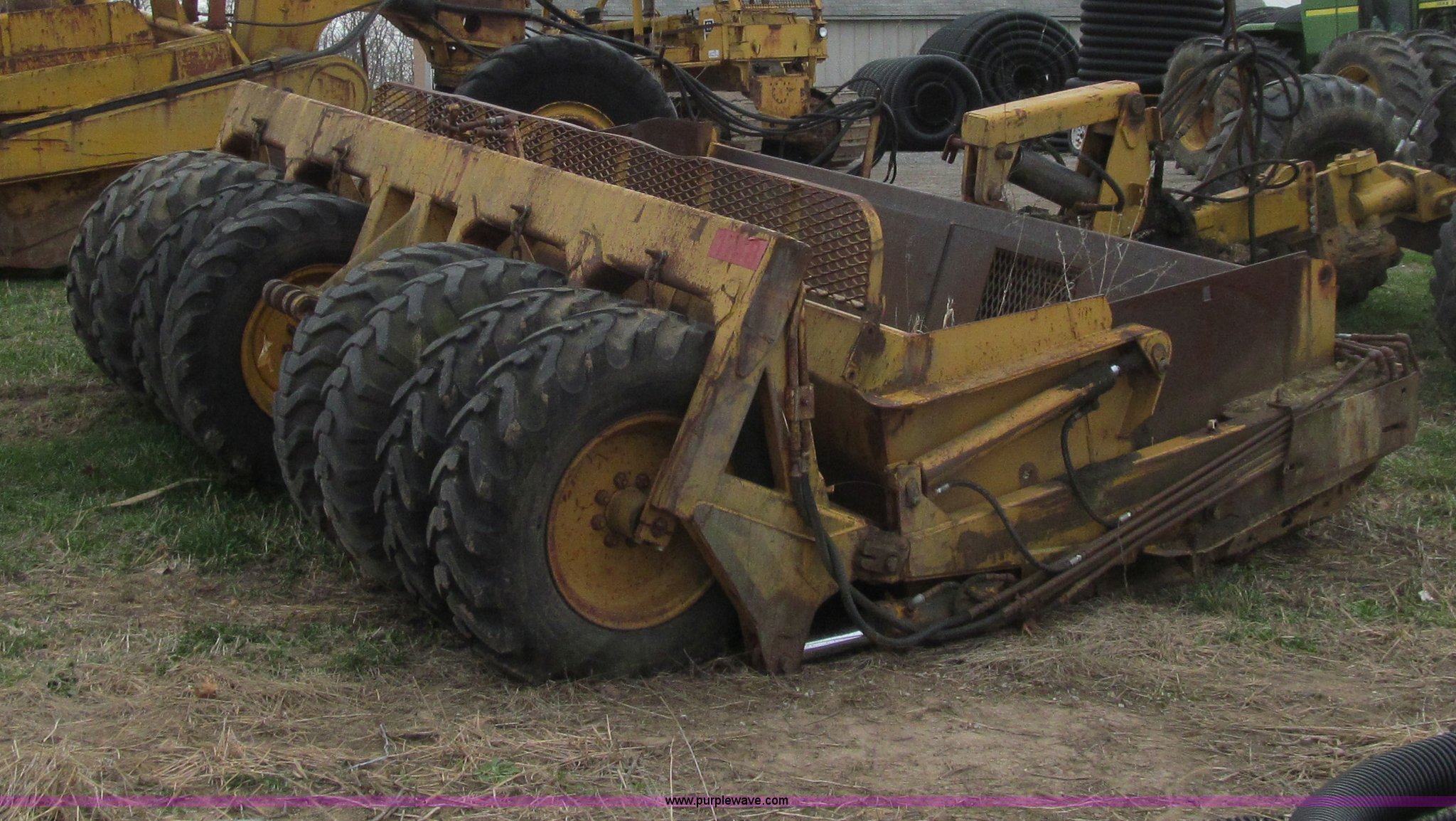 Purple Wave is selling a used Pull Type Scraper in Iowa. This item is a Reynolds 14/14 hydraulic pull scraper with the following: Rear of bowl lined, (2) hydraulic circuits to rear, (8) 13.00 x 24 tires, Forward tow dolly is not included, Tongue and rear of bowl welded, Serial 26924