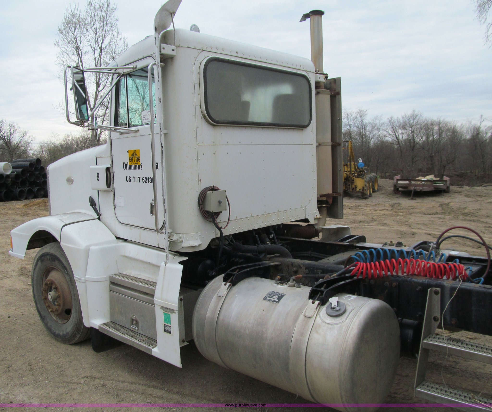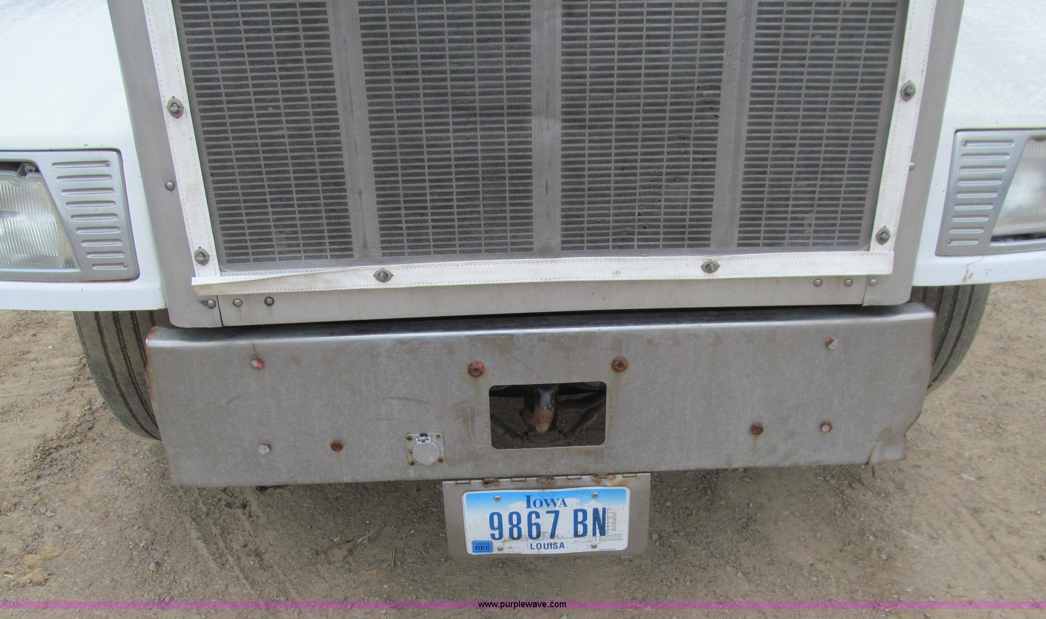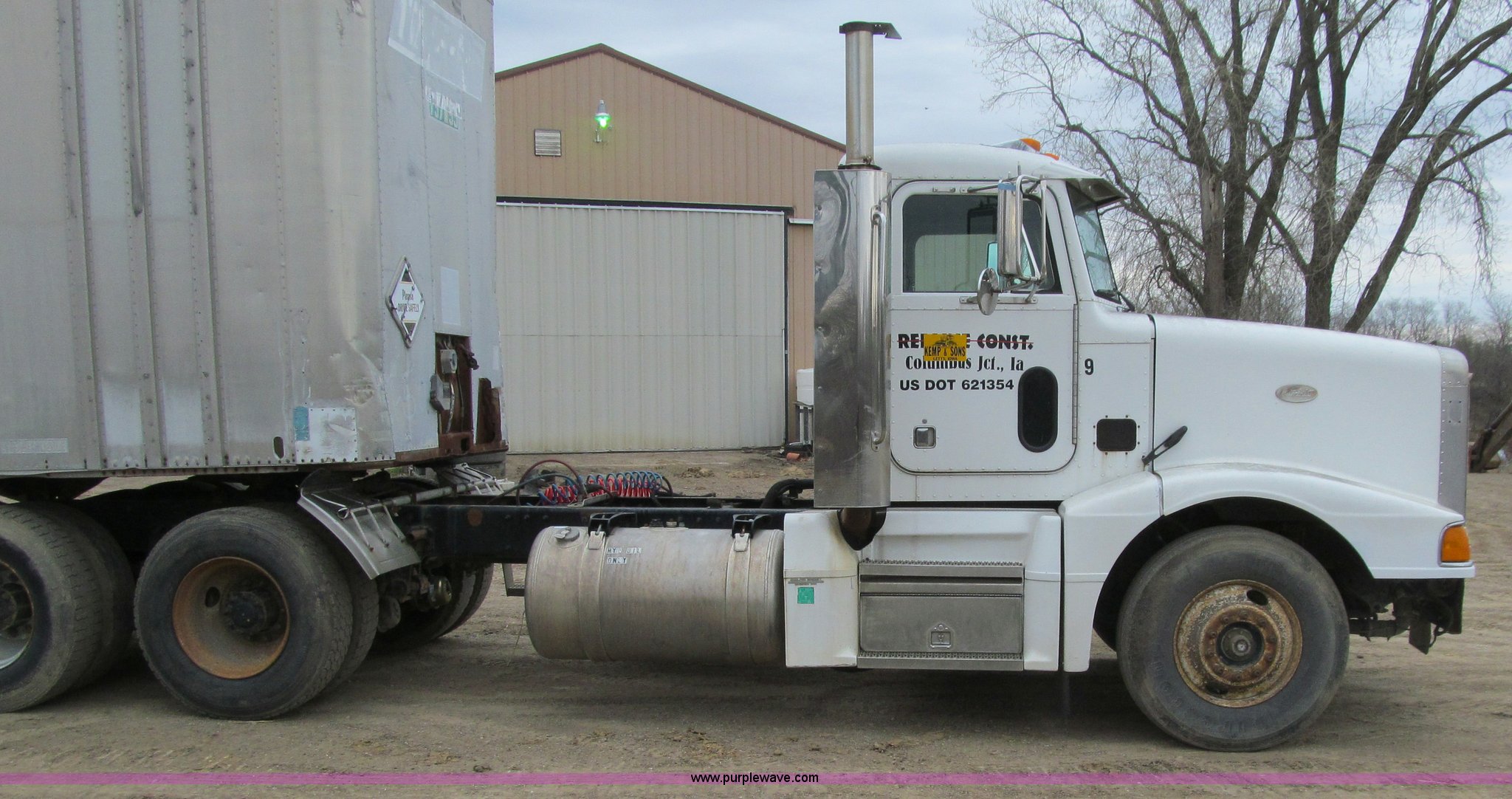 Purple Wave is selling a used Truck Tractor in Iowa. This item is a 1996 Peterbilt 377 semi truck with the following: 647,842 miles on odometer, Caterpillar 3176 10.3L L6 turbo diesel, 325 HP, Eaton Fuller 10 speed manual transmission, AC and heat, AM/FM/cassette, Tilt, Cruise, Passenger daylight door, Telescoping steering wheel, Heated mirrors, Dual air suspension seats, Dump valves, Exterior visor, Block heater, Cab extender, 110 gallon fuel tank, Passenger side hydraulic tank, Single rear exhaust stack, Air suspension, Air brakes, Brake controller, 214" wheelbase, 315/80R22.5 front tires, 11R22.5 rear tires, GVWR 50,000 lbs, FAWR 12,000 lbs, IAWR 19,000 lbs, Air conditioner compress belt removed, RAWR 19,000 lbs