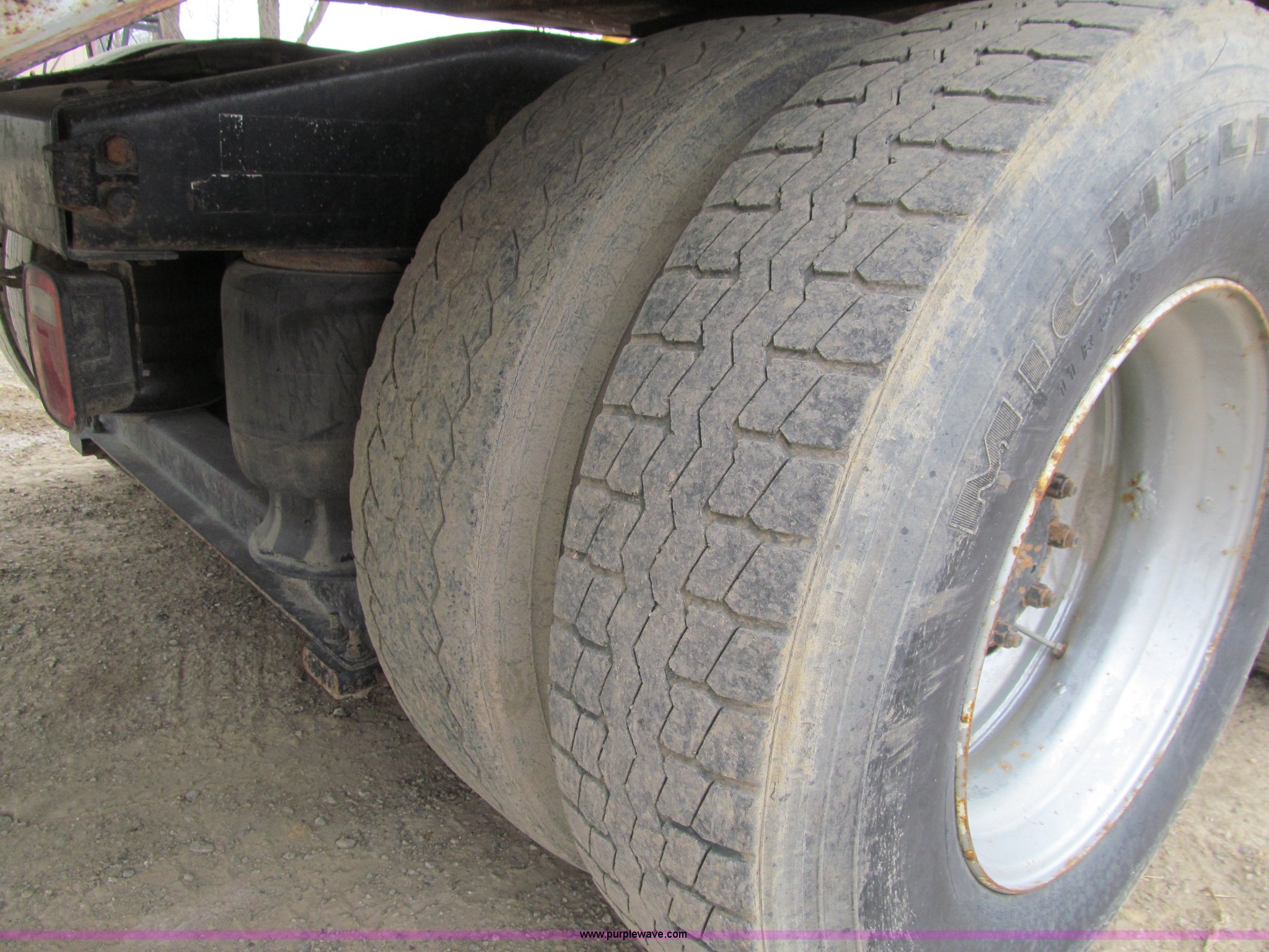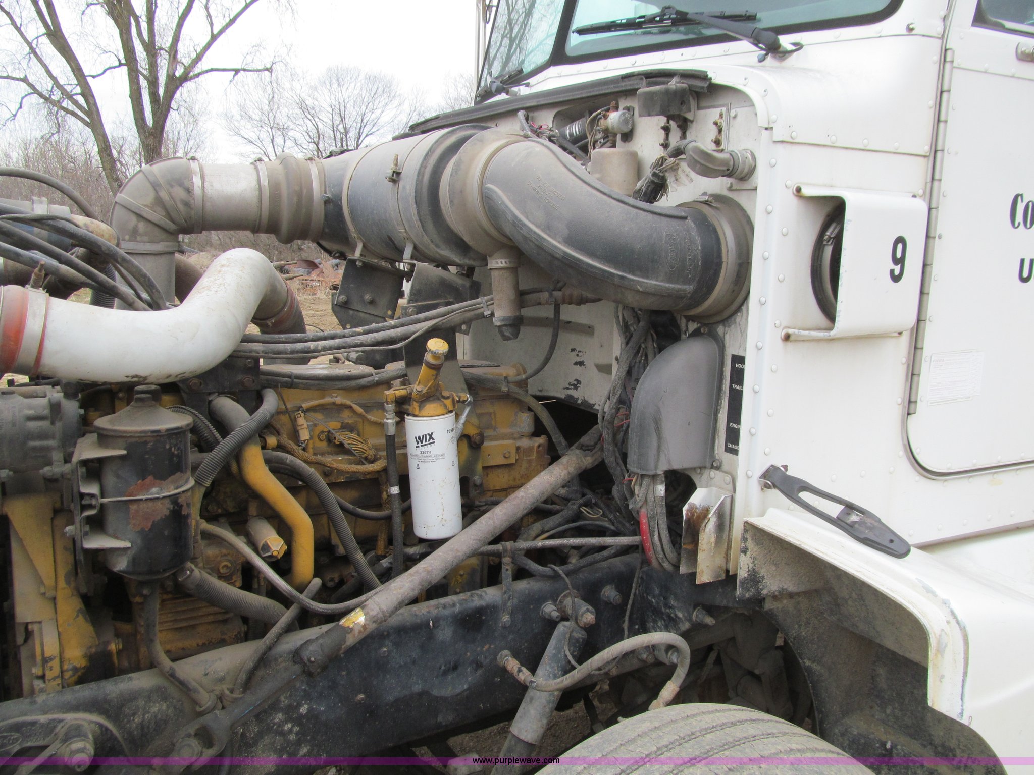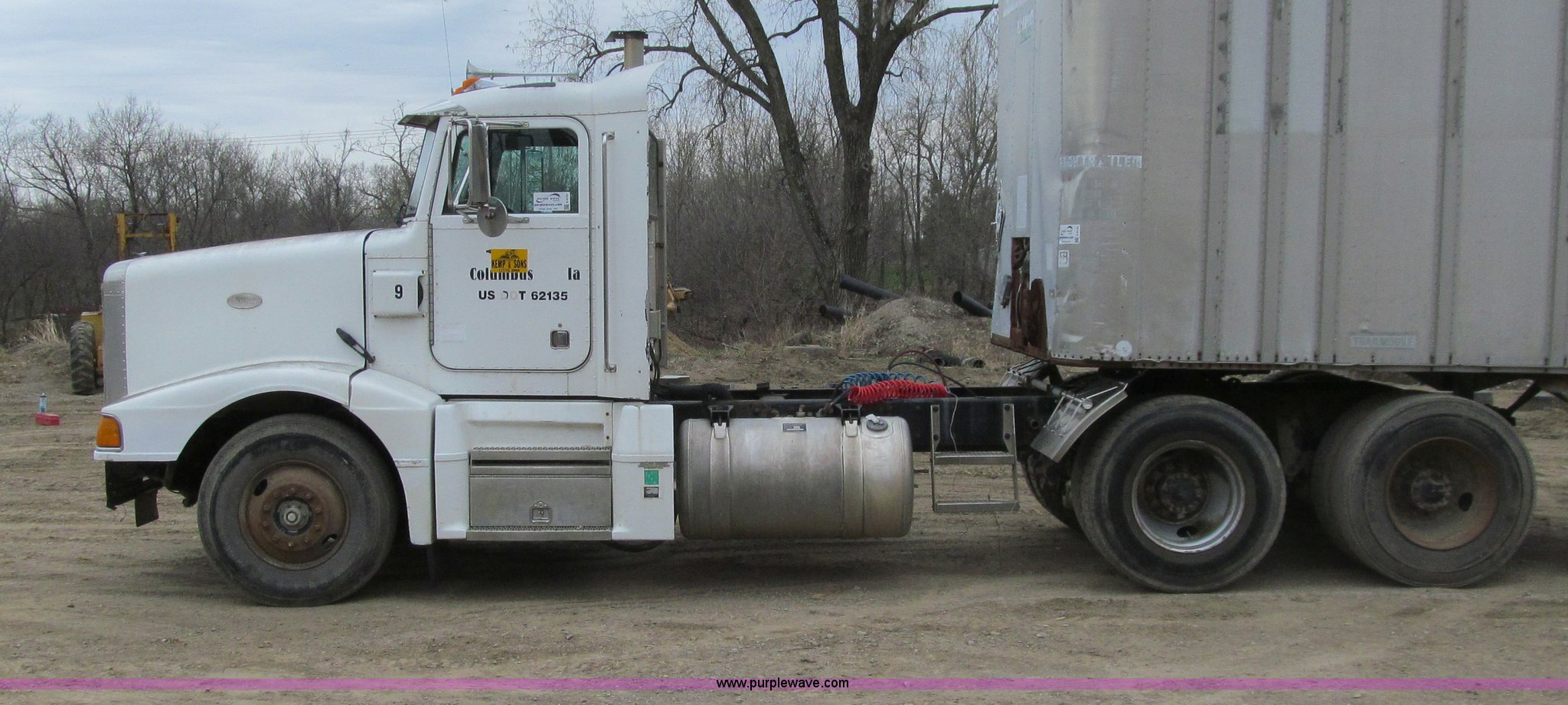 Purple Wave is selling a used Truck Tractor in Iowa. This item is a 1996 Peterbilt 377 semi truck with the following: 647,842 miles on odometer, Caterpillar 3176 10.3L L6 turbo diesel, 325 HP, Eaton Fuller 10 speed manual transmission, AC and heat, AM/FM/cassette, Tilt, Cruise, Passenger daylight door, Telescoping steering wheel, Heated mirrors, Dual air suspension seats, Dump valves, Exterior visor, Block heater, Cab extender, 110 gallon fuel tank, Passenger side hydraulic tank, Single rear exhaust stack, Air suspension, Air brakes, Brake controller, 214" wheelbase, 315/80R22.5 front tires, 11R22.5 rear tires, GVWR 50,000 lbs, FAWR 12,000 lbs, IAWR 19,000 lbs, Air conditioner compress belt removed, RAWR 19,000 lbs