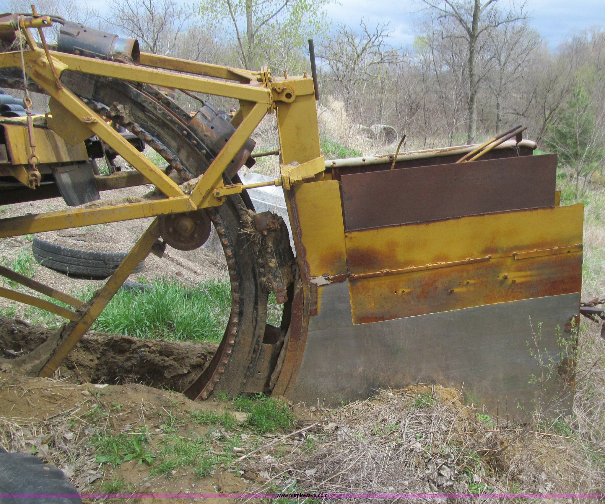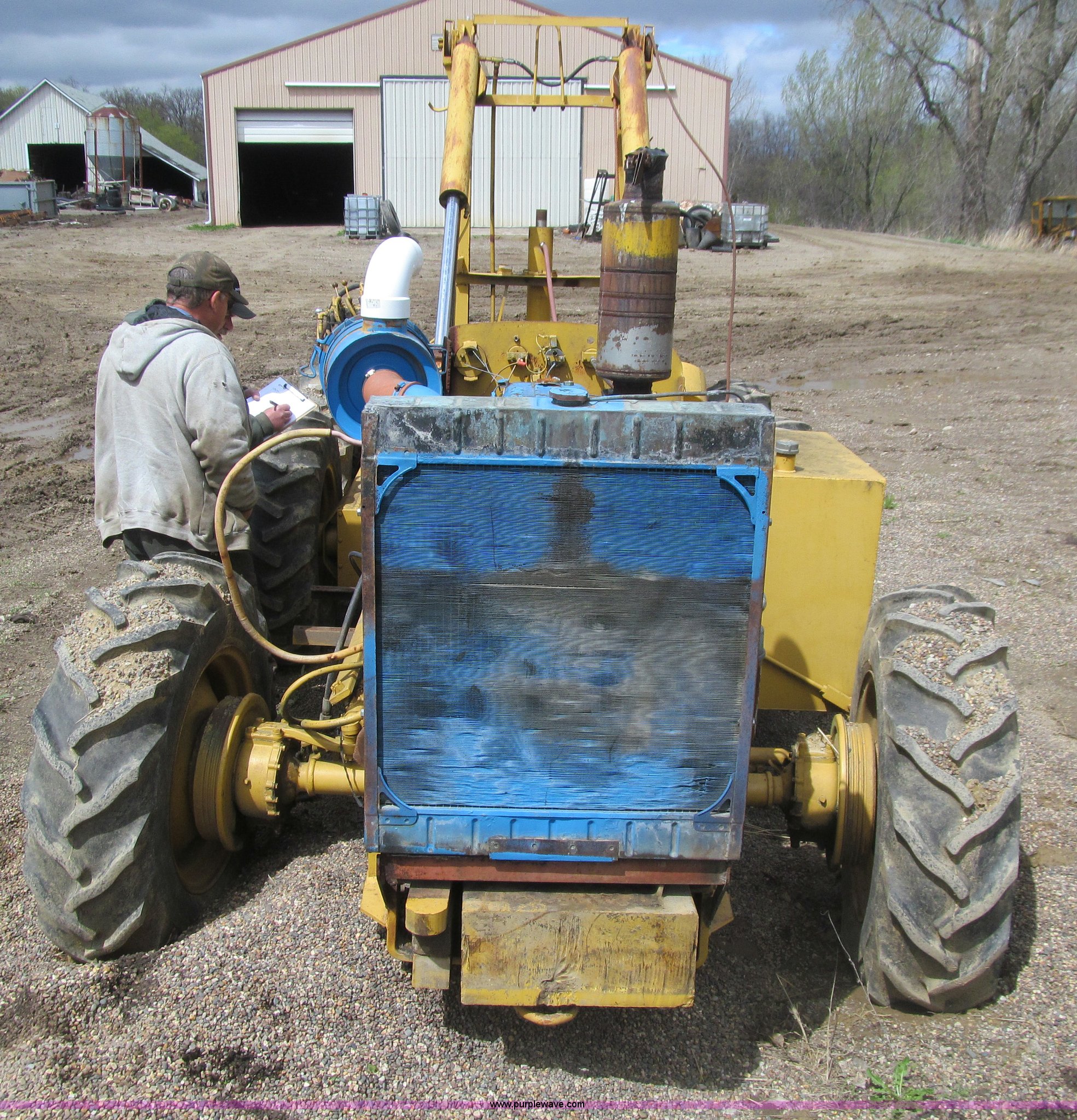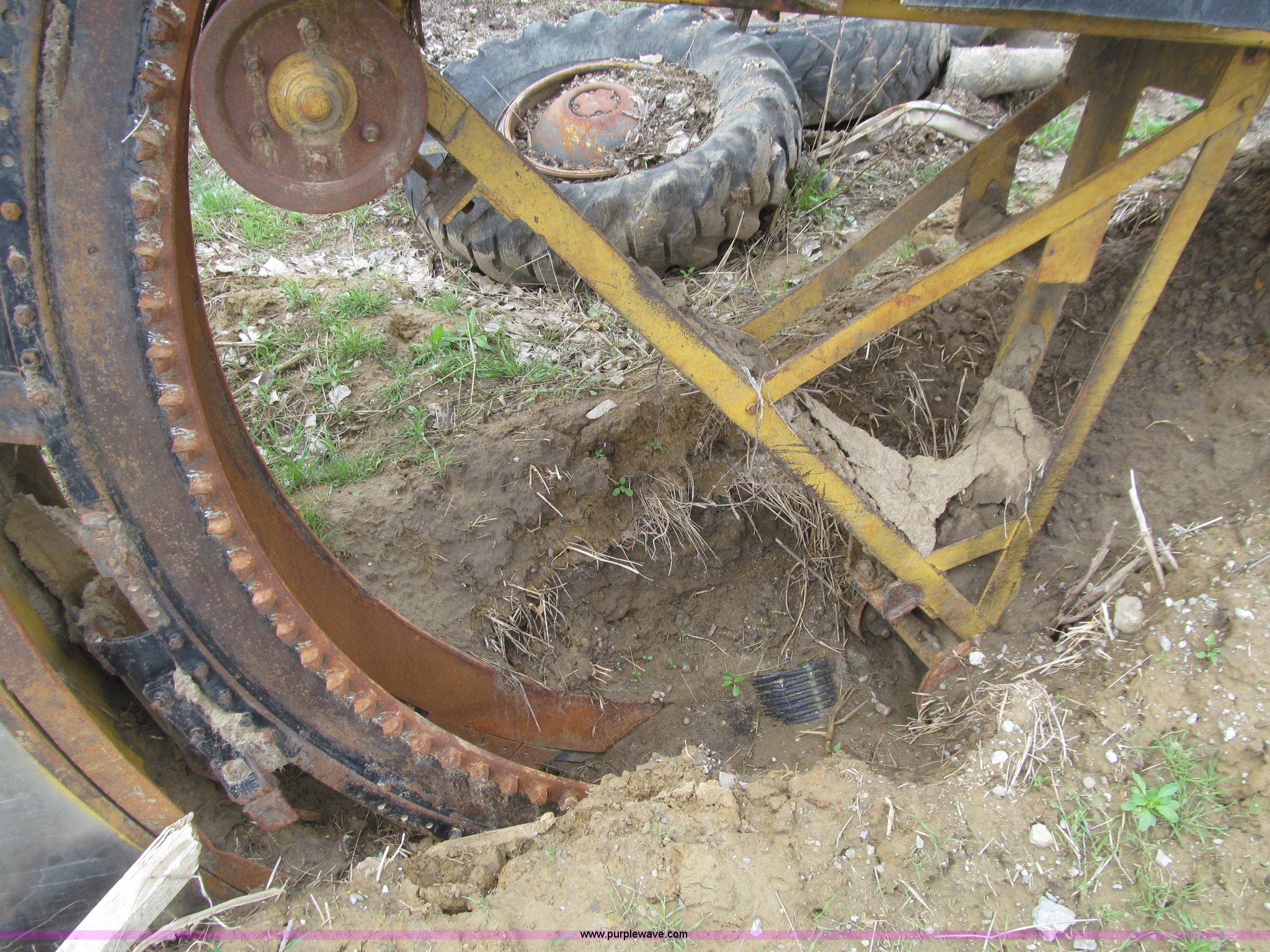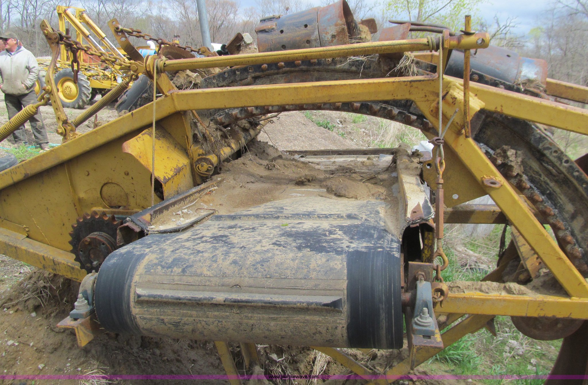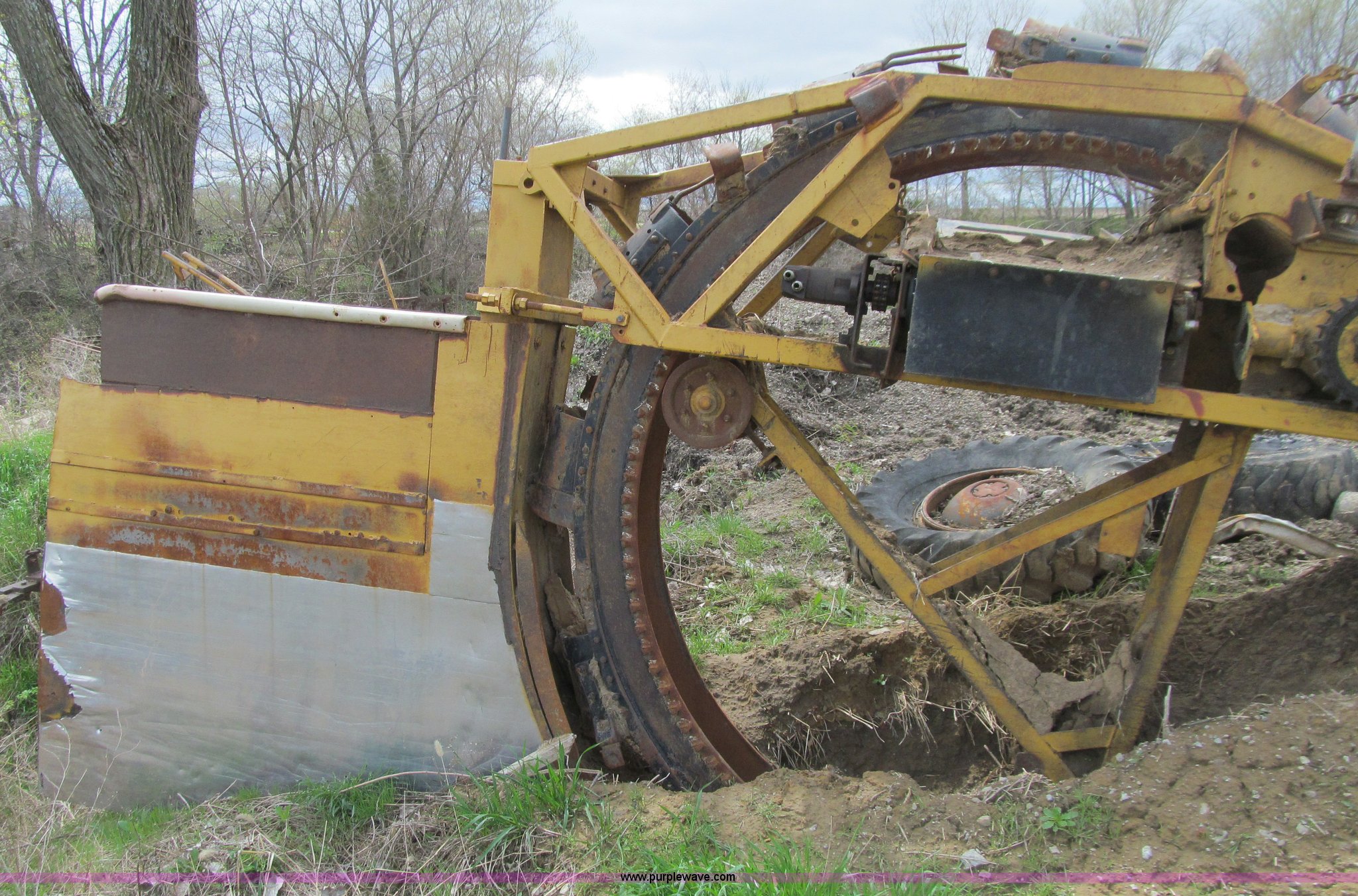 Purple Wave is selling a used Trencher or Rock Saw in Iowa. This item is a Speicher tile trenching machine with the following: Detroit Diesel 453 diesel engine, Transmission removed, but included, Six wheel drive, Transfer case removed, but included, Tandem traction, 9' wheel, 18" cutting width, 24" cross conveyor, 5.5' boot, 15" interior boot width, Serial 65952