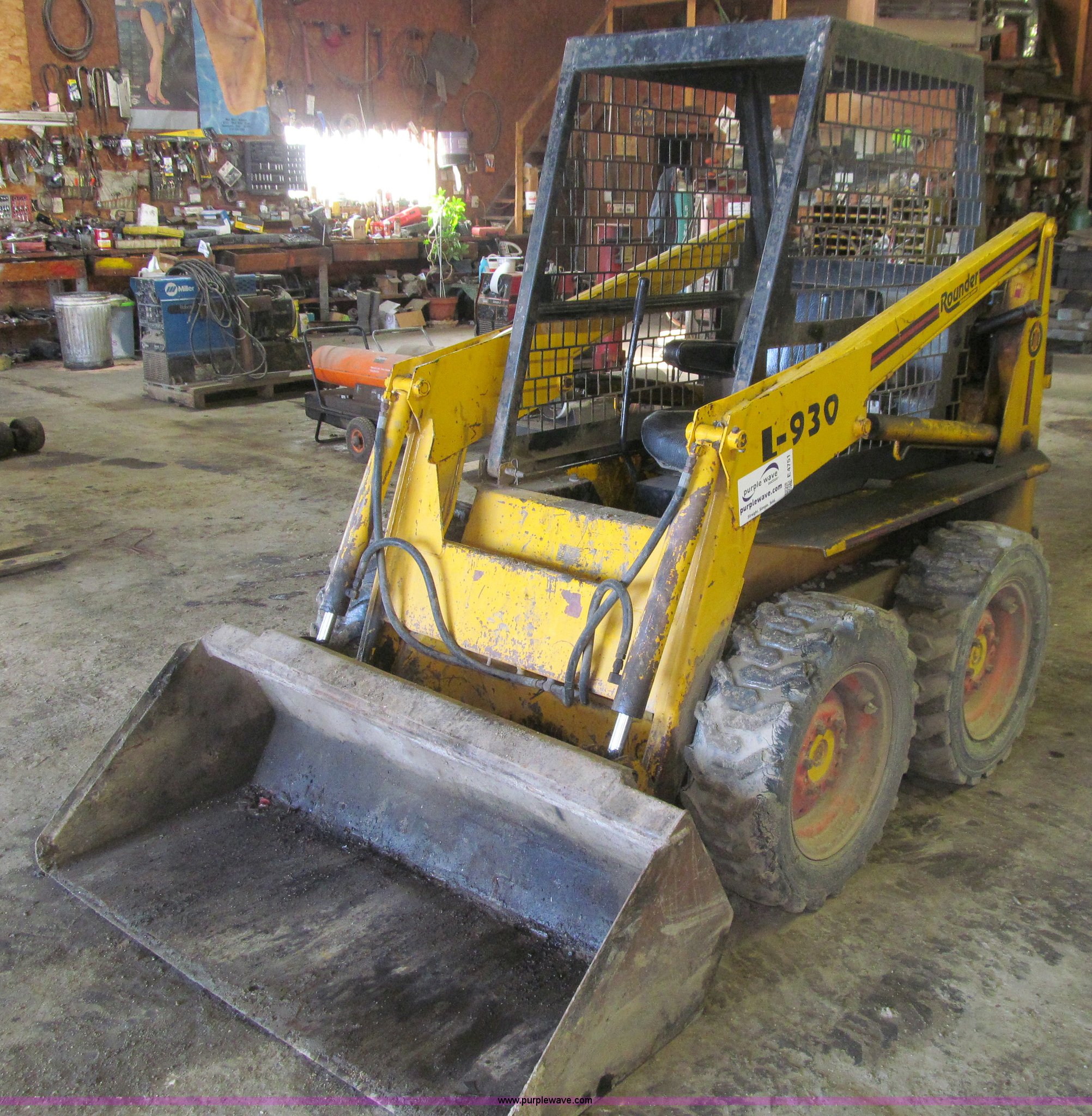 Purple Wave is selling a used Skid Steer Loader in Iowa. This item is a Prime Mover L930 Rounder skid steer with the following: 1,950 hours on meter, Hours may vary, unit is still in use, Diesel engine, 2 HP, Hydrostatic transmission, Auxiliary hydraulics, 54.5"W bucket, Weld-on cutting edge, Manual quick connect, 27 x 8.50-15 NHS tires, Lift cylinder leaks, Bucket cylinder seeping, Engine may be leaking coolant, Serial 930013