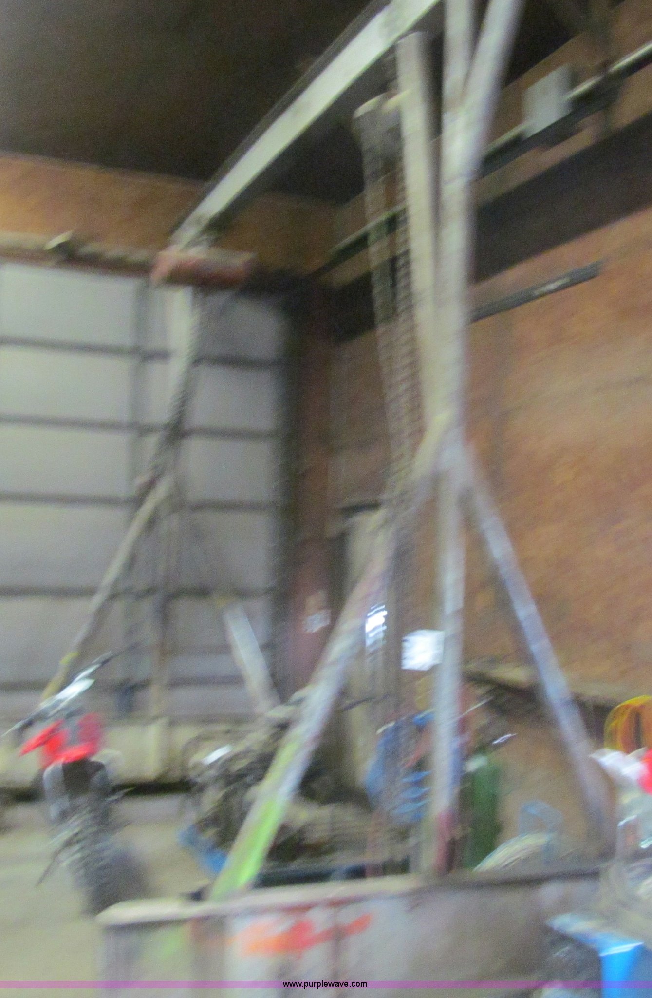Portable overhead gantry crane. Two ton capacity, Electric operation with control, Hook block, One ton manual capacity. Kemp & Son, Inc.. 13735 175th St. Letts, IA 52754