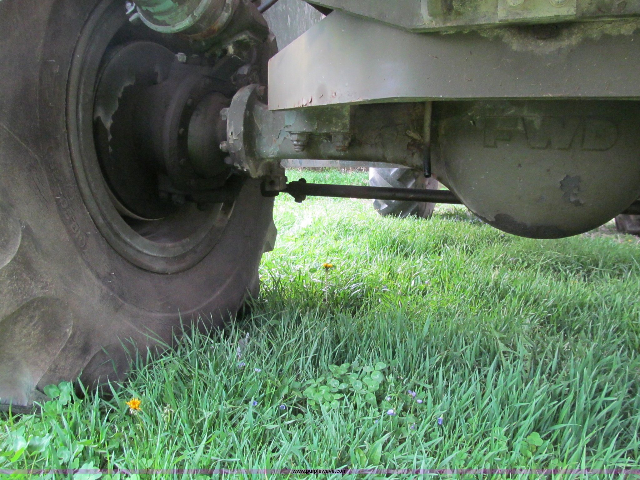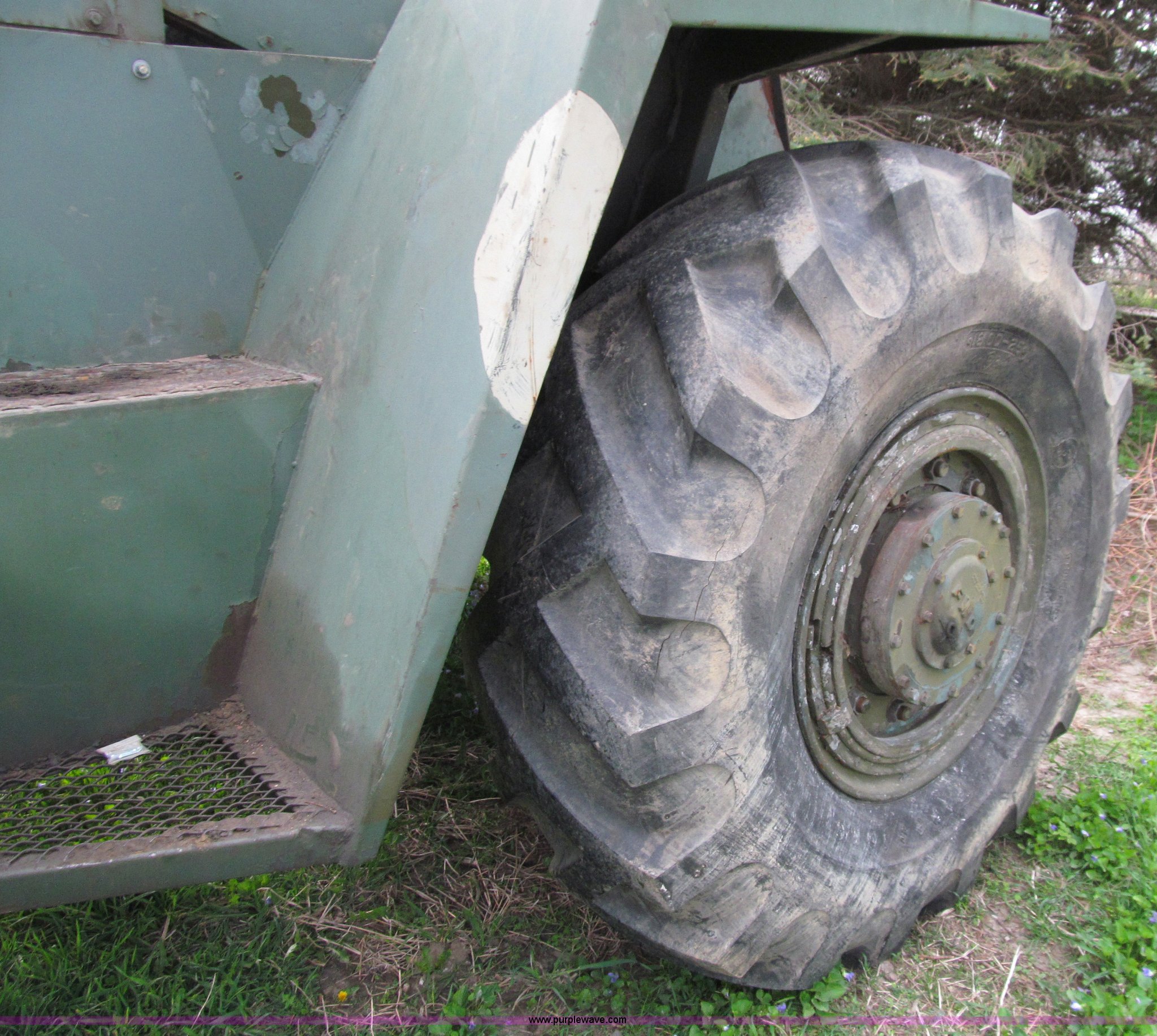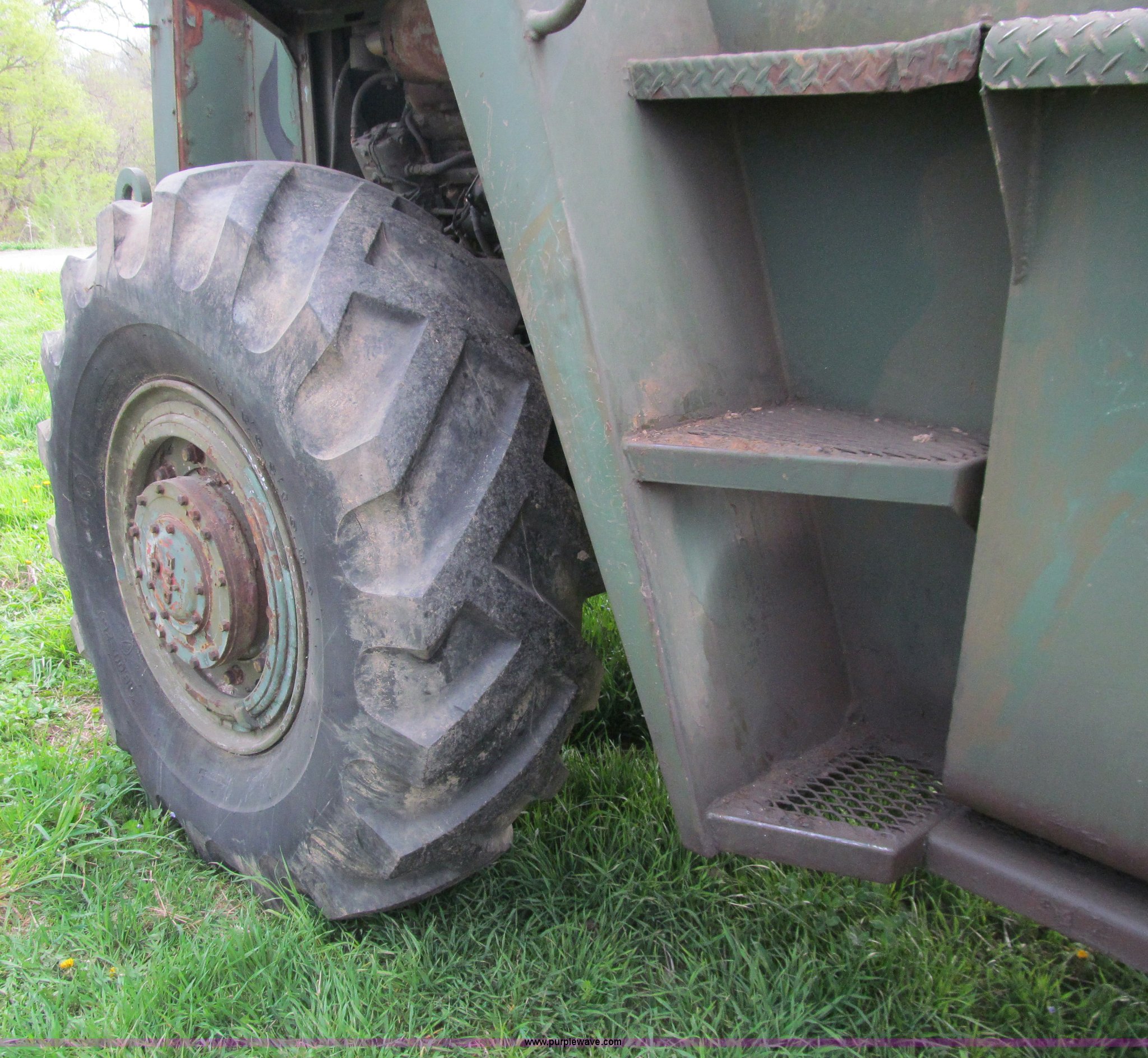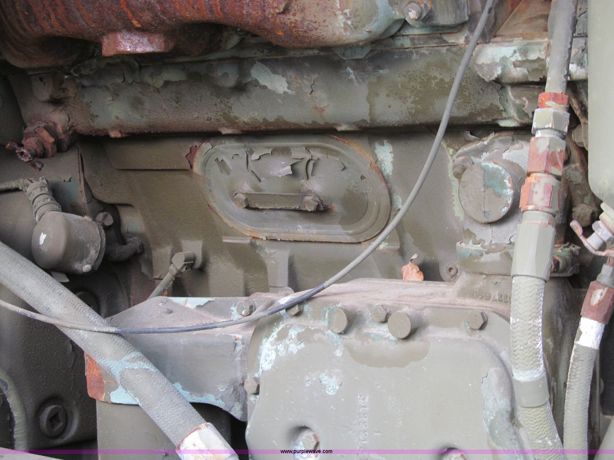 U.S. Army power unit. 149 hours on meter, Detroit Diesel V6 diesel engine, Power shift transmission 6F-1R gears, Four wheel drive, Shaft driven gearbox to power trencher wheel Hydraulic height adjustment, Air lines to the front of chassis, Requisition No. 08C69967, FSN No. 3805-50-4638, Air brakes, 18.00-25 tires Weathering and sidewall cuts, Serial 023. Kemp & Son, Inc.. 13735 175th St. Letts, IA 52754