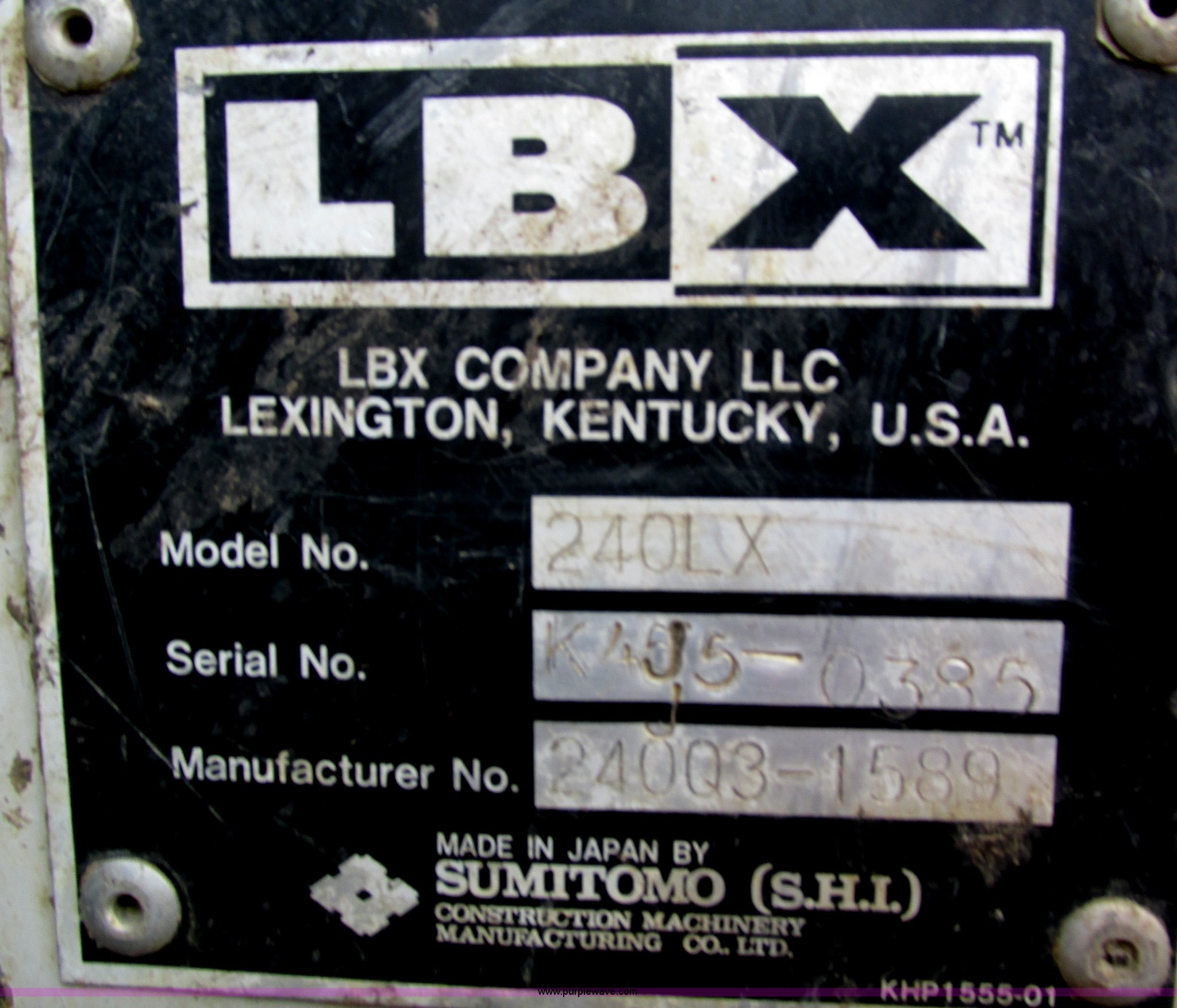 2005 Link Belt 240LX excavator. 5,747 hours on meter, Hours may vary, unit is still in use, Isuzu BB-6BG1T 396 C.I.D. six cylinder turbo diesel engine 162 HP, Hydrostatic transmission Two speed travel, Single pedal travel, AC and heat, AM/FM, Spring suspension seat, LCD in-cab monitor, Electronic engine control Auto power up, Joystick controls, Pattern changer, 11'7" stick Two speed boom and arm, Esco 42"W five tooth bucket 1.43 cubic yard capacity, Travel alarm, Nine bottom rollers, 31.5"W steel triple grouser track pads, 52,700 lbs. base operating weight, Rails, sprockets, top and bottom rollers, front and rear idlers replaced August 2013, Serial K4J5-0385. View repairs. Asset will be used to assist with load-out and will be available for pickup beginning June 13, 2014. View equipment video. Kemp & Son, Inc.. 13735 175th St. Letts, IA 52754