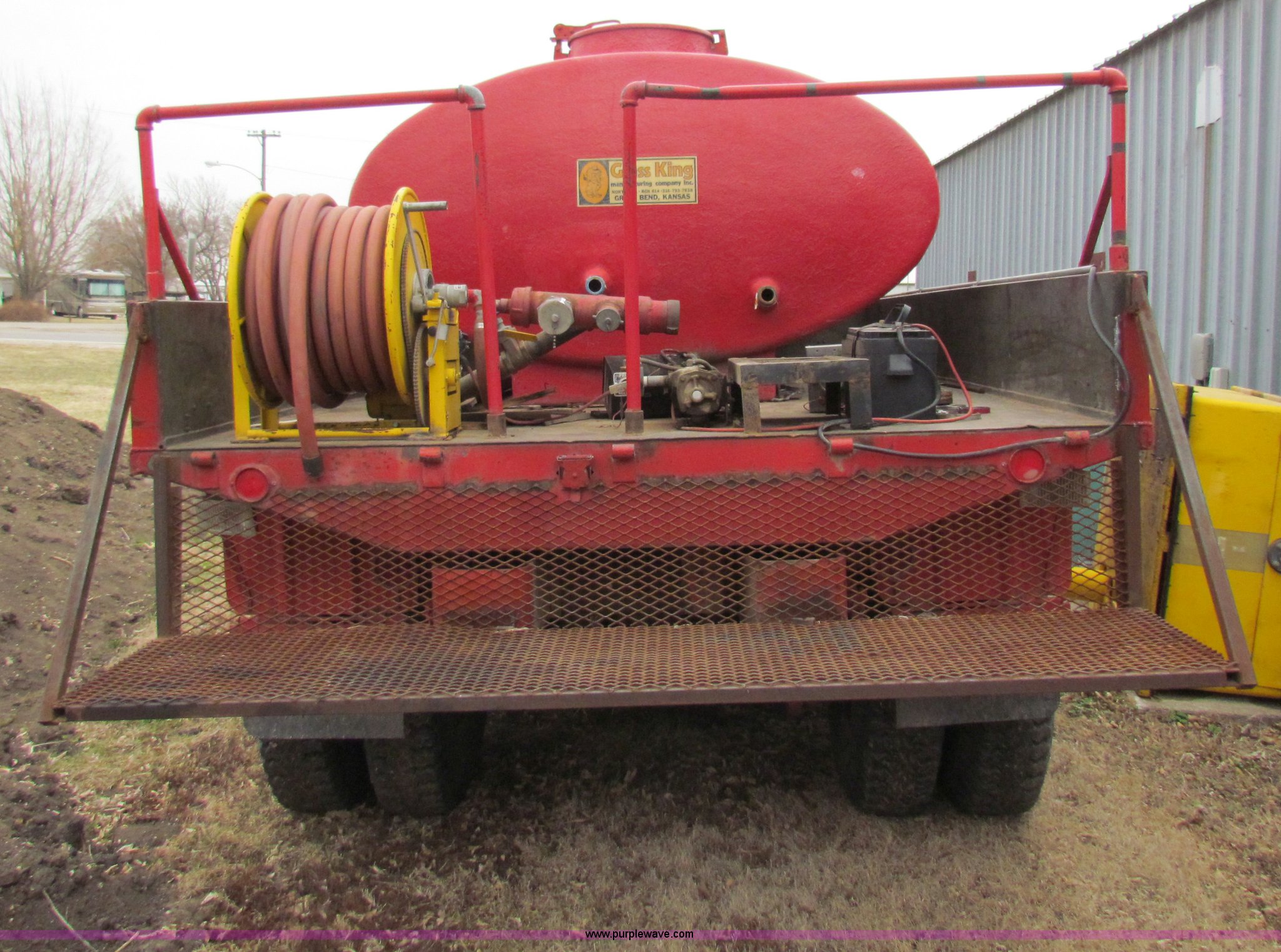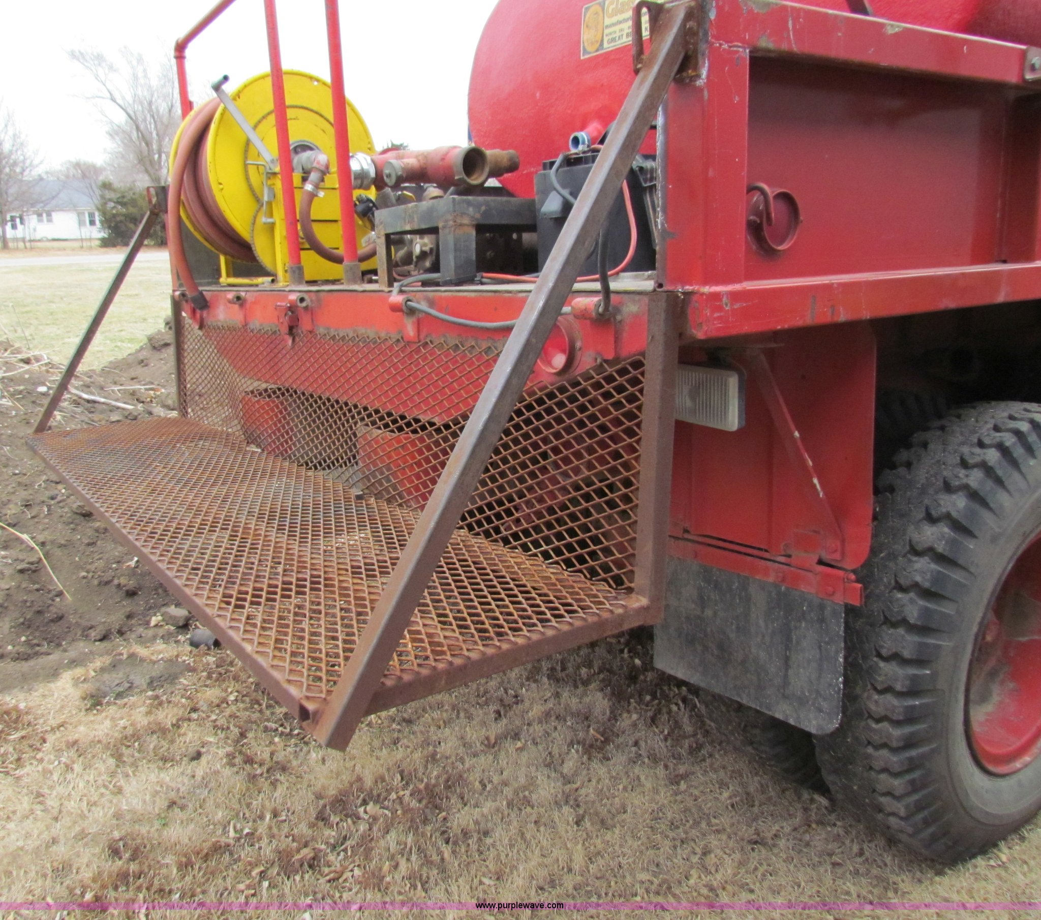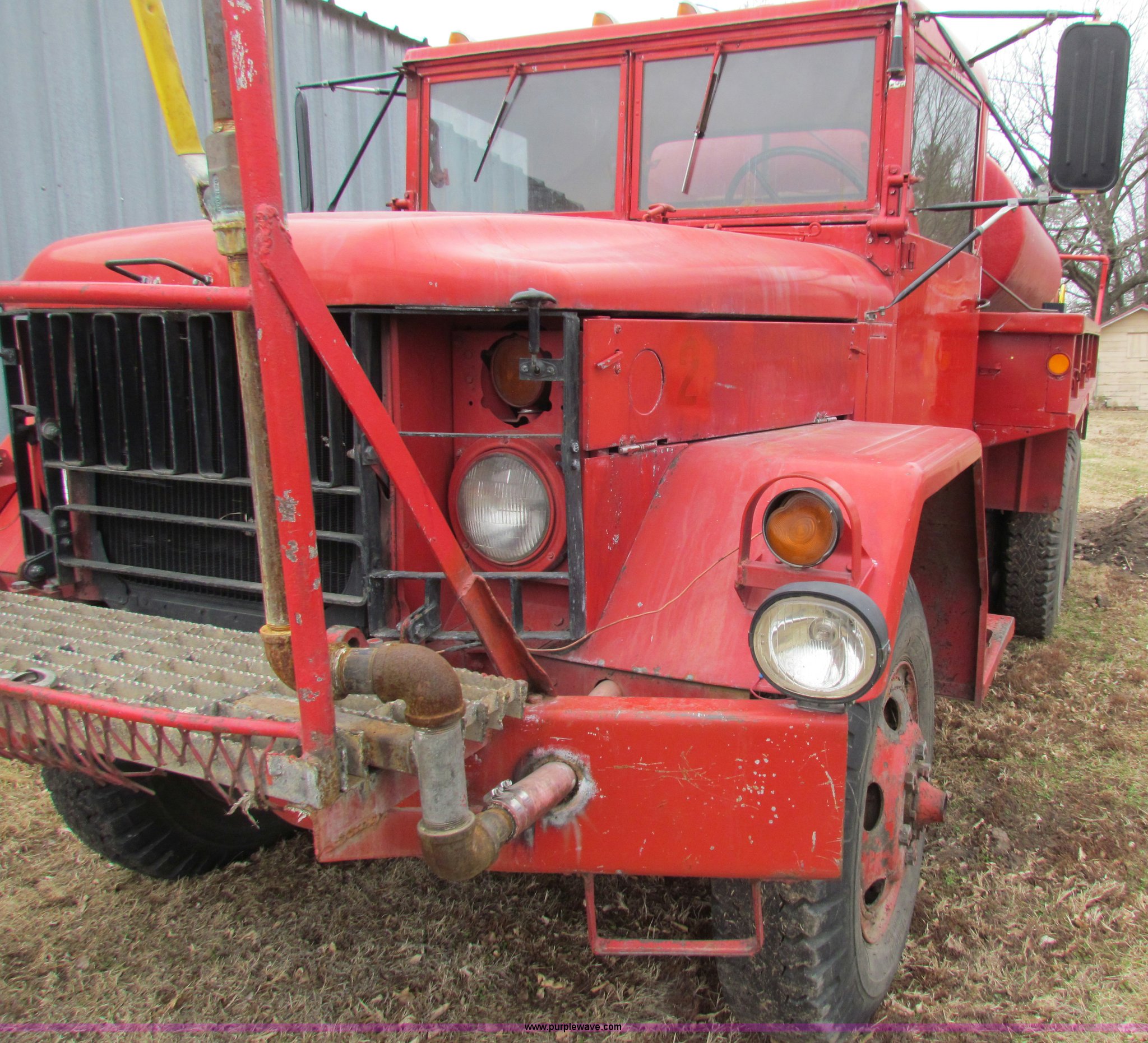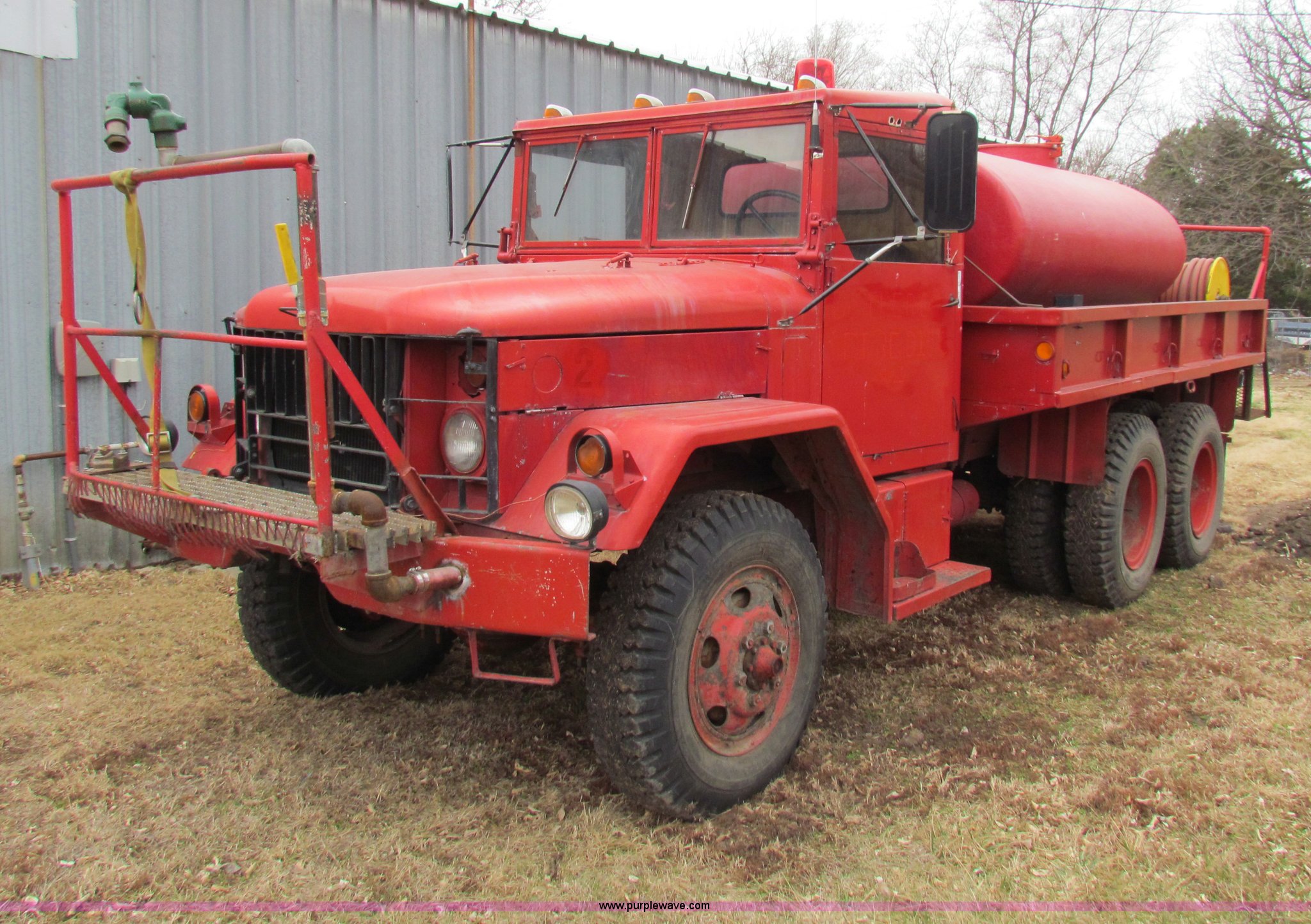 Purple Wave is selling a used Fire Truck or Emergency Vehicle in Kansas. This item is a 1957 Utic M35 fire truck with the following: 15,012 miles on odometer, Six cylinder multi-fuel engine, Five speed manual transmission, Six wheel drive, Approximately 800 gallon Glass King water tank, Spring suspension, 9.00-20 tires, Recent brake work, Hose reel and auxiliary lights are not included