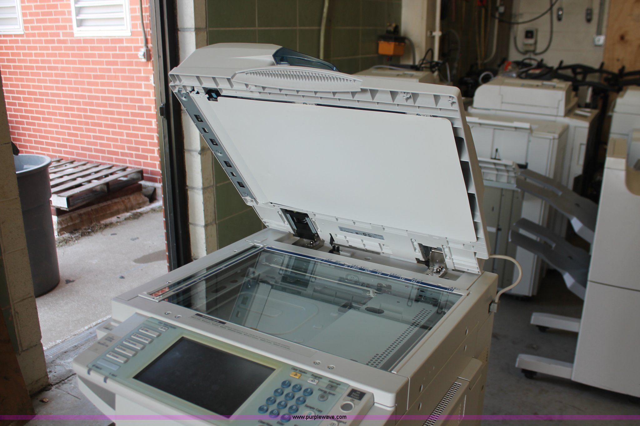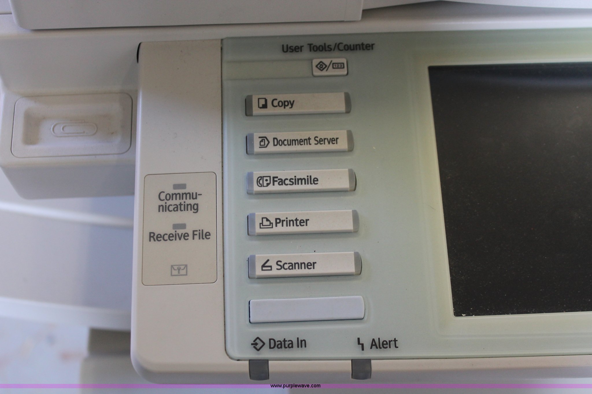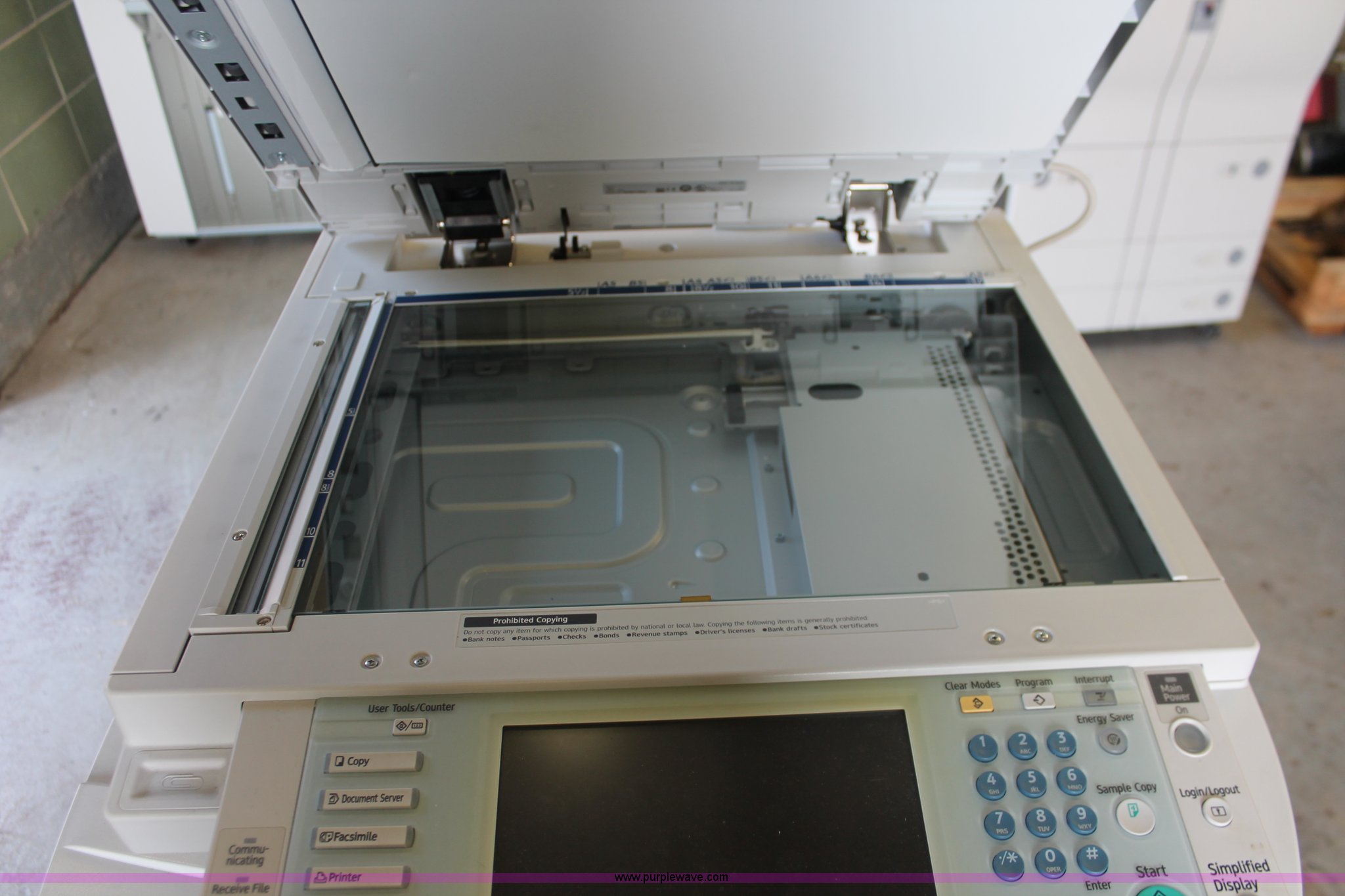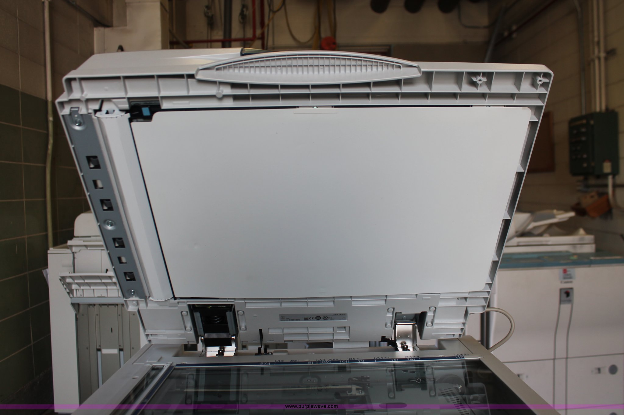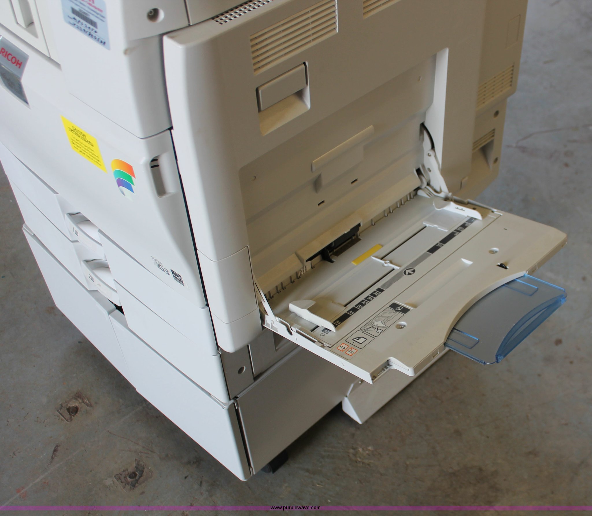 Purple Wave is selling a used Copy or Printing Machine in Missouri. This item is a Ricoh Aficio MP C2050 document server with the following: Digital display, (2) paper compartments, Auto document feed, Adjustable size, Collate, Assorted component inputs, Serial V2295800508