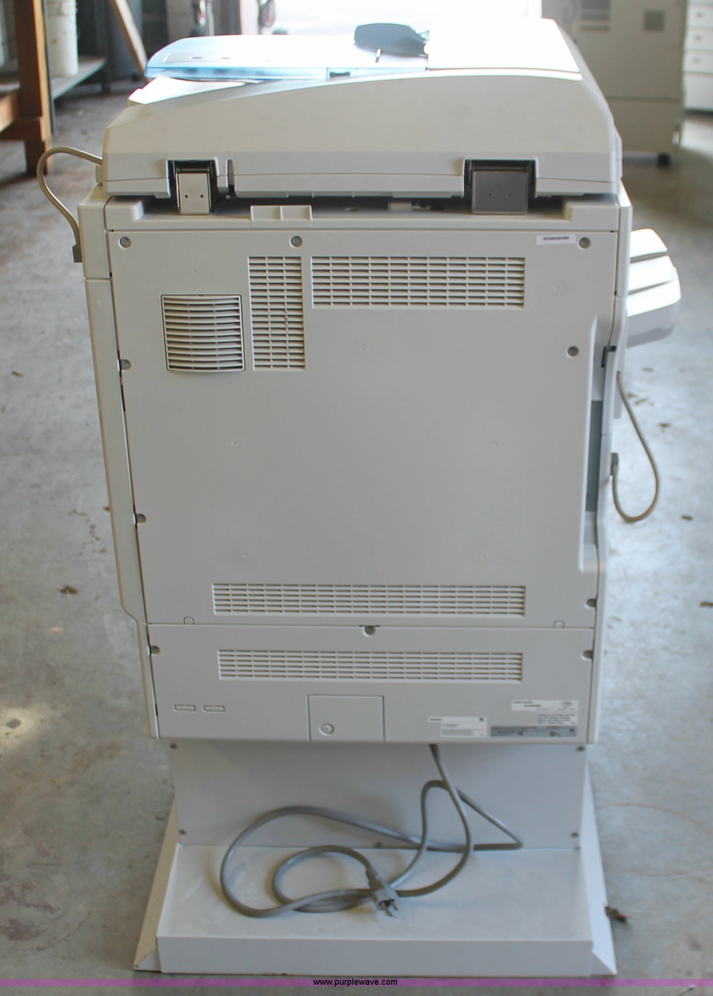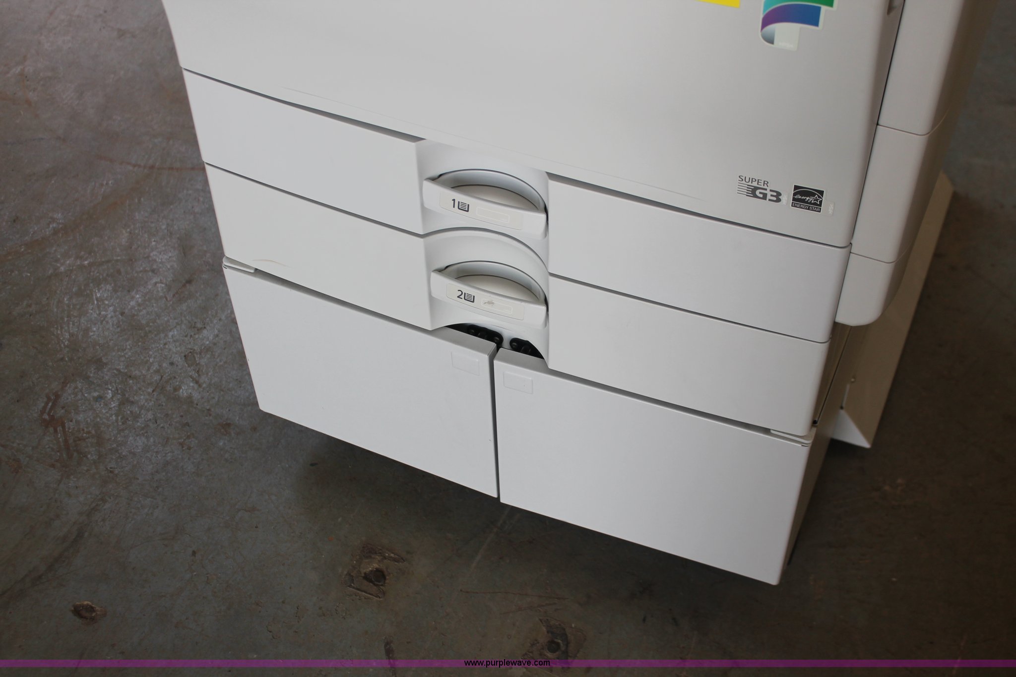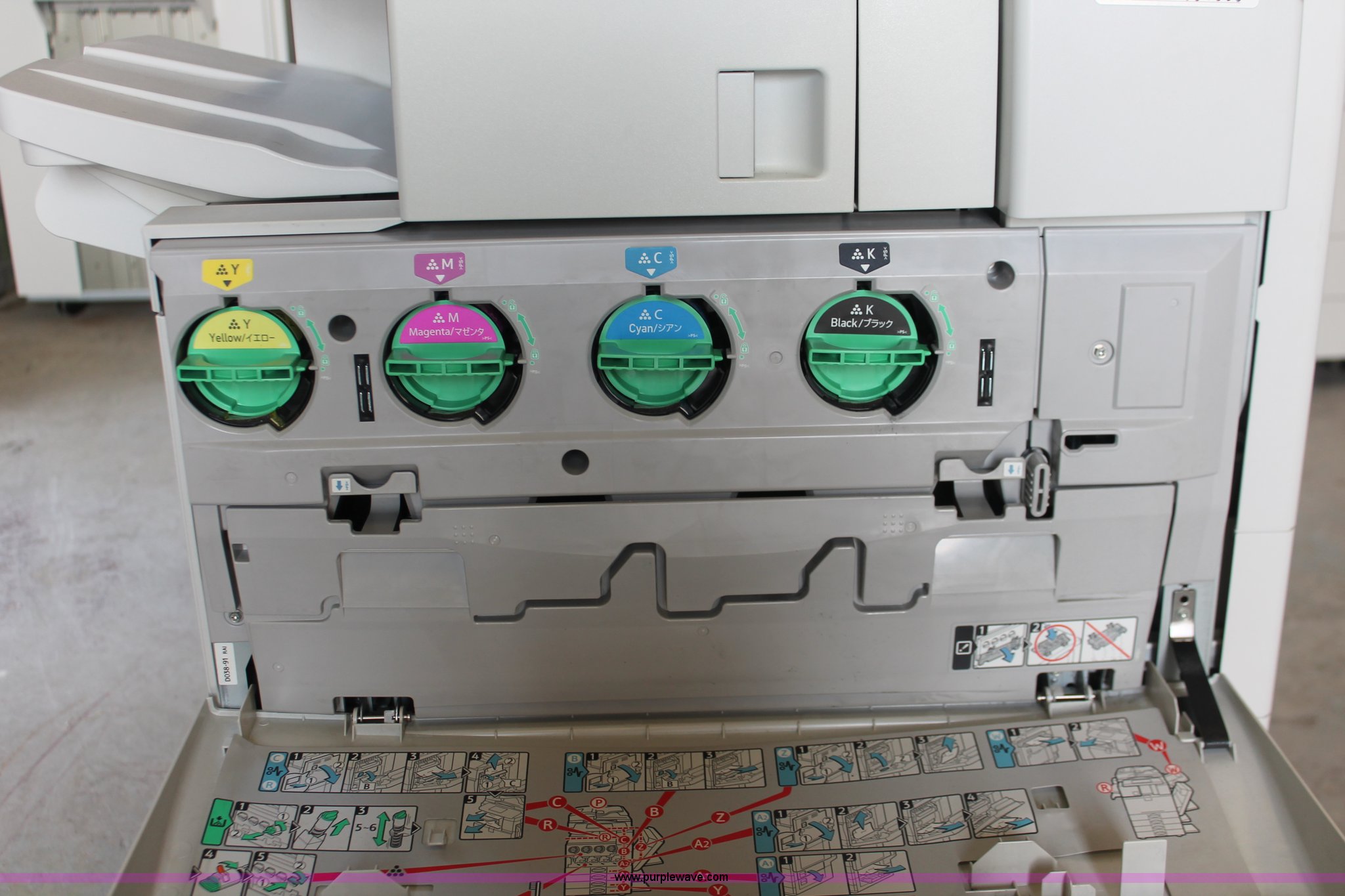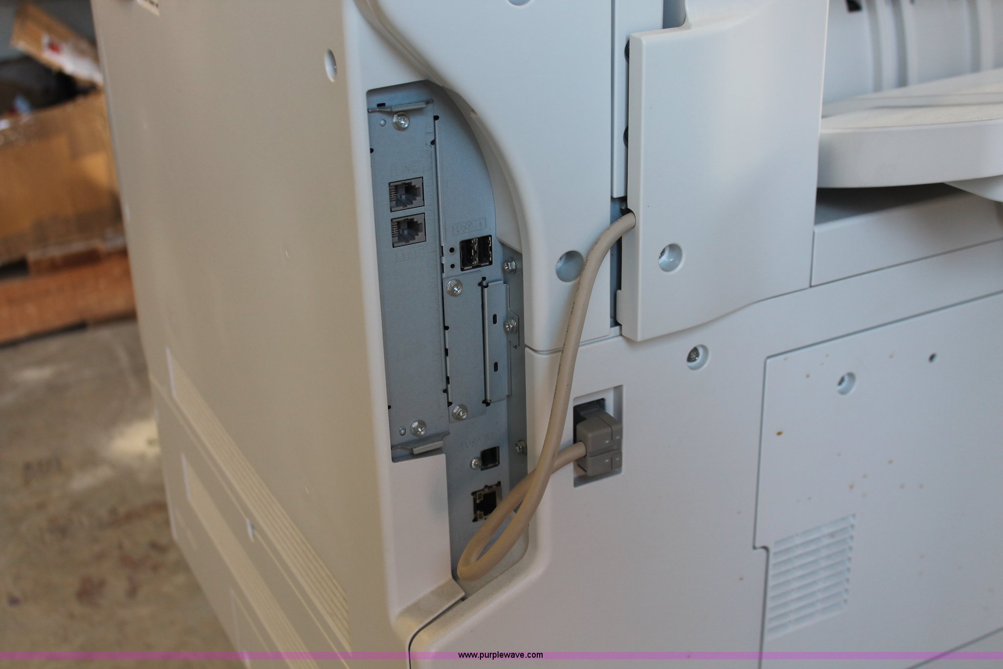 Purple Wave is selling a used Copy or Printing Machine in Missouri. This item is a Ricoh Aficio MP C2050 document server with the following: Digital display, (2) paper compartments, Auto document feed, Adjustable size, Collate, Assorted component inputs, Serial V2295800508
