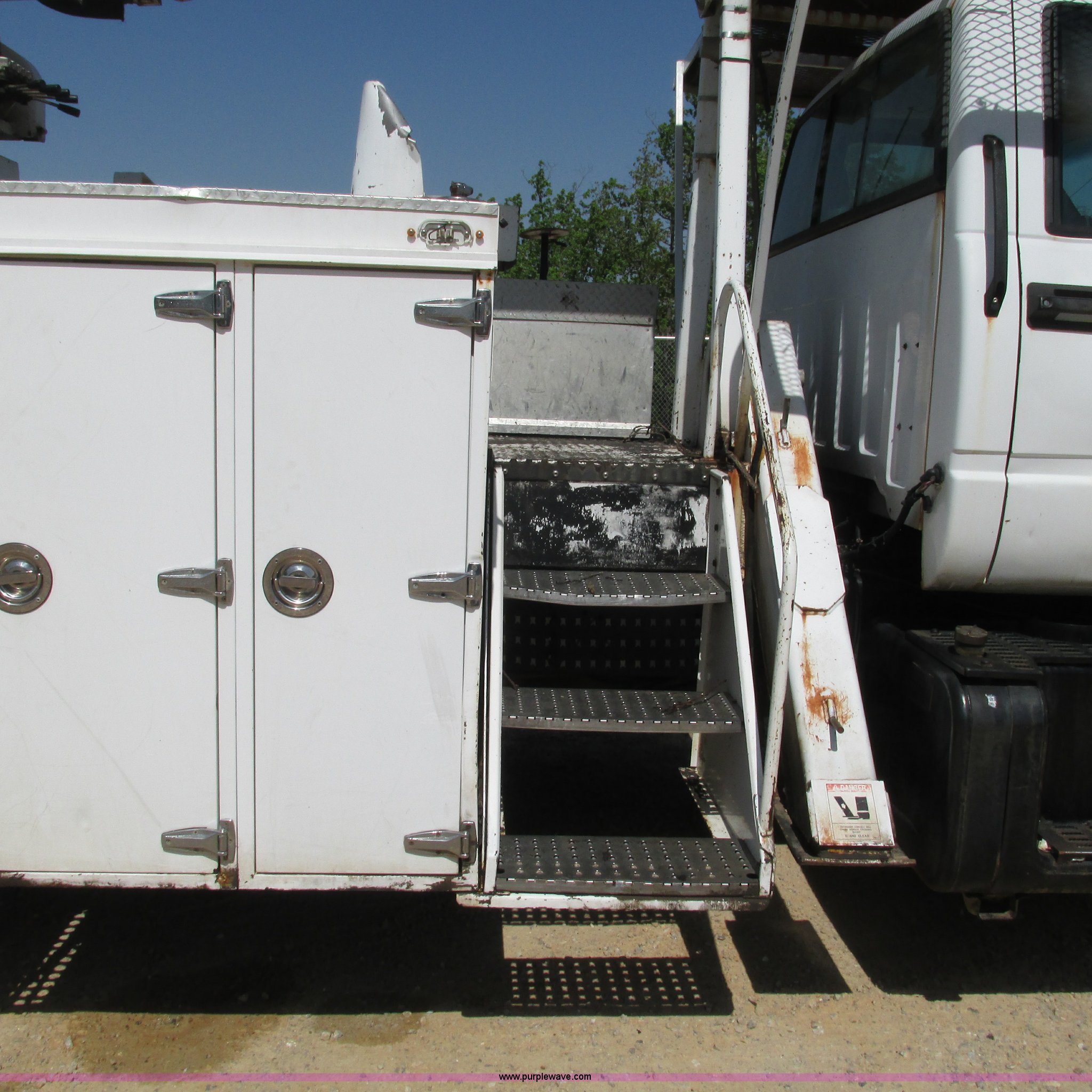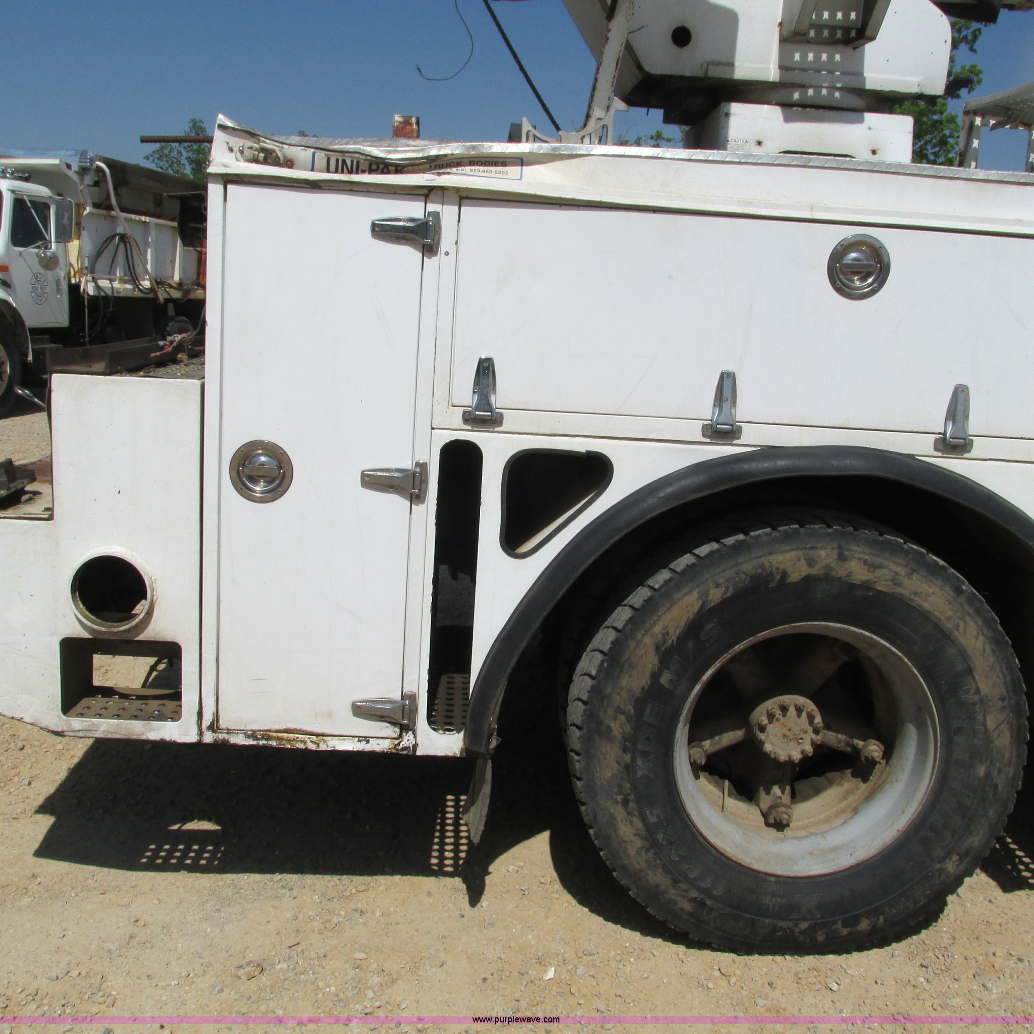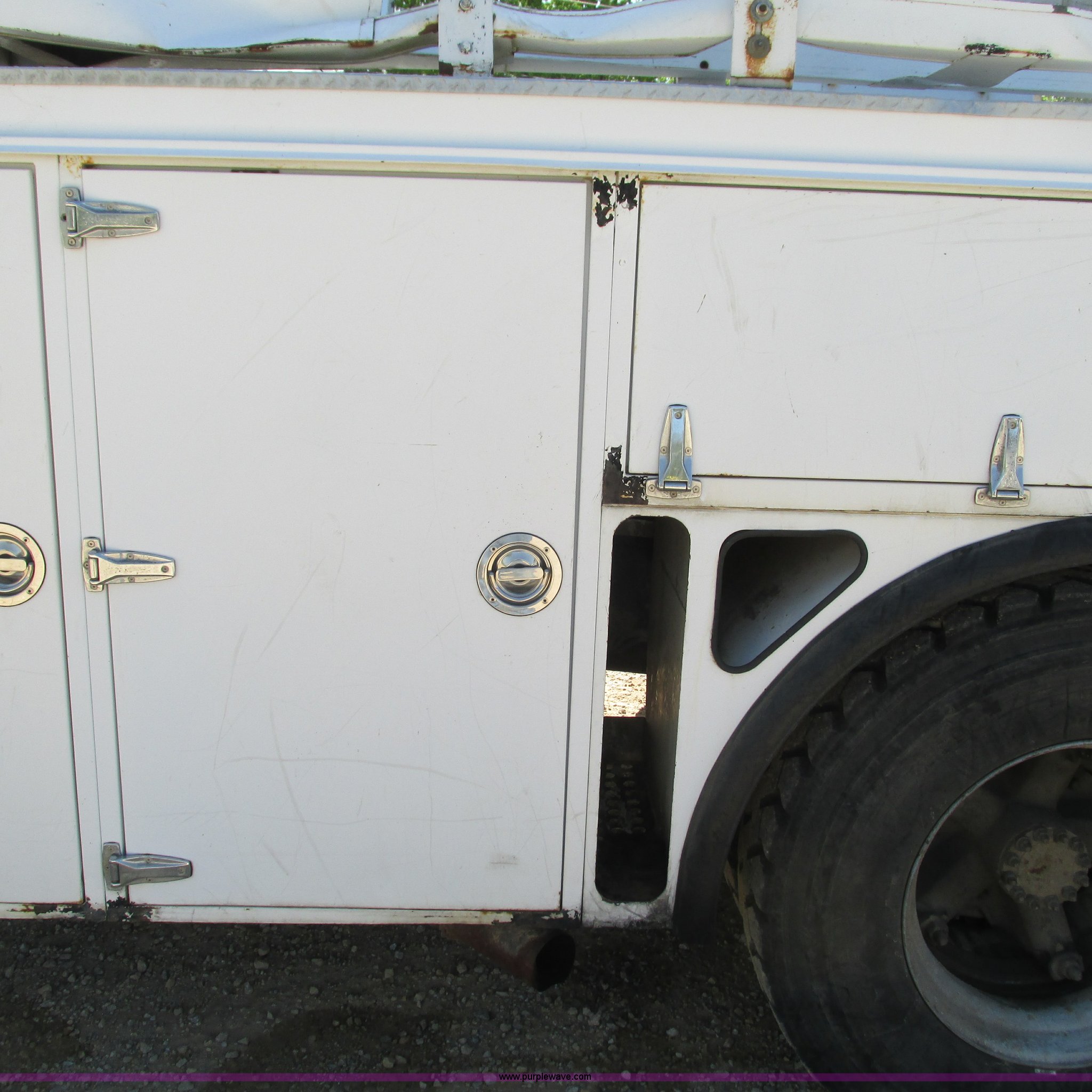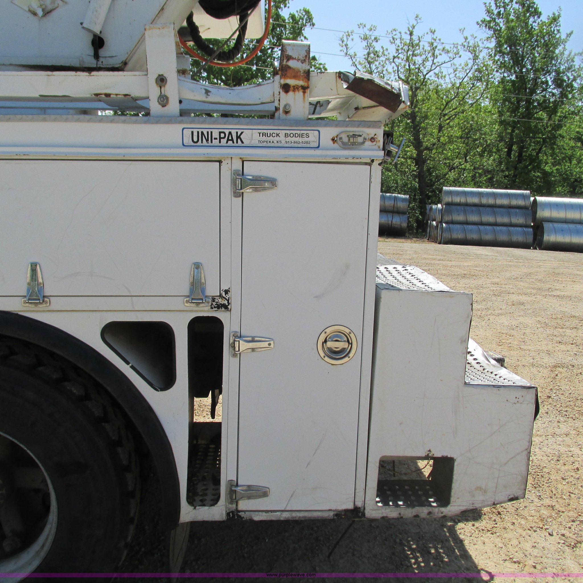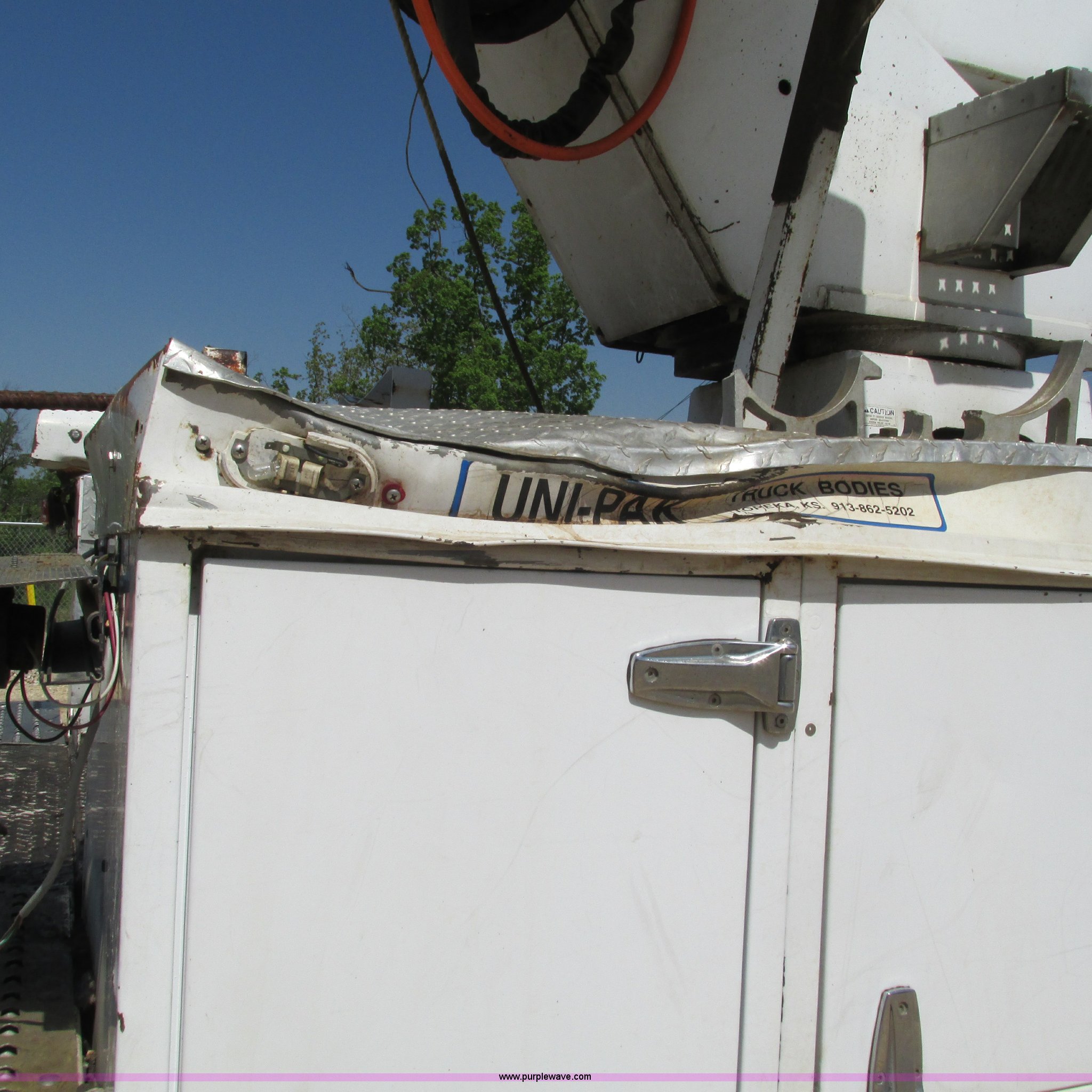 Purple Wave is selling a used Service Truck in Missouri. This item is a 1995 GMC TopKick service truck with the following: 137,616 miles on odometer, Miles may vary, still in use, Caterpillar 3116 6.6L six cylinder diesel engine, Automatic transmission, AC and heat, Spring suspension cloth driver's seat, Vinyl bench seat, Unipak utility bed, Versalift bucket boom, Model VD36MHI, Stabilizers, Platform rated at 350 lbs, 46 kV and below rated line voltage, Insulated boom, 12V DC, 2,500 hydraulic system operating pressure, Serial AW9611, Serial AD36-0138, Dual 35 gallon fuel tanks, Air brakes, 11R22.5 tires, GCW 53,000 lbs, Interior/exterior cosmetic damage, Two way radio will be removed, Ladder rack damage, Overcab protection damage