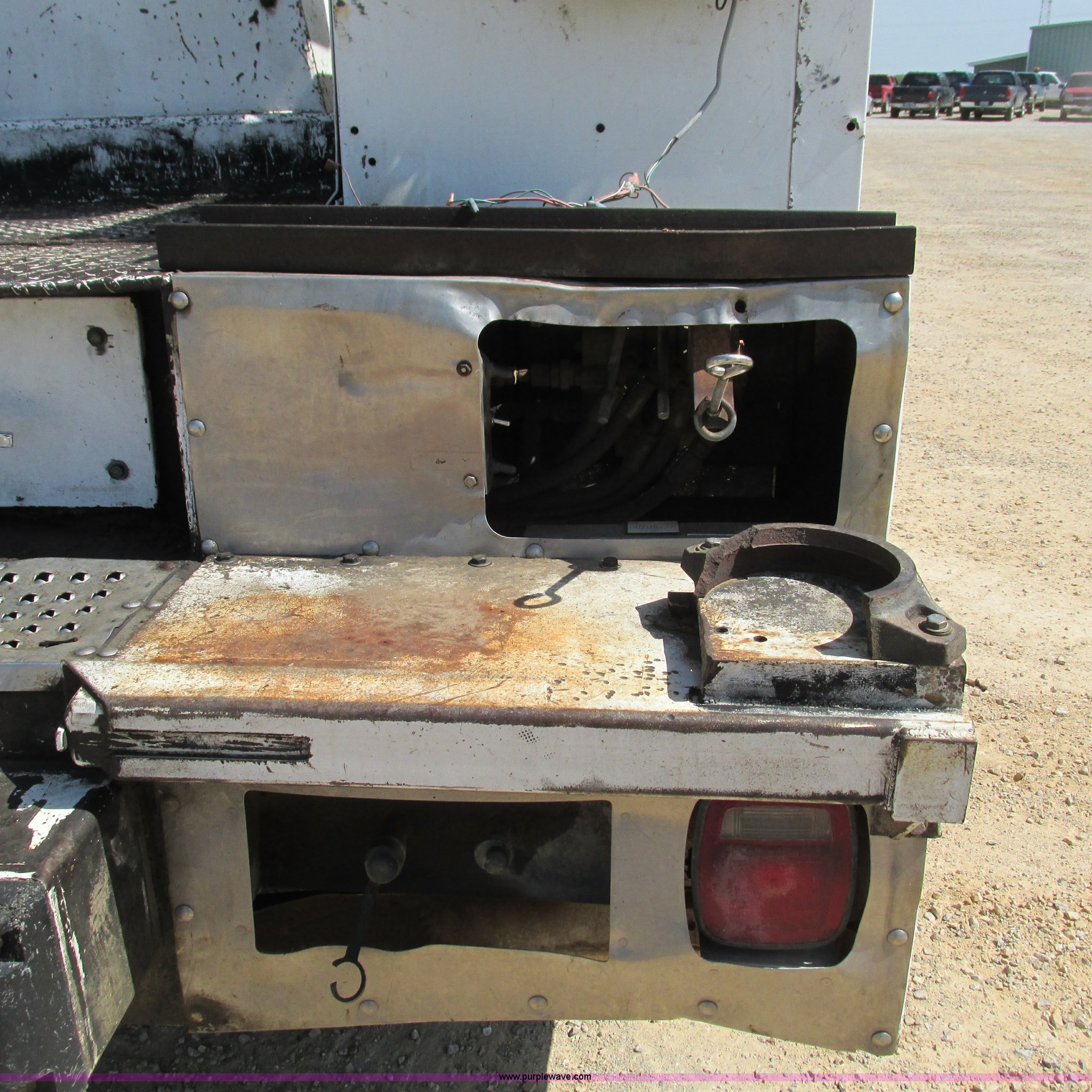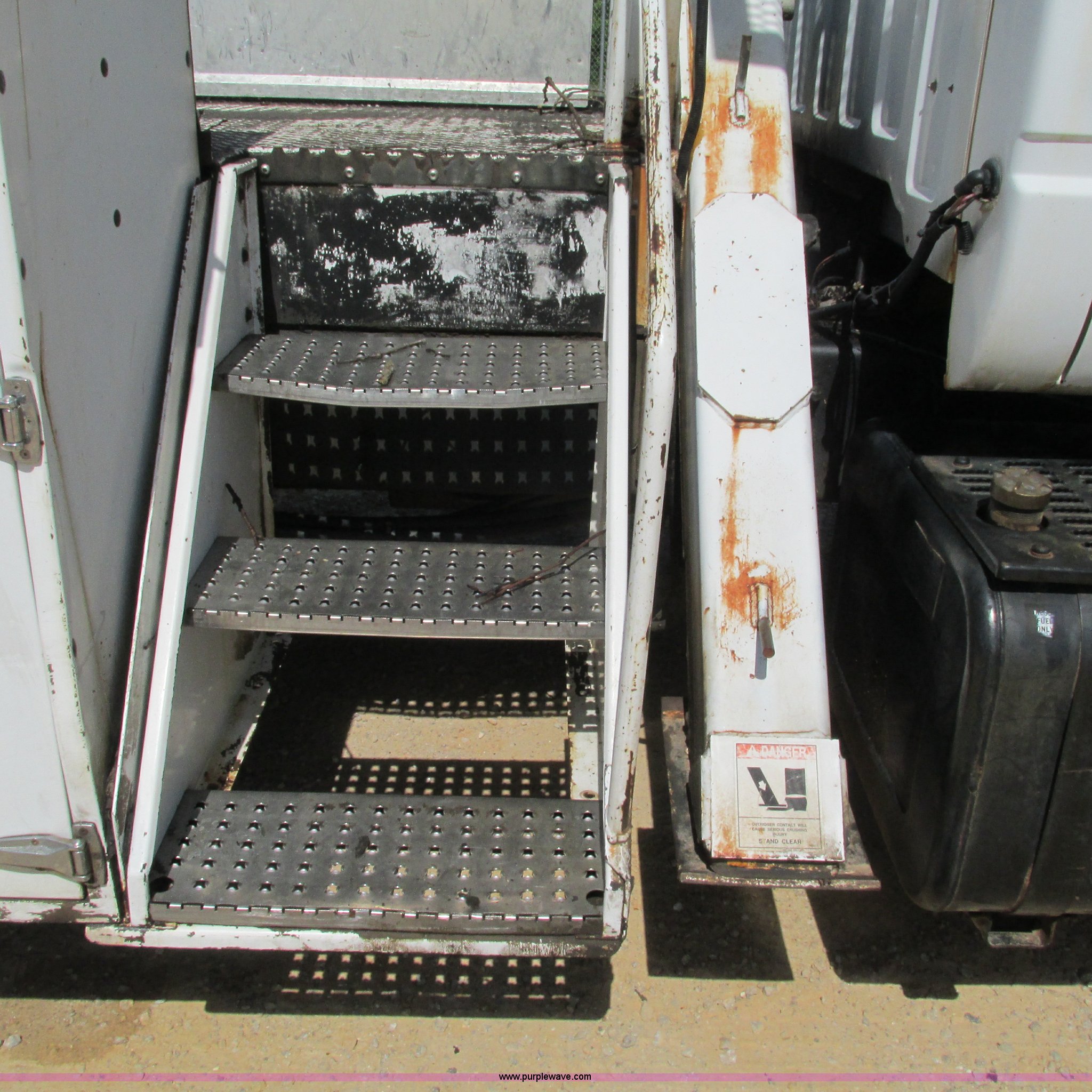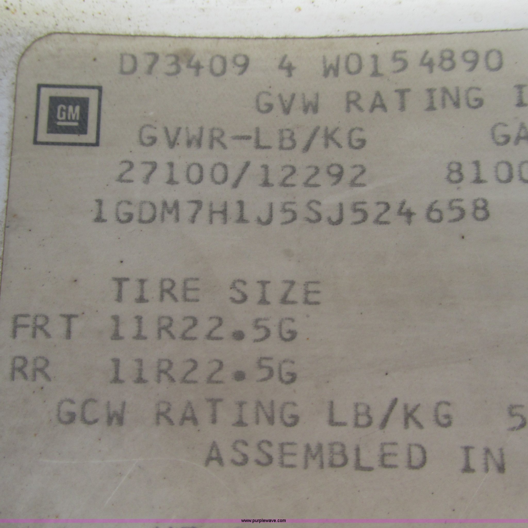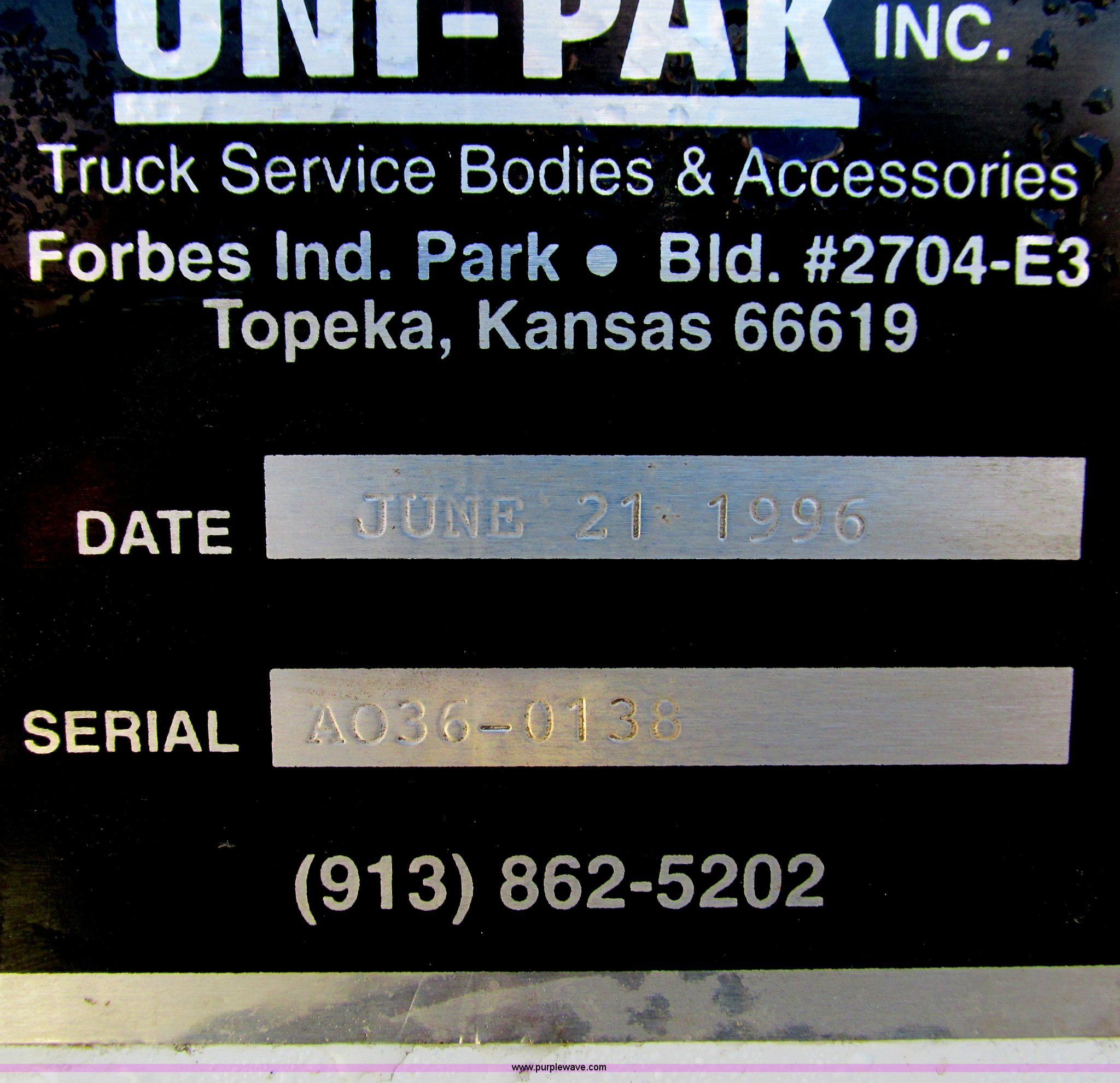 Purple Wave is selling a used Service Truck in Missouri. This item is a 1995 GMC TopKick service truck with the following: 137,616 miles on odometer, Miles may vary, still in use, Caterpillar 3116 6.6L six cylinder diesel engine, Automatic transmission, AC and heat, Spring suspension cloth driver's seat, Vinyl bench seat, Unipak utility bed, Versalift bucket boom, Model VD36MHI, Stabilizers, Platform rated at 350 lbs, 46 kV and below rated line voltage, Insulated boom, 12V DC, 2,500 hydraulic system operating pressure, Serial AW9611, Serial AD36-0138, Dual 35 gallon fuel tanks, Air brakes, 11R22.5 tires, GCW 53,000 lbs, Interior/exterior cosmetic damage, Two way radio will be removed, Ladder rack damage, Overcab protection damage