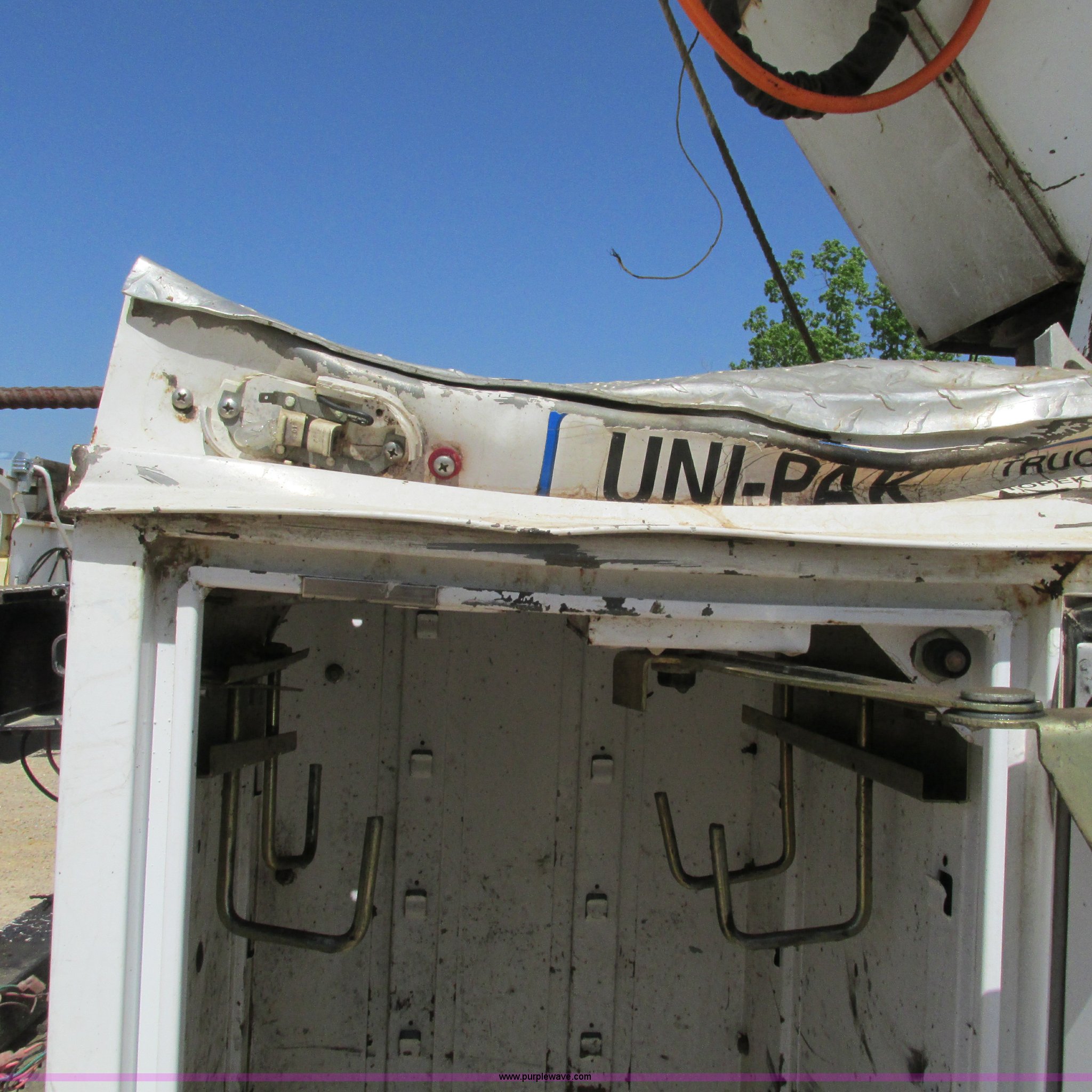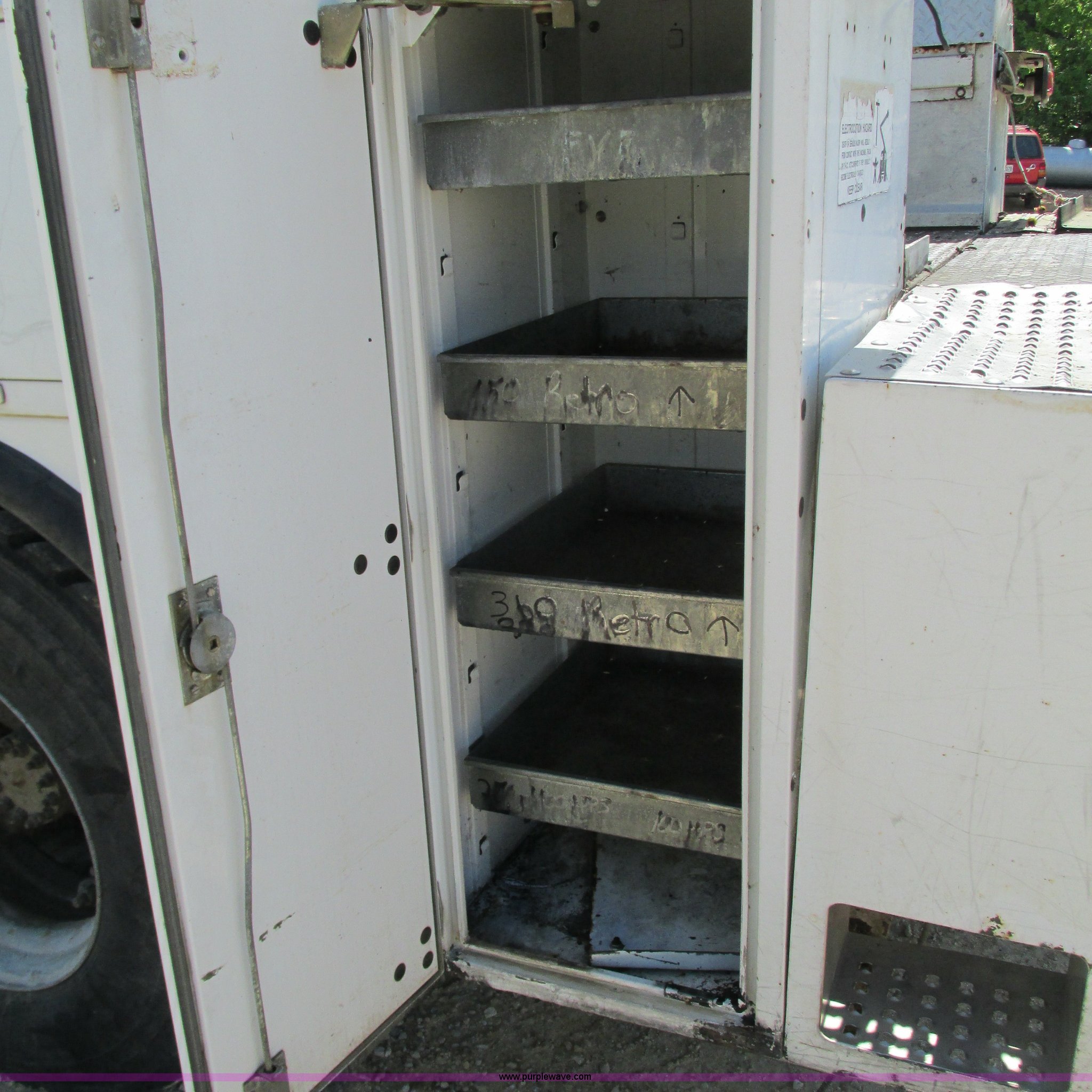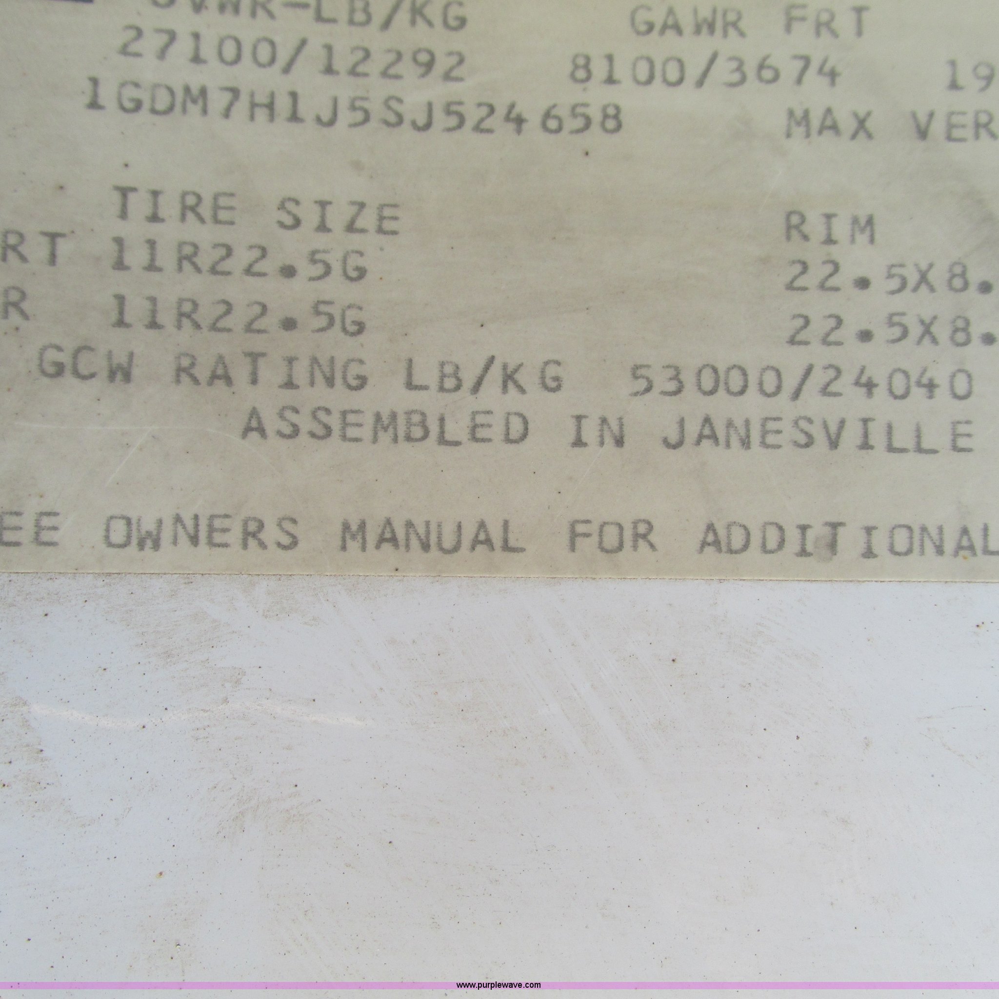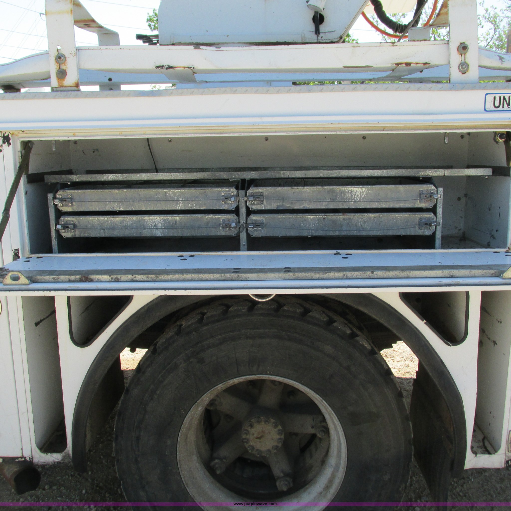 Purple Wave is selling a used Service Truck in Missouri. This item is a 1995 GMC TopKick service truck with the following: 137,616 miles on odometer, Miles may vary, still in use, Caterpillar 3116 6.6L six cylinder diesel engine, Automatic transmission, AC and heat, Spring suspension cloth driver's seat, Vinyl bench seat, Unipak utility bed, Versalift bucket boom, Model VD36MHI, Stabilizers, Platform rated at 350 lbs, 46 kV and below rated line voltage, Insulated boom, 12V DC, 2,500 hydraulic system operating pressure, Serial AW9611, Serial AD36-0138, Dual 35 gallon fuel tanks, Air brakes, 11R22.5 tires, GCW 53,000 lbs, Interior/exterior cosmetic damage, Two way radio will be removed, Ladder rack damage, Overcab protection damage