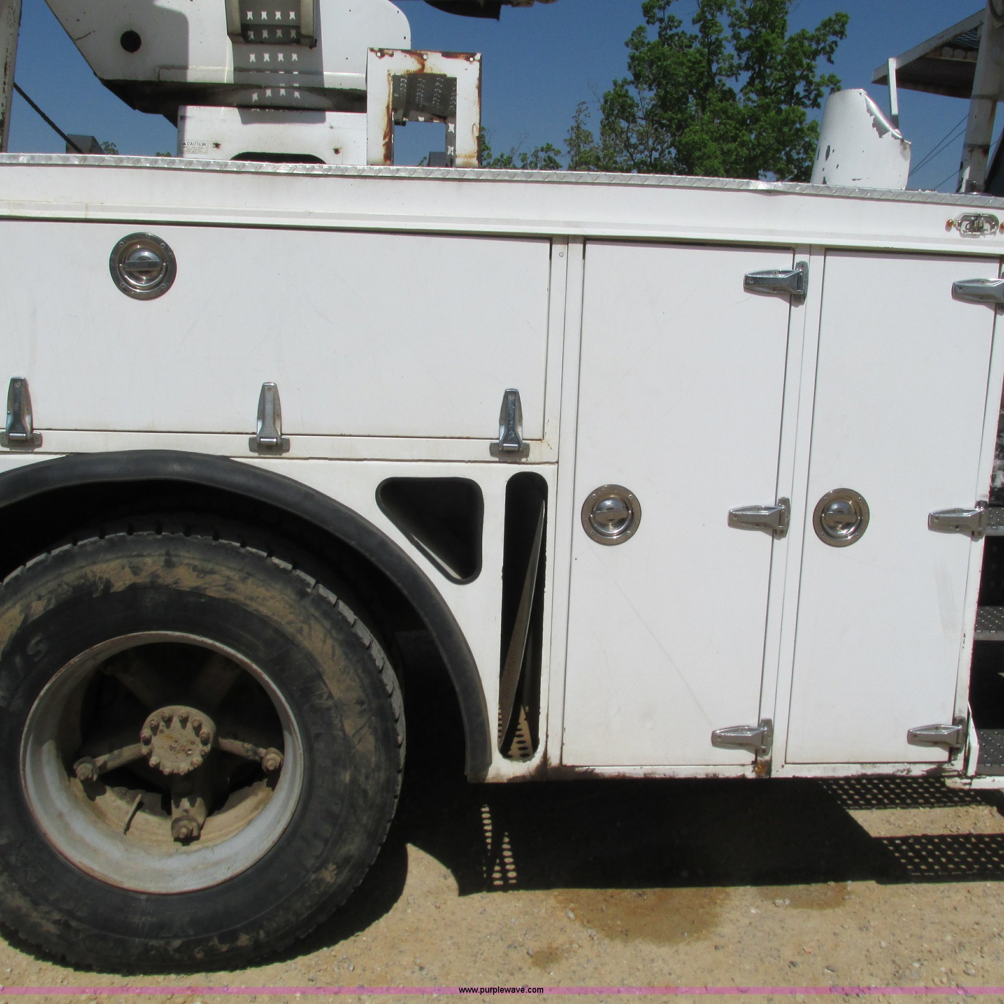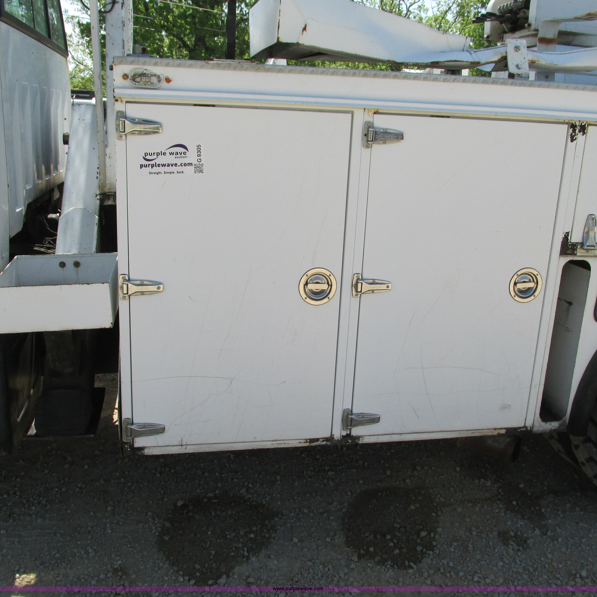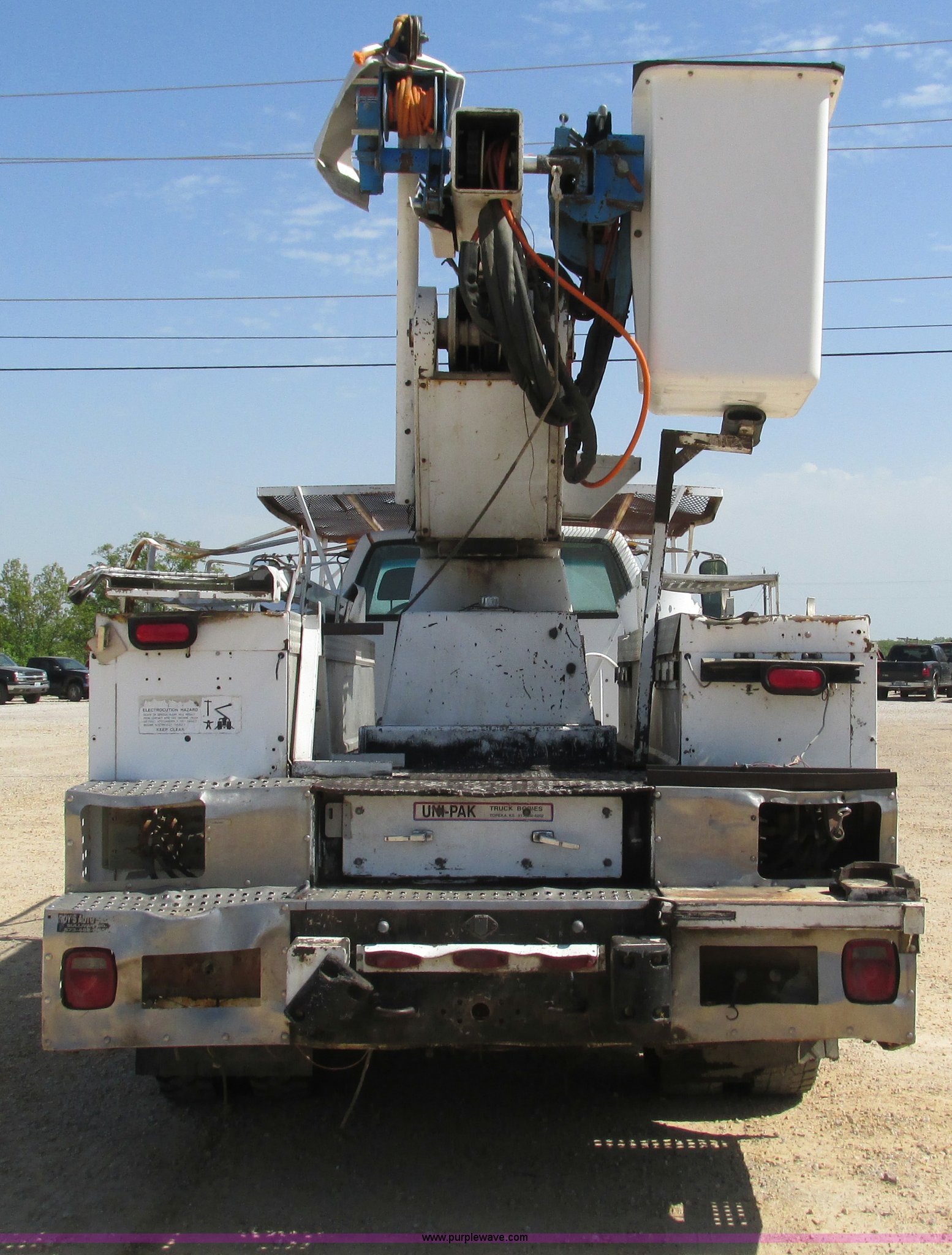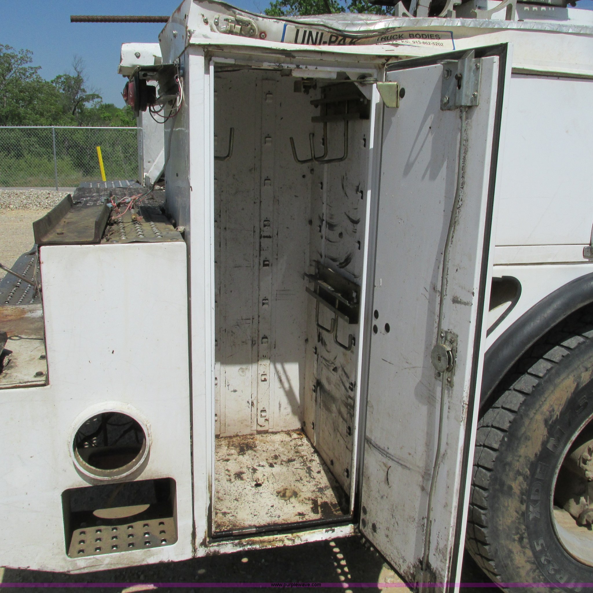 1995 GMC TopKick service truck. 137,616 miles on odometer Miles may vary, still in use, Caterpillar 3116 6.6L six cylinder diesel engine, Automatic transmission, AC and heat, Spring suspension cloth driver's seat, Vinyl bench seat, Unipak utility bed Versalift bucket boom Model VD36MHI, Stabilizers, Platform rated at 350 lbs, 46 kV and below rated line voltage, Insulated boom, 12V DC, 2,500 hydraulic system operating pressure, Serial AW9611, Serial AD36-0138, Dual 35 gallon fuel tanks, Air brakes, 11R22.5 tires, GCW 53,000 lbs, Interior/exterior cosmetic damage, Two way radio will be removed, Ladder rack damage, Overcab protection damage. 1GDM7H1J5SJ524658. View equipment video. Camden County Missouri. 172 V.F.W. Rd. Camdenton, MO 65020