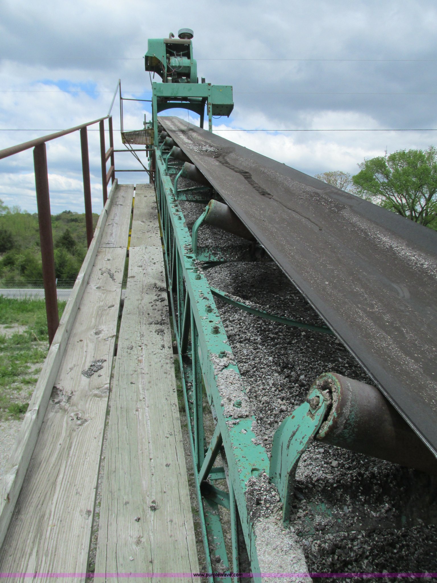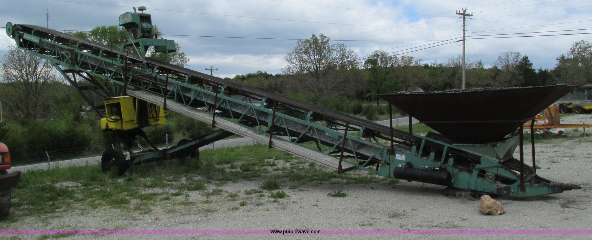 Purple Wave is selling a used Conveyor in Missouri. This item is a Barber Greene hopper conveyor with the following: 60' x 24", 10' x 6' hopper size at top, Wisconsin four cycle gas engine, Engine blown, Cummins four cylinder diesel yellow box engine, Running when removed from service five years ago, Wood plank walk way, Pintle hitch, King pin hitch, 8'3" inside tires, Tires flat, Serial PB70X219