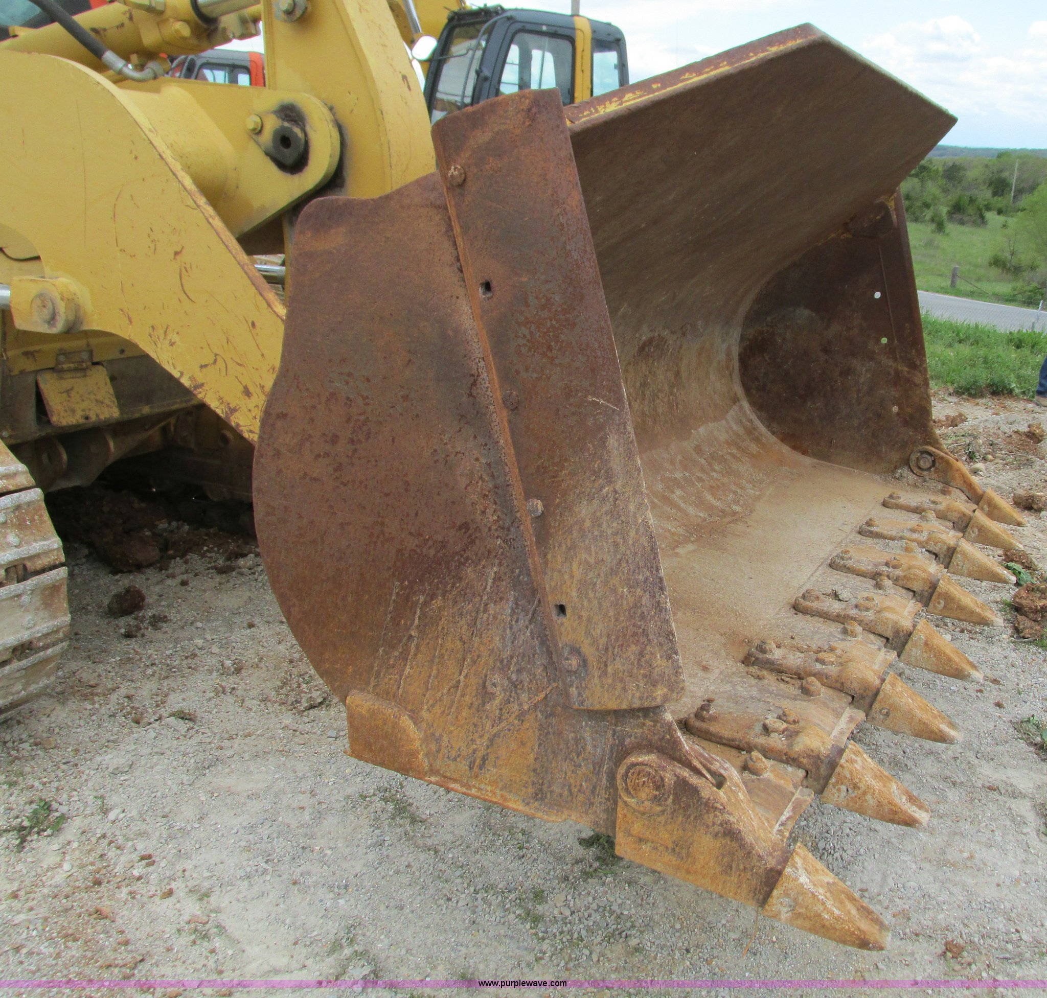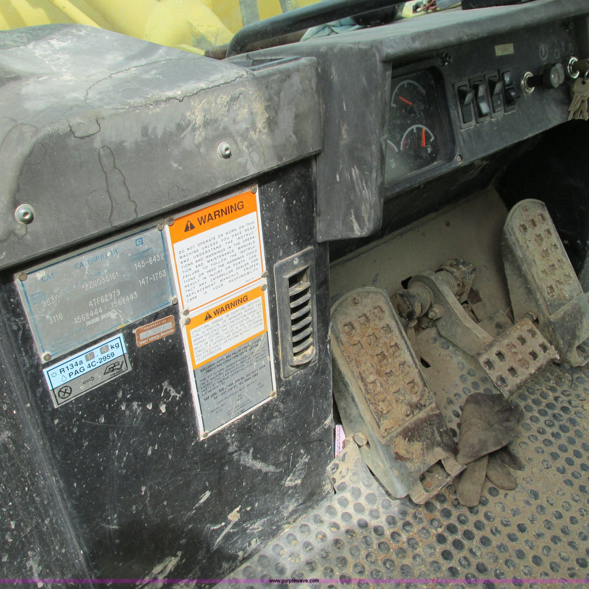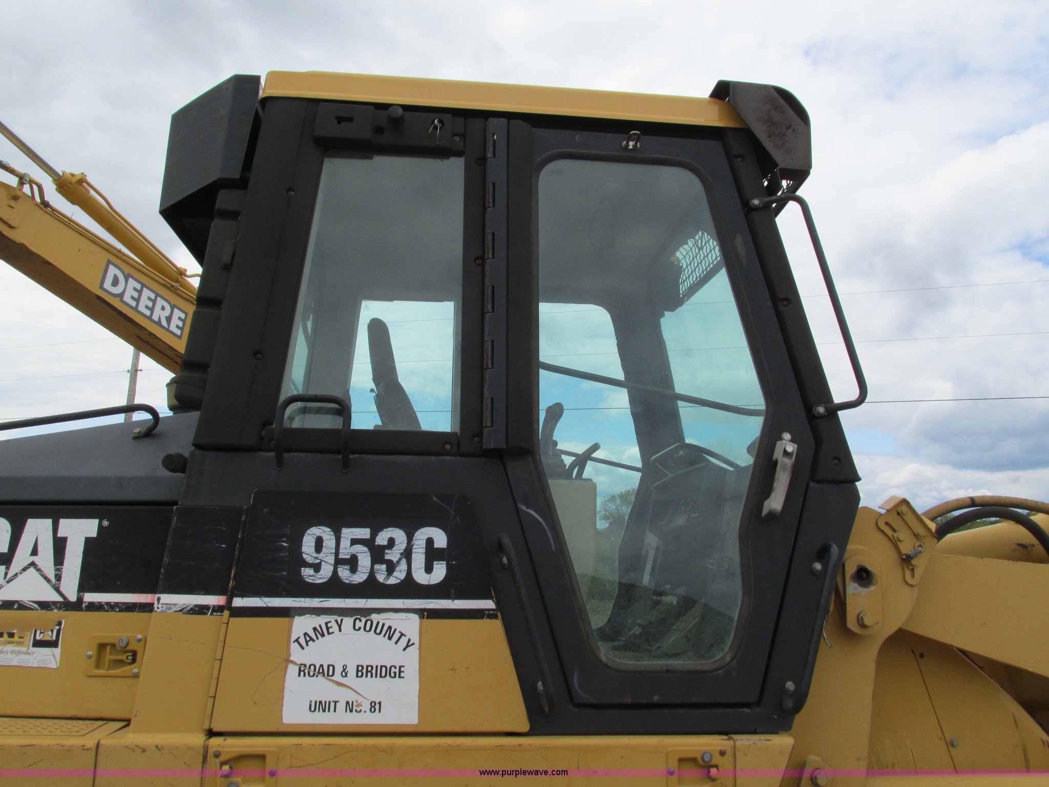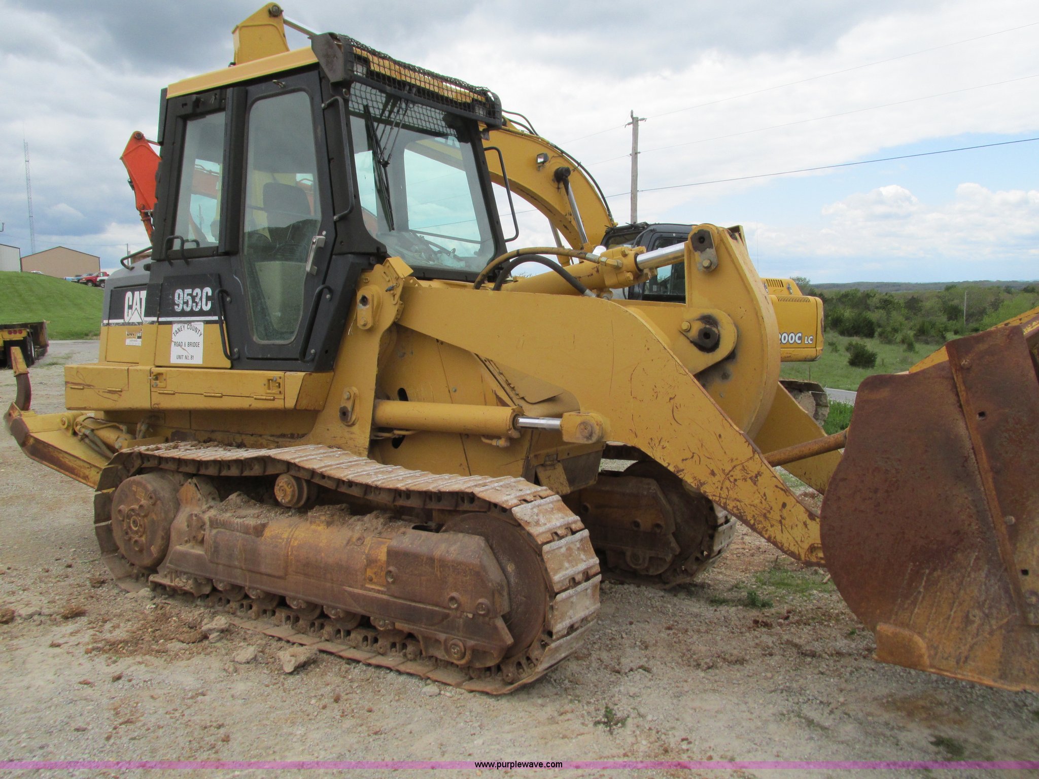 Purple Wave is selling a used Crawler Loader in Missouri. This item is a 2000 Caterpillar 953C track loader with the following: 4,641 hours on meter, Caterpillar 3116 six cylinder diesel engine, Hydrostatic two speed transmission, Cab, AC and heat, Non-operational AC, AM/FM, Approximately 93"W bucket, Eight tooth bolt-on cutting edge, Three shank ripper, 8TH00738, 15" track pads, 33,389 lbs. base operating weight, One side protector missing, Two way radio is not included, Serial 2ZN03516