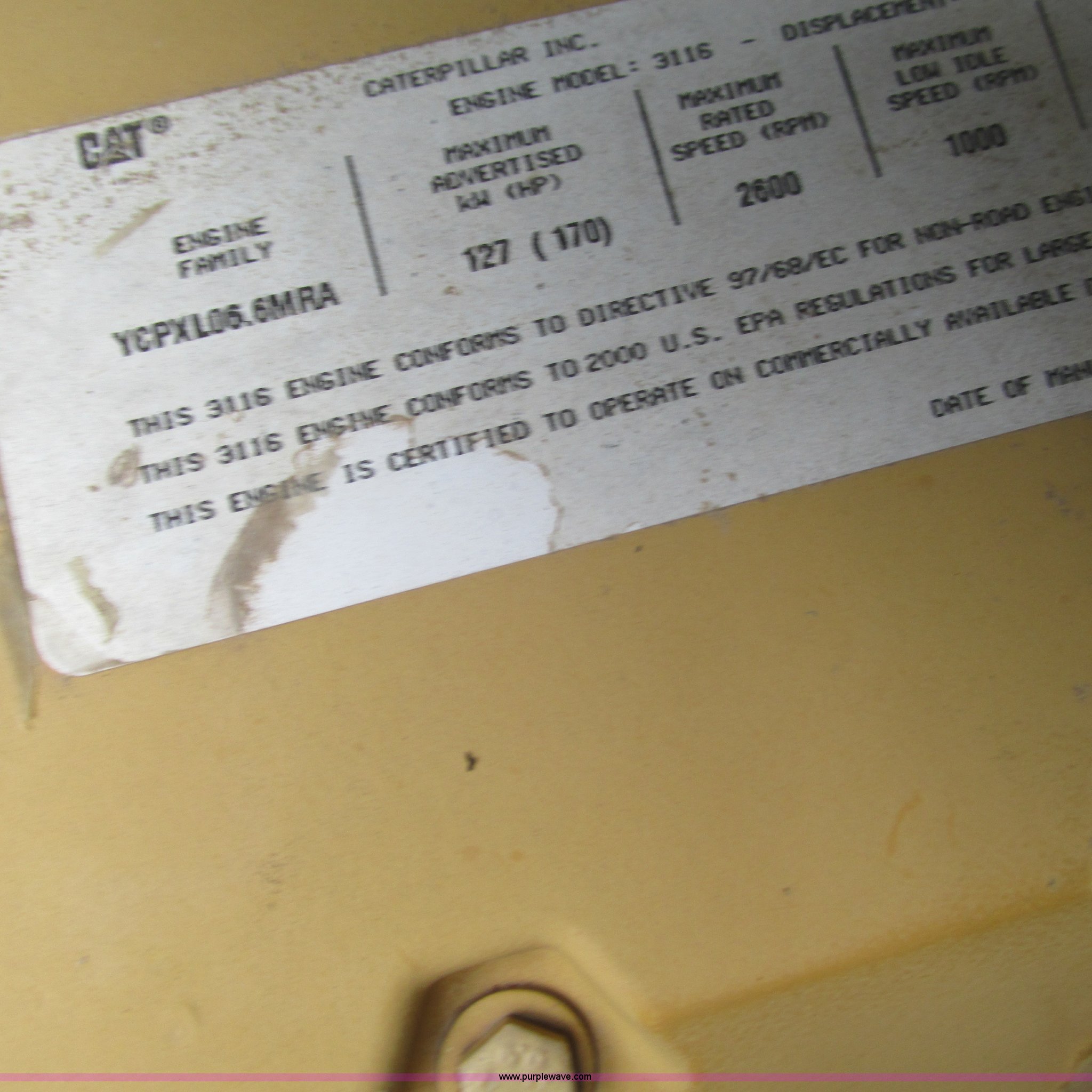 - Caterpillar 3116 six cylinder diesel engine