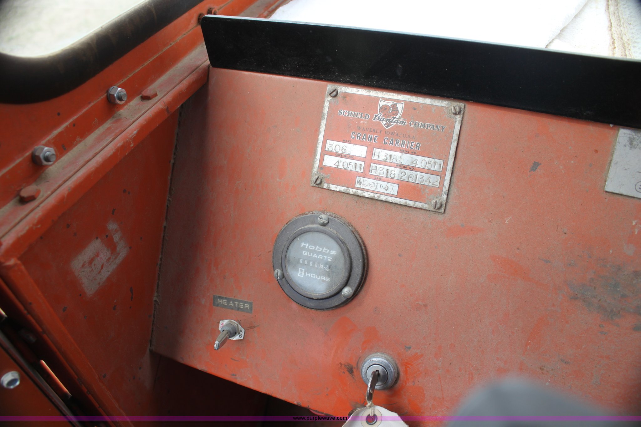 Purple Wave is selling a used Truck Crane in Kansas. This item is a 1963 Bantam T350 18 ton crane truck with the following: 34,033 miles on odometer, 86 hours on meter, Ford V8 gas engine for truck, Continental six cylinder gas engine for crane, Four speed manual transmission, 27' mast, 36" clam bucket, 9.00-20 tires, Rear end issues, Drive lines have been removed, No battery, Serial 10799, Unit# 236